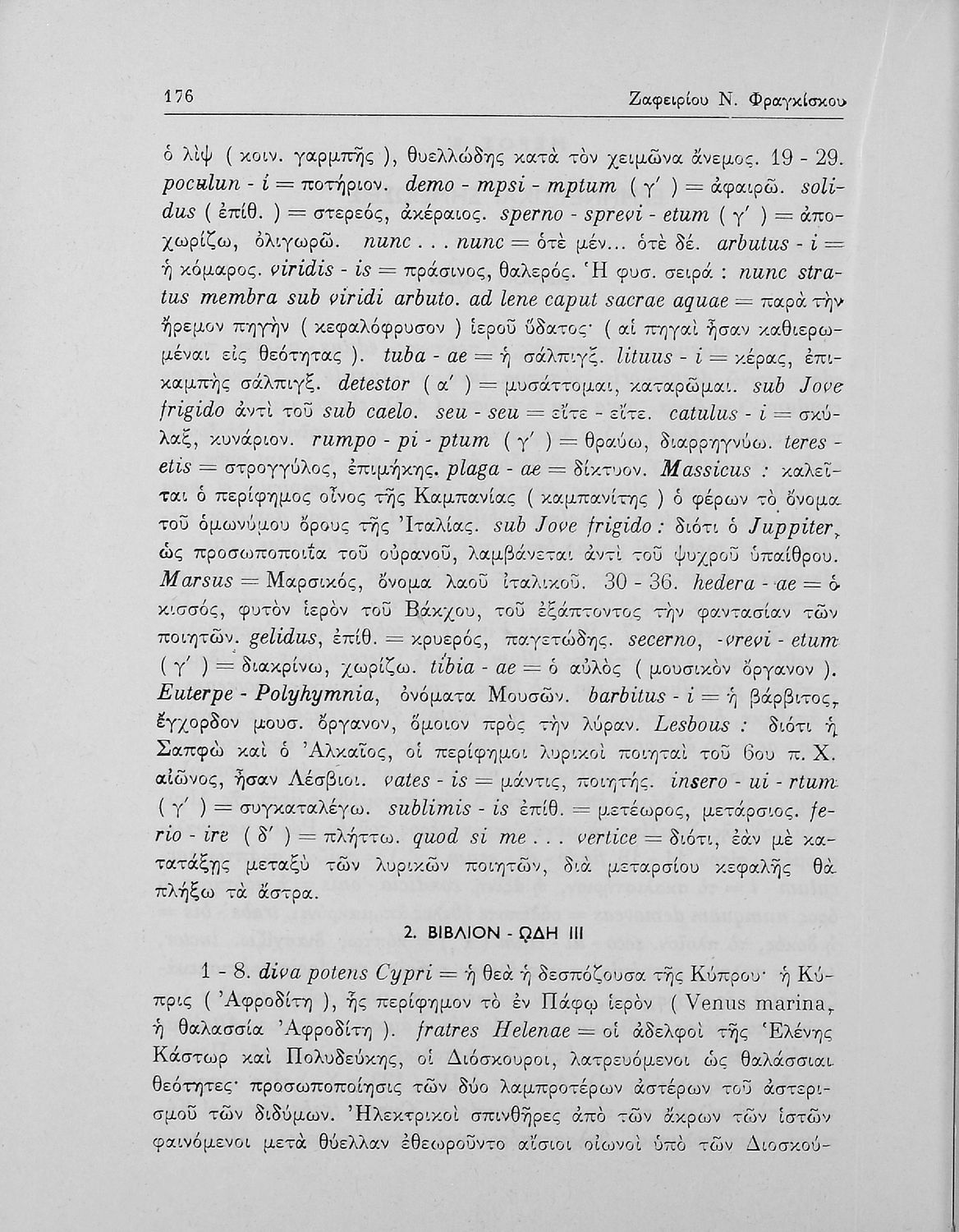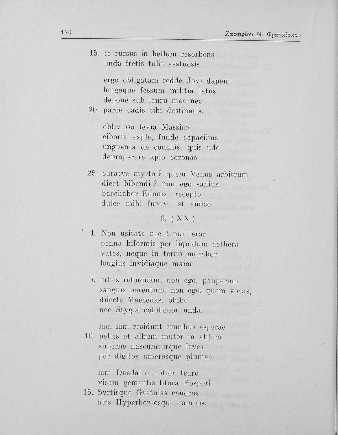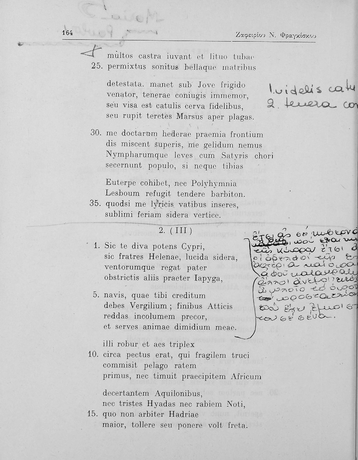 Πόπλιος Βιργίλιος Μάρων (P. Vergilius Maro), Μάρκος Τύλλιος Κικέρωνας (Marcus Tullius Ciceco), Κουίντος Οράτιος Φλάκκος (Q. Horati Flacci), Φωκίωνας Β. Βουσβούνης, Ερρίκος Σκάσσης, Ζαφείριος Ν. Φραγκίσκος (σχόλια)