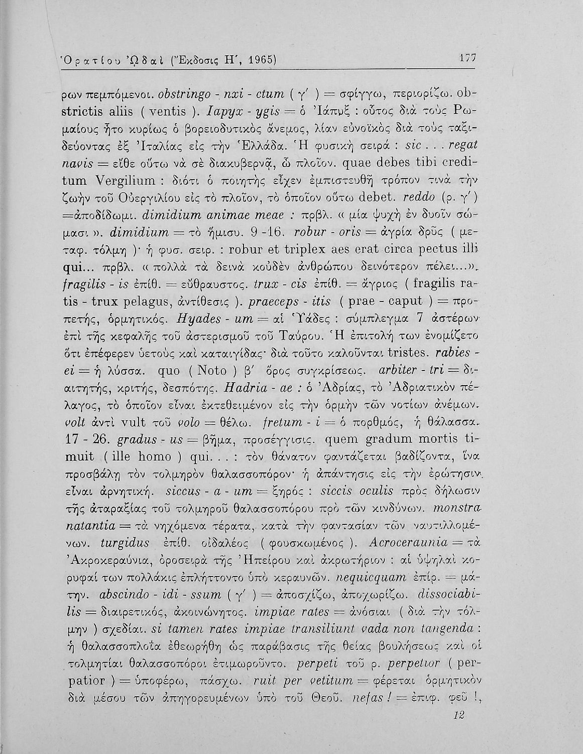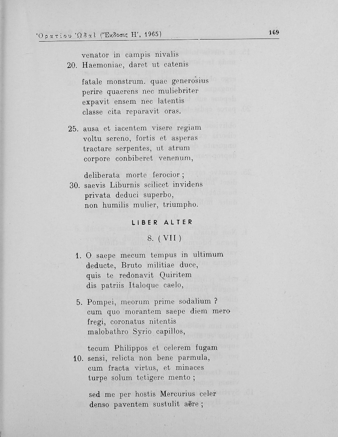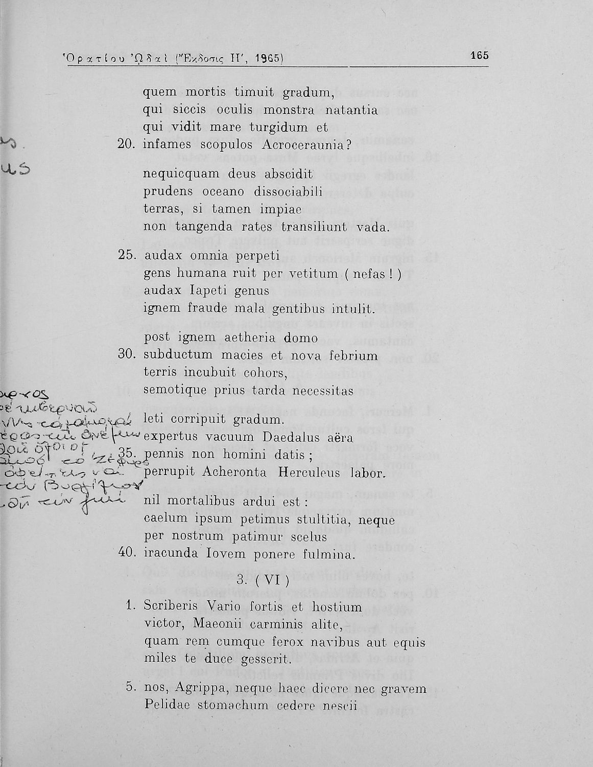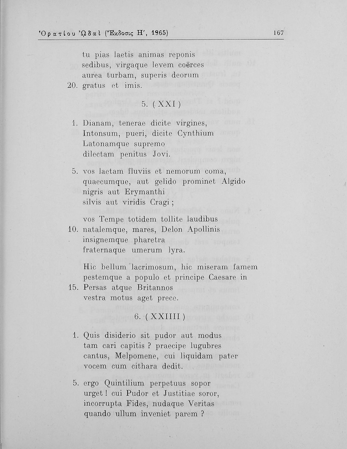 Πόπλιος Βιργίλιος Μάρων (P. Vergilius Maro), Μάρκος Τύλλιος Κικέρωνας (Marcus Tullius Ciceco), Κουίντος Οράτιος Φλάκκος (Q. Horati Flacci), Φωκίωνας Β. Βουσβούνης, Ερρίκος Σκάσσης, Ζαφείριος Ν. Φραγκίσκος (σχόλια)