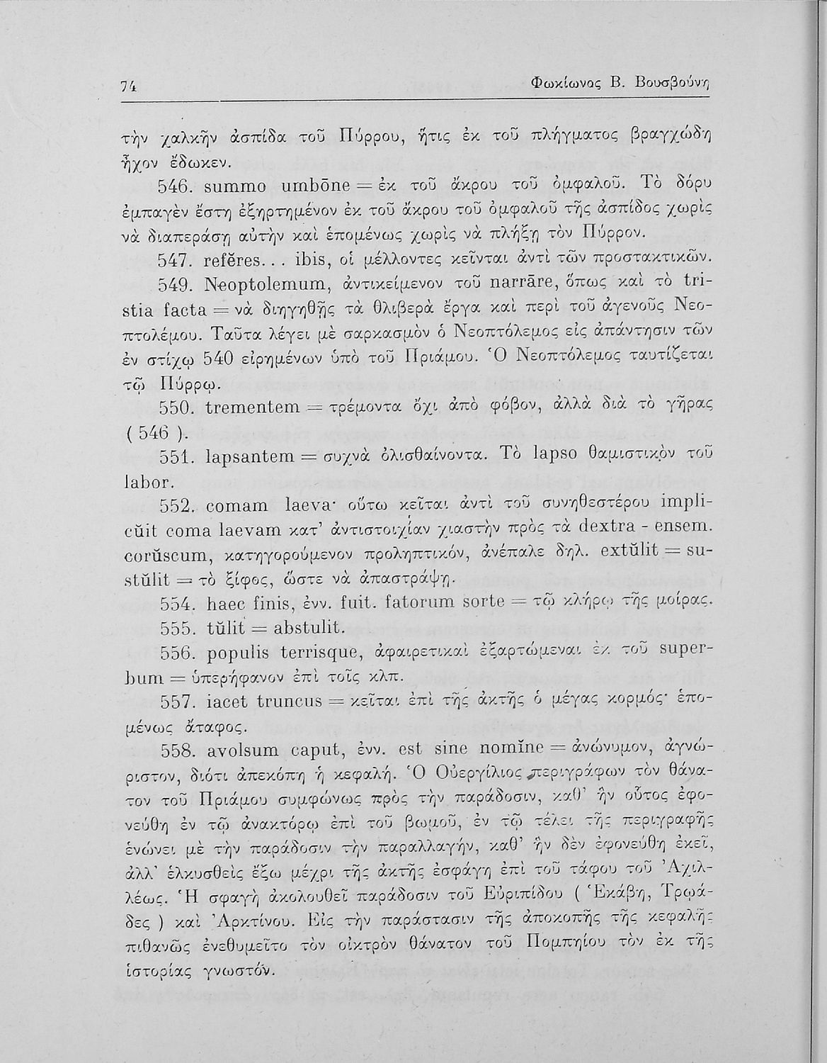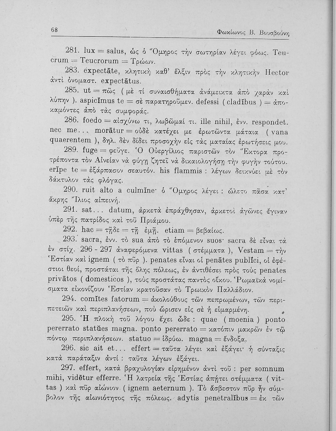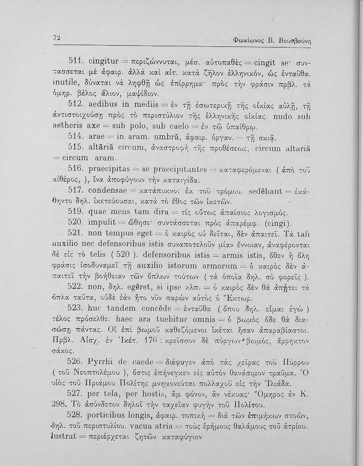 Πόπλιος Βιργίλιος Μάρων (P. Vergilius Maro), Μάρκος Τύλλιος Κικέρωνας (Marcus Tullius Ciceco), Κουίντος Οράτιος Φλάκκος (Q. Horati Flacci), Φωκίωνας Β. Βουσβούνης, Ερρίκος Σκάσσης, Ζαφείριος Ν. Φραγκίσκος (σχόλια)