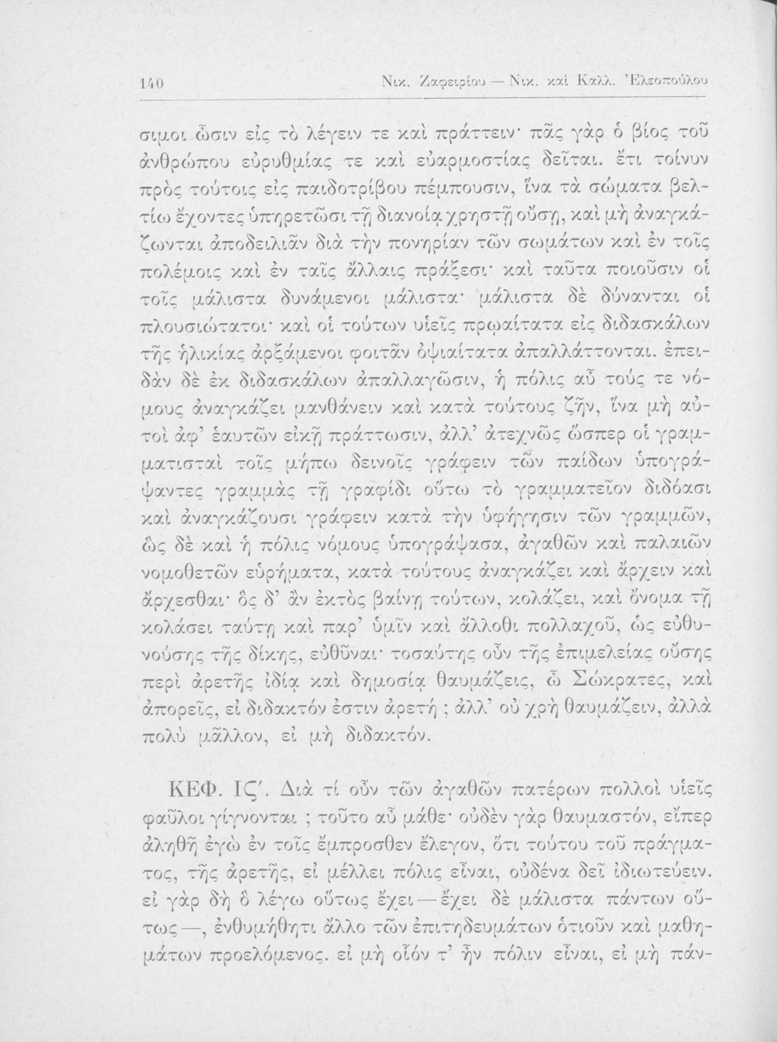 Πλάτων, Ν. Κοντόπουλος, Ν. Ζαφειρίου, Ν. Ελεόπουλος, Ε. Ελεοπούλου (σχόλια)