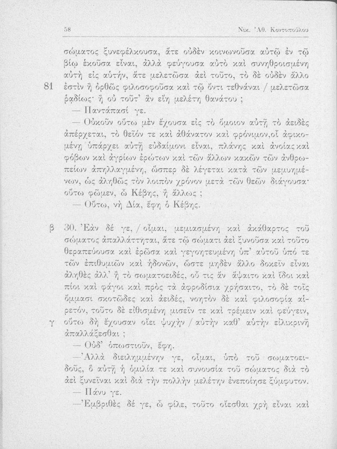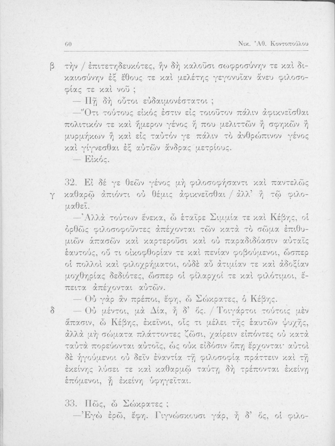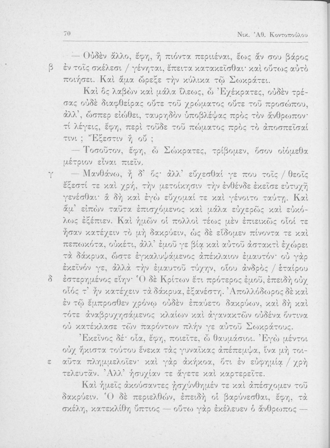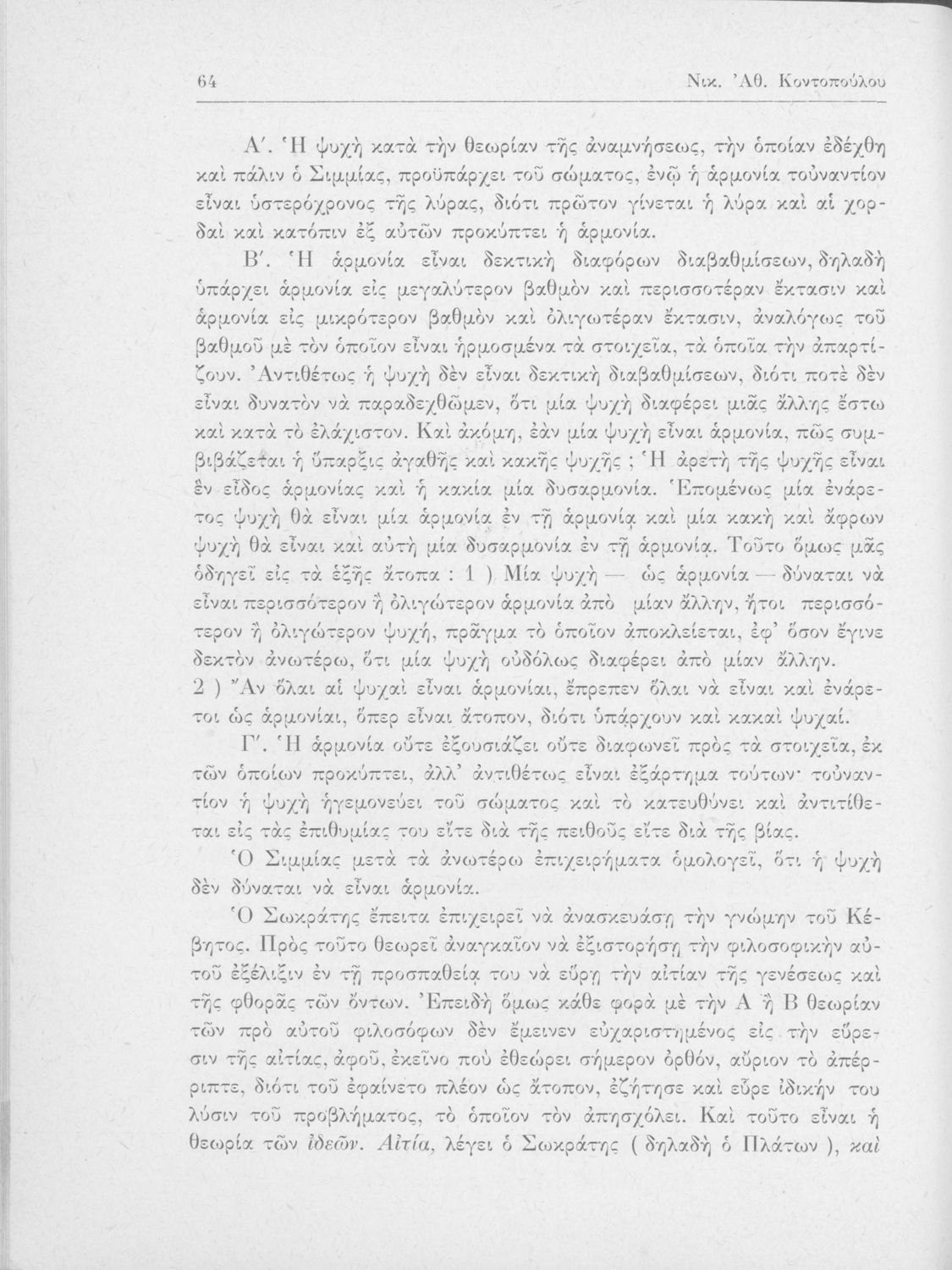 Πλάτων, Νικ. Αθ. Κοντόπουλος (σχόλια)