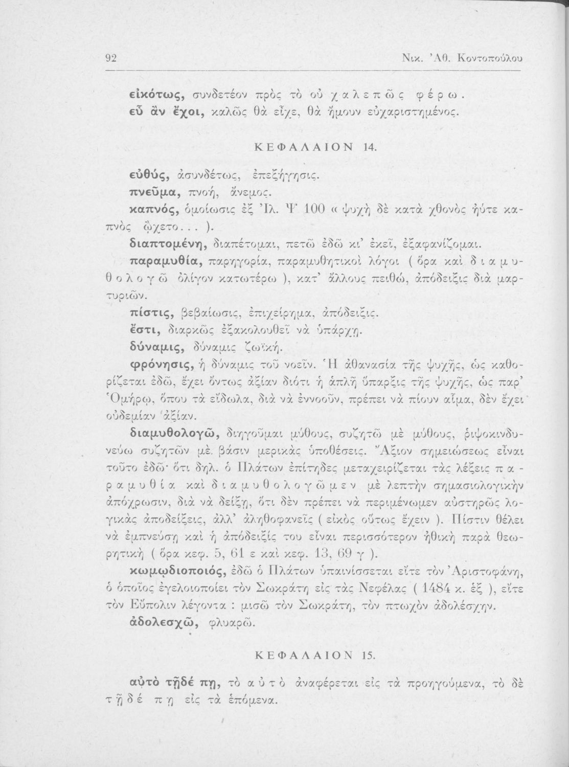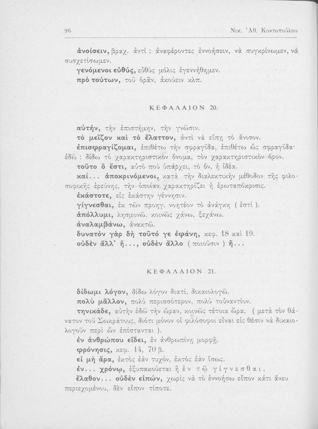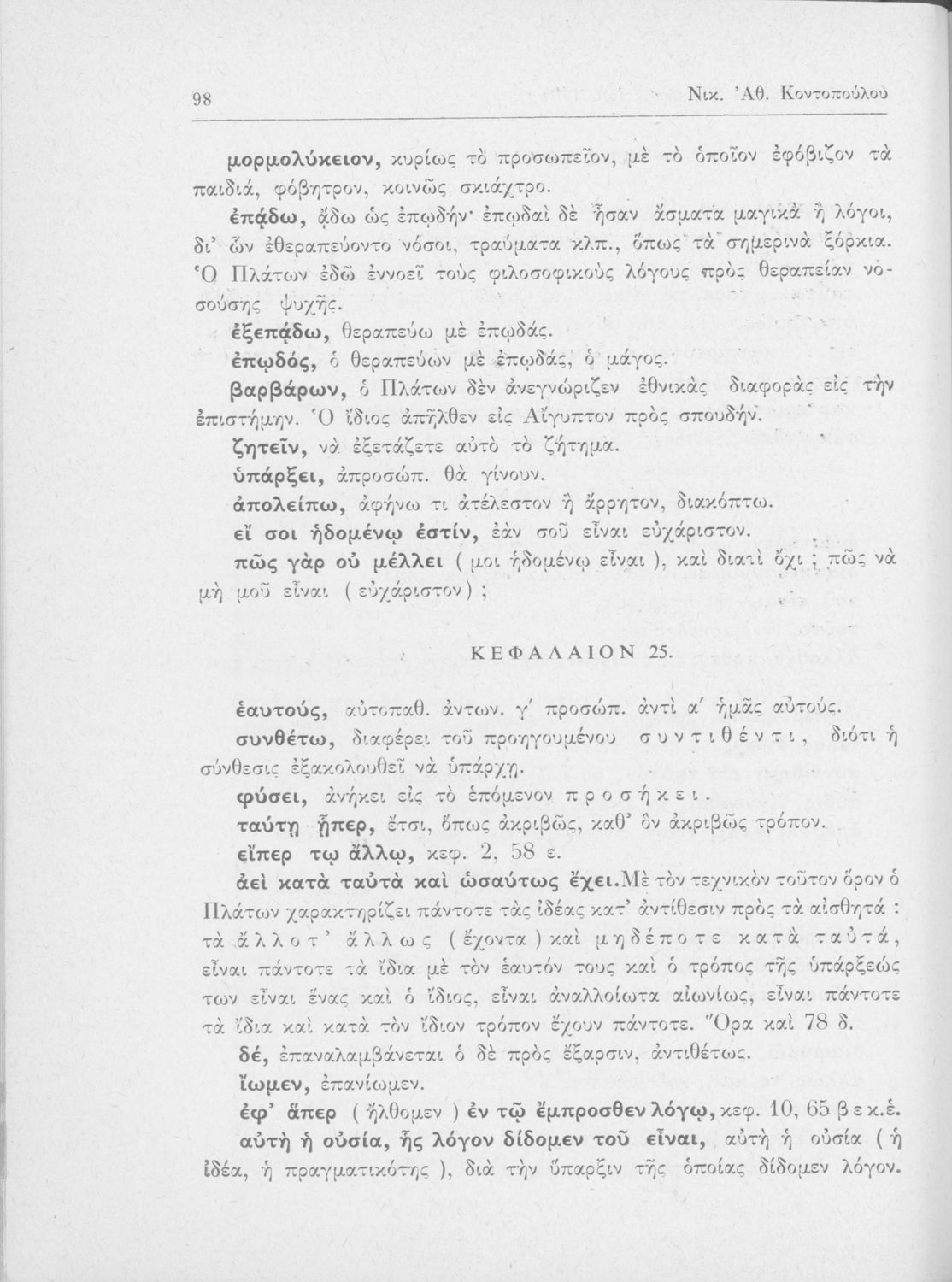 Πλάτων, Νικ. Αθ. Κοντόπουλος (σχόλια)