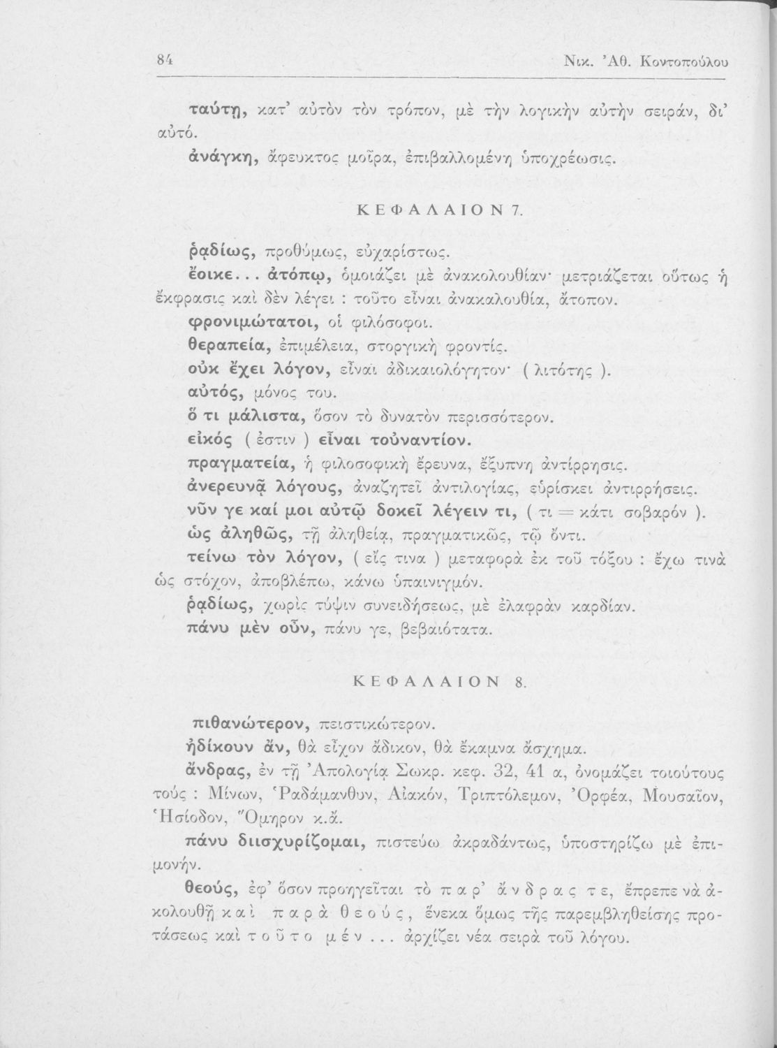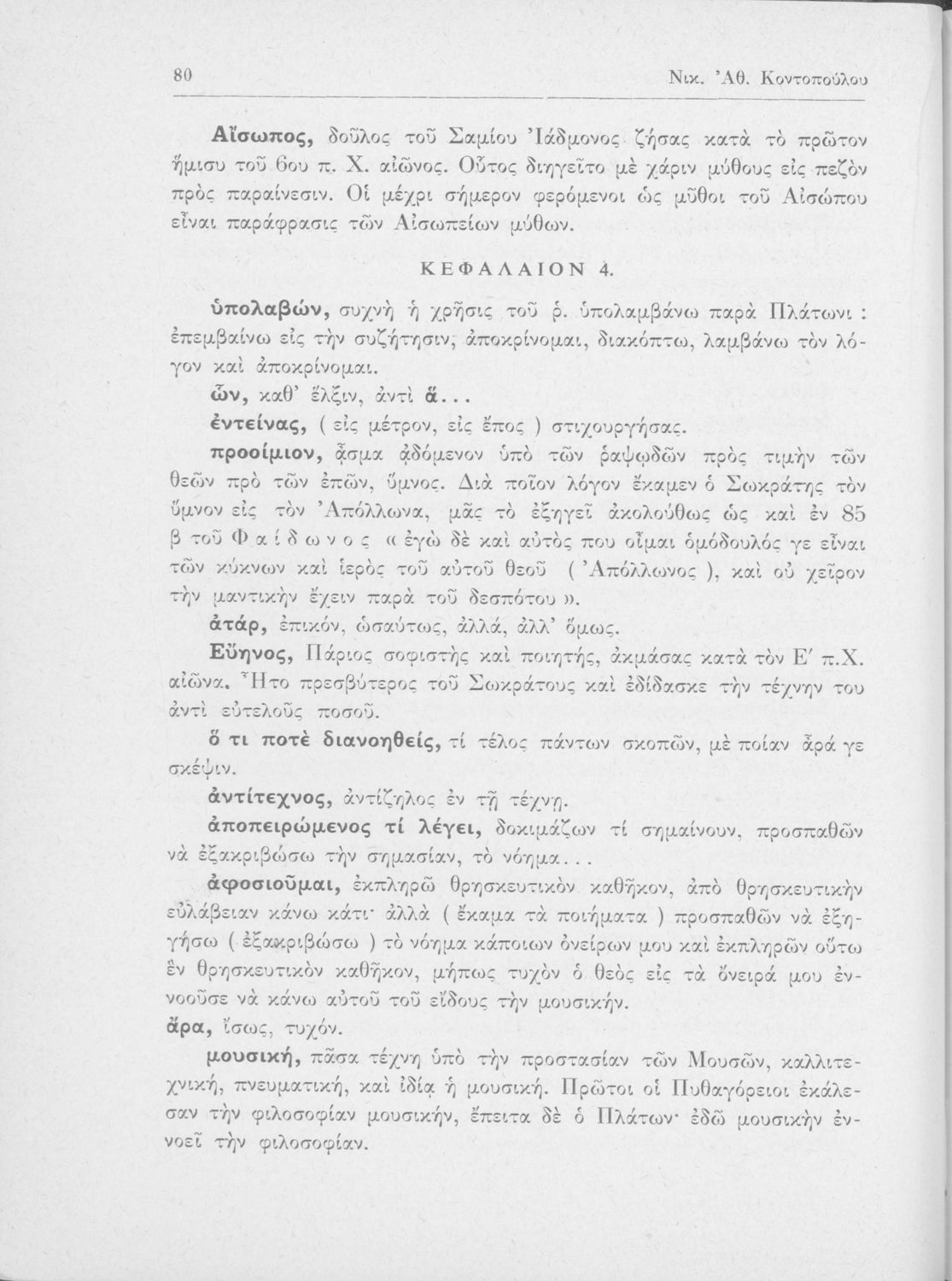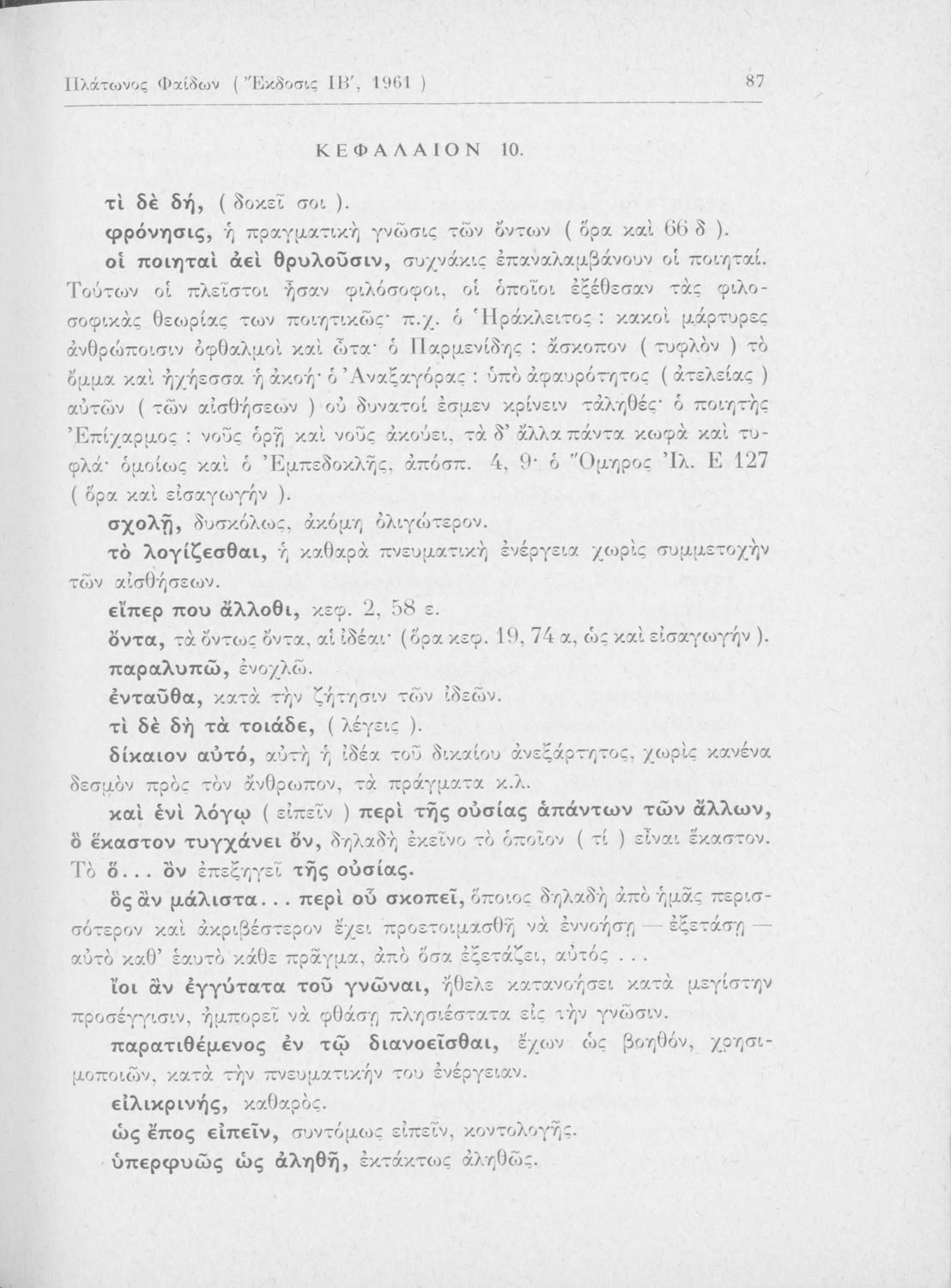 Πλάτων, Νικ. Αθ. Κοντόπουλος (σχόλια)
