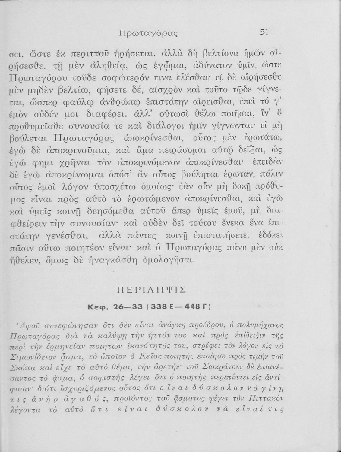 Σχολικό εγχειρίδιο Αρχαίων Ελληνικών ΣΤ΄ Γυμνασίου που περιλαμβάνει εισαγωγή στη διδασκαλία του Σωκράτη, περίληψη του έργου, τα κεφάλαια Β΄ έως ΚΕ΄, περίληψη των κεφαλαίων 26 έως 33., και ερμηνευτικές σημειώσεις.
