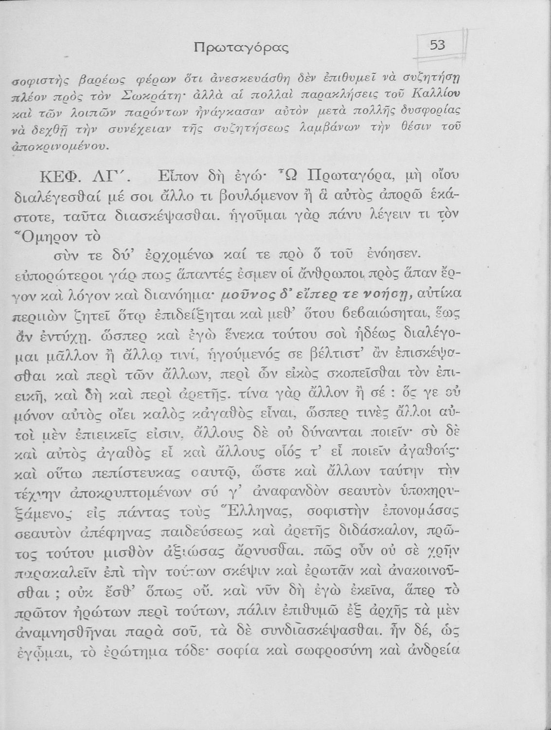 Βαθμίδα εκπαίδευσης: Δευτεροβάθμια Τάξη: ΣΤ' Γυμνασίου Μάθημα: Αρχαία Ελληνικά Γλώσσα: Καθαρεύουσα Παρουσίαση περιεχομένου: Σχολικό εγχειρίδιο Αρχαίων Ελληνικών ΣΤ΄ Γυμνασίου που περιλαμβάνει εισαγωγή στη διδασκαλία του Σωκράτη, περίληψη του έργου, τα κεφάλαια Β΄ έως ΚΕ΄, περίληψη των κεφαλαίων 26 έως 33., και ερμηνευτικές σημειώσεις. |