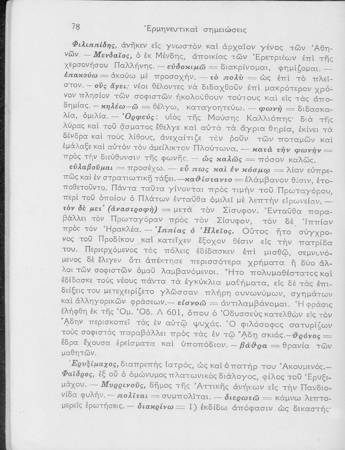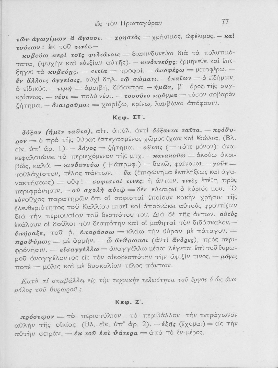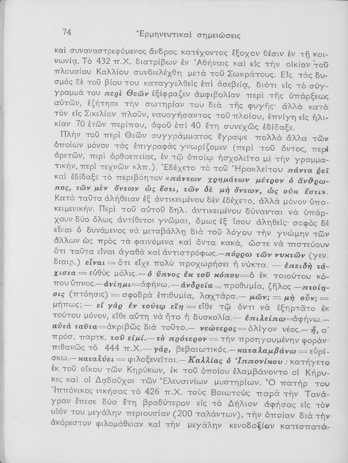 Βαθμίδα εκπαίδευσης: Δευτεροβάθμια Τάξη: ΣΤ' Γυμνασίου Μάθημα: Αρχαία Ελληνικά Γλώσσα: Καθαρεύουσα Παρουσίαση περιεχομένου: Σχολικό εγχειρίδιο Αρχαίων Ελληνικών ΣΤ΄ Γυμνασίου που περιλαμβάνει εισαγωγή στη διδασκαλία του Σωκράτη, περίληψη του έργου, τα κεφάλαια Β΄ έως ΚΕ΄, περίληψη των κεφαλαίων 26 έως 33., και ερμηνευτικές σημειώσεις. |