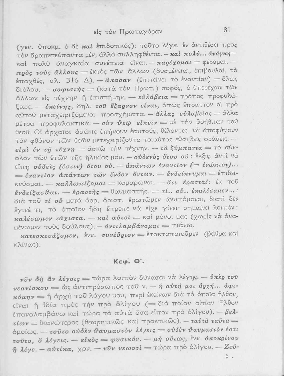 Σχολικό εγχειρίδιο Αρχαίων Ελληνικών ΣΤ΄ Γυμνασίου που περιλαμβάνει εισαγωγή στη διδασκαλία του Σωκράτη, περίληψη του έργου, τα κεφάλαια Β΄ έως ΚΕ΄, περίληψη των κεφαλαίων 26 έως 33., και ερμηνευτικές σημειώσεις.