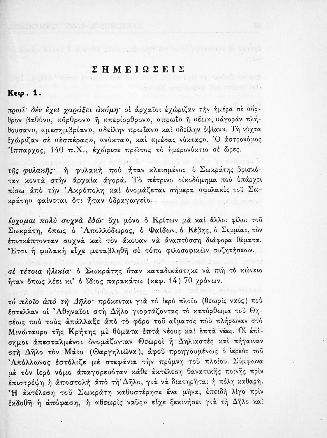 Μαθητικό βοήθημα Αρχαίων Ελληνικών Γ΄ Γυμνασίου που περιέχει σύντομη εισαγωγή στη ζωή και το έργο του Πλάτωνα και του Σωκράτη, κείμενο και ερμηνευτικές και πραγματολογικές σημειώσεις.