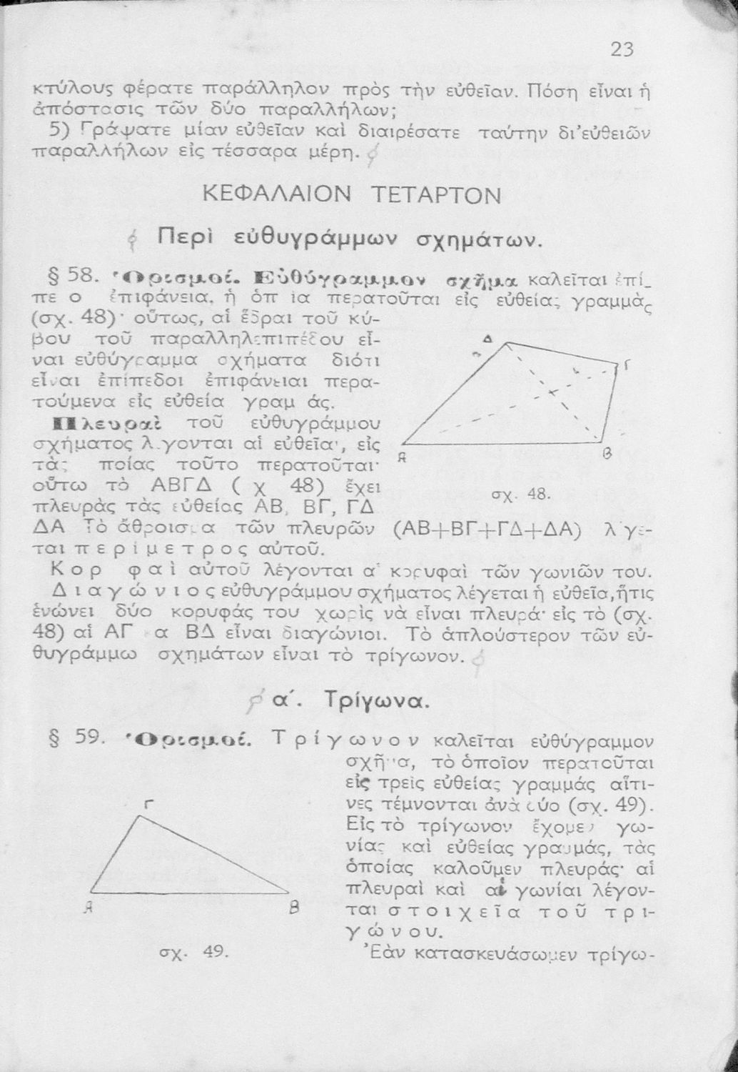 Σχολικό εγχειρίδιο Μαθηματικών για την Α΄ και Β' Γυμνασίου. Το βιβλίο αναφέρεται στις βασικές αρχές και έννοιες Γεωμετρίας και περιλαμβάνει σειρά ασκήσεων για πρακτική εξάσκηση των μαθητών.