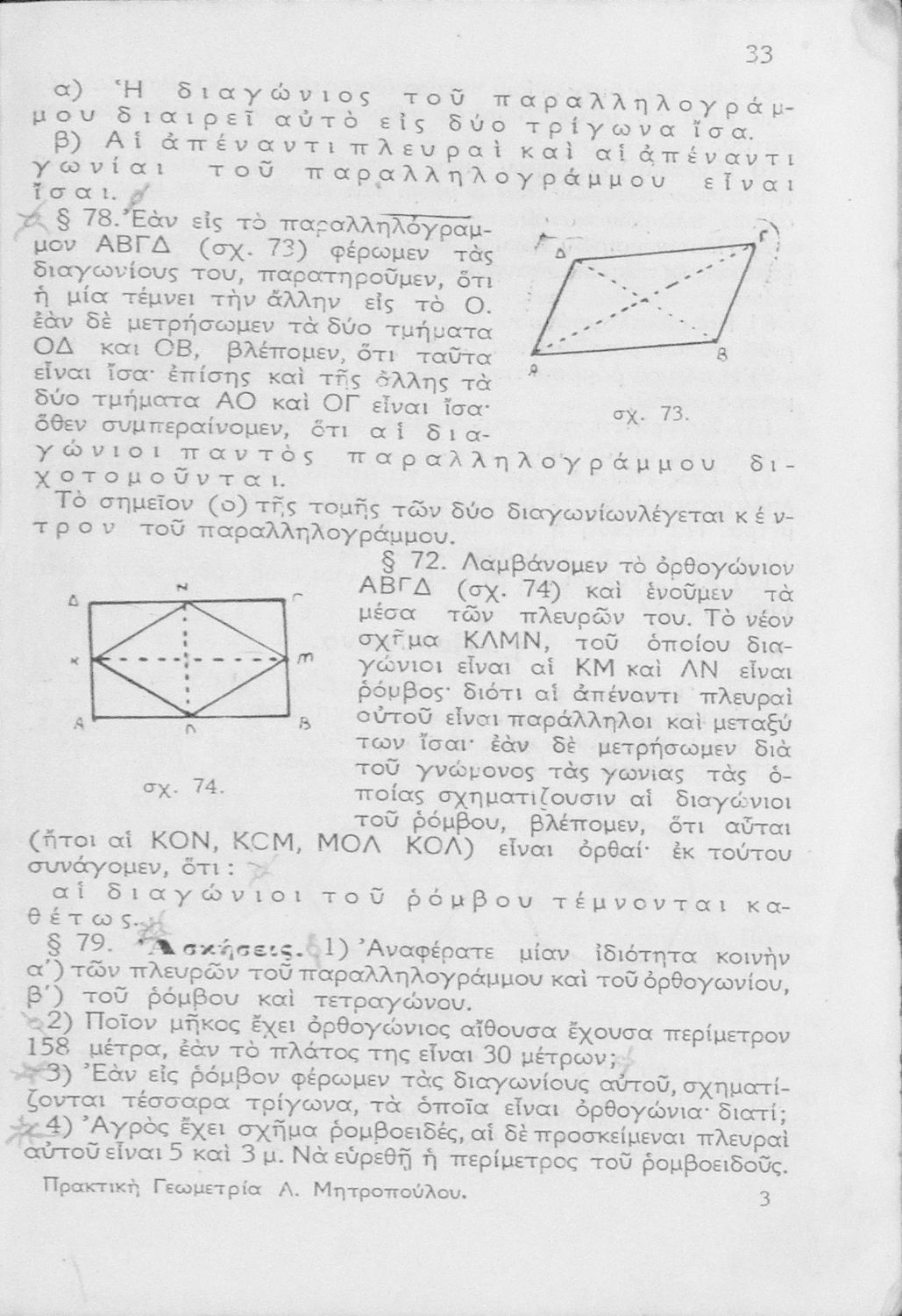 Σχολικό εγχειρίδιο Γεωμετρίας για τα Ελληνικά Σχολεία και Παρθεναγωγεία με έντονο πρακτικό προσανατολισμό.