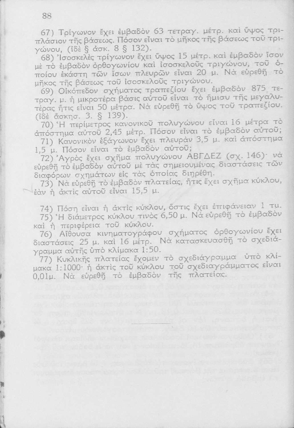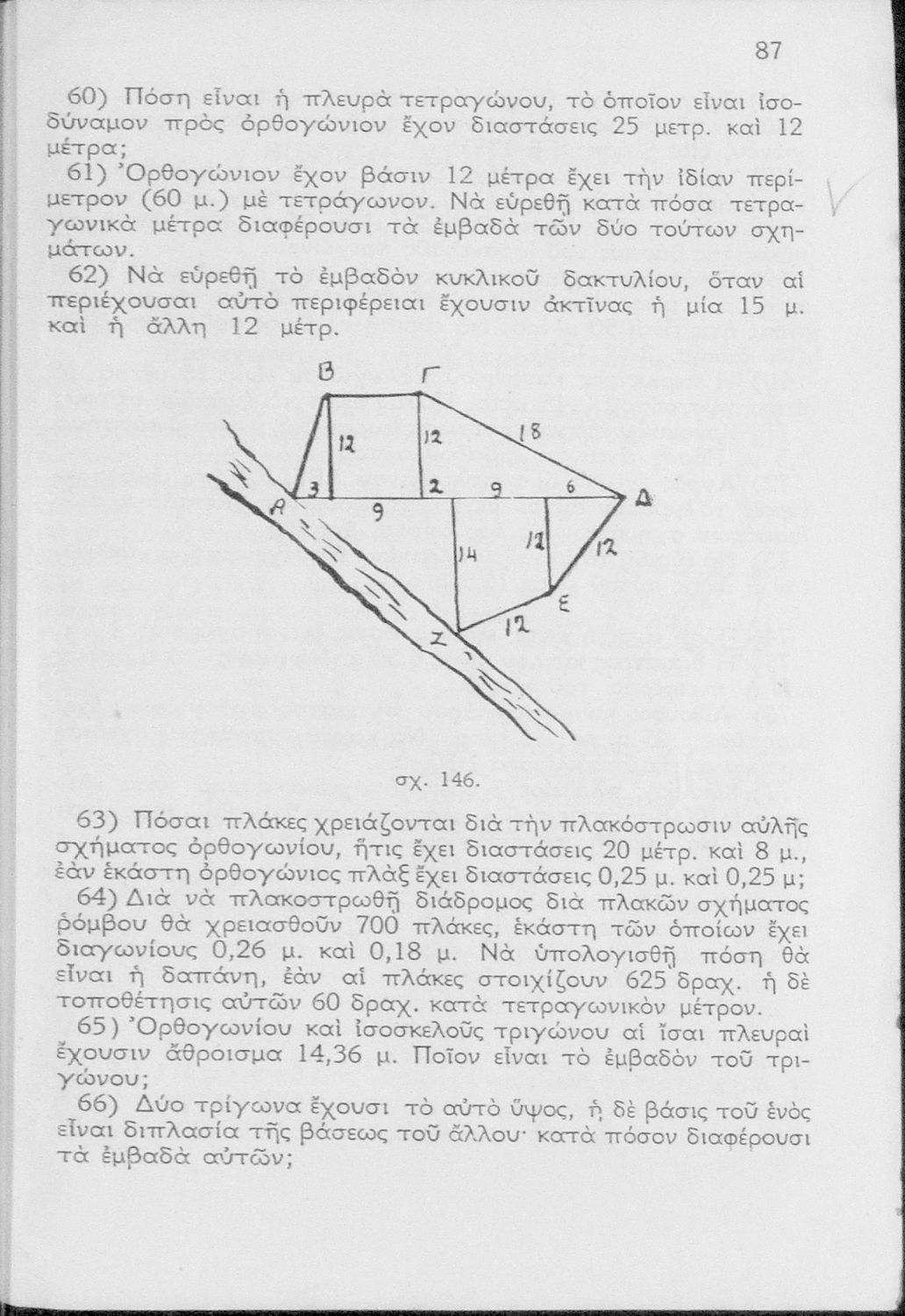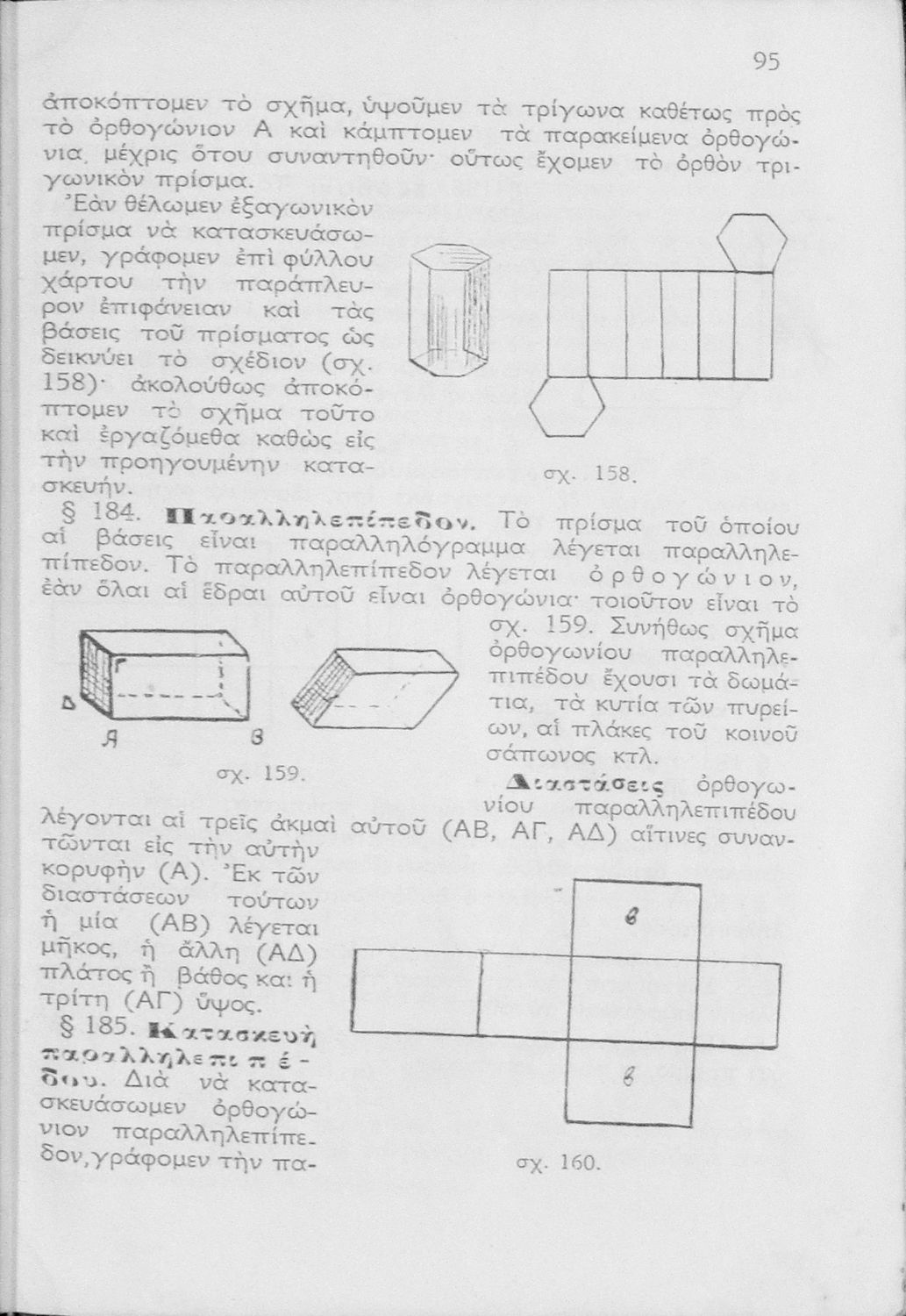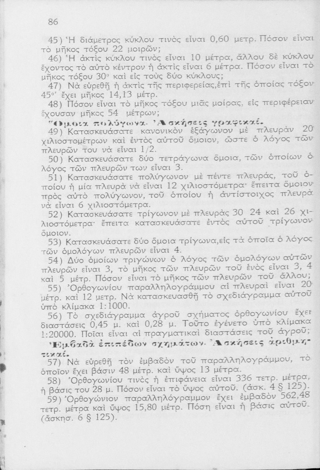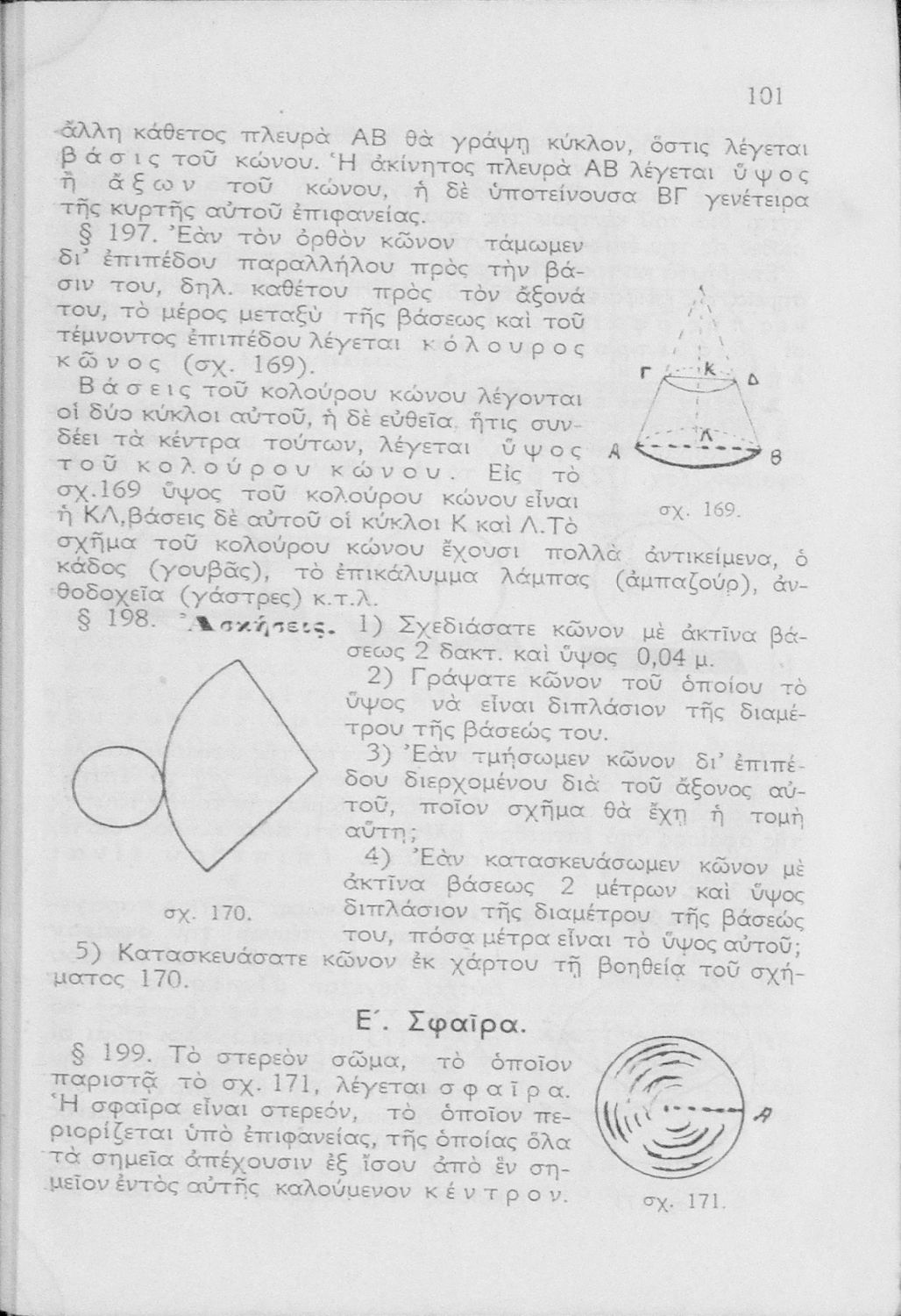 Σχολικό εγχειρίδιο Γεωμετρίας για την Α΄, Β΄ και Γ΄ τάξη των Ελληνικών και Αστικών Σχολείων και Παρθεναγωγείων που είναι χωρισμένο σε Επιπεδομετρία και Στερεομετρία και περιλαμβάνει θεωρία και ασκήσεις.