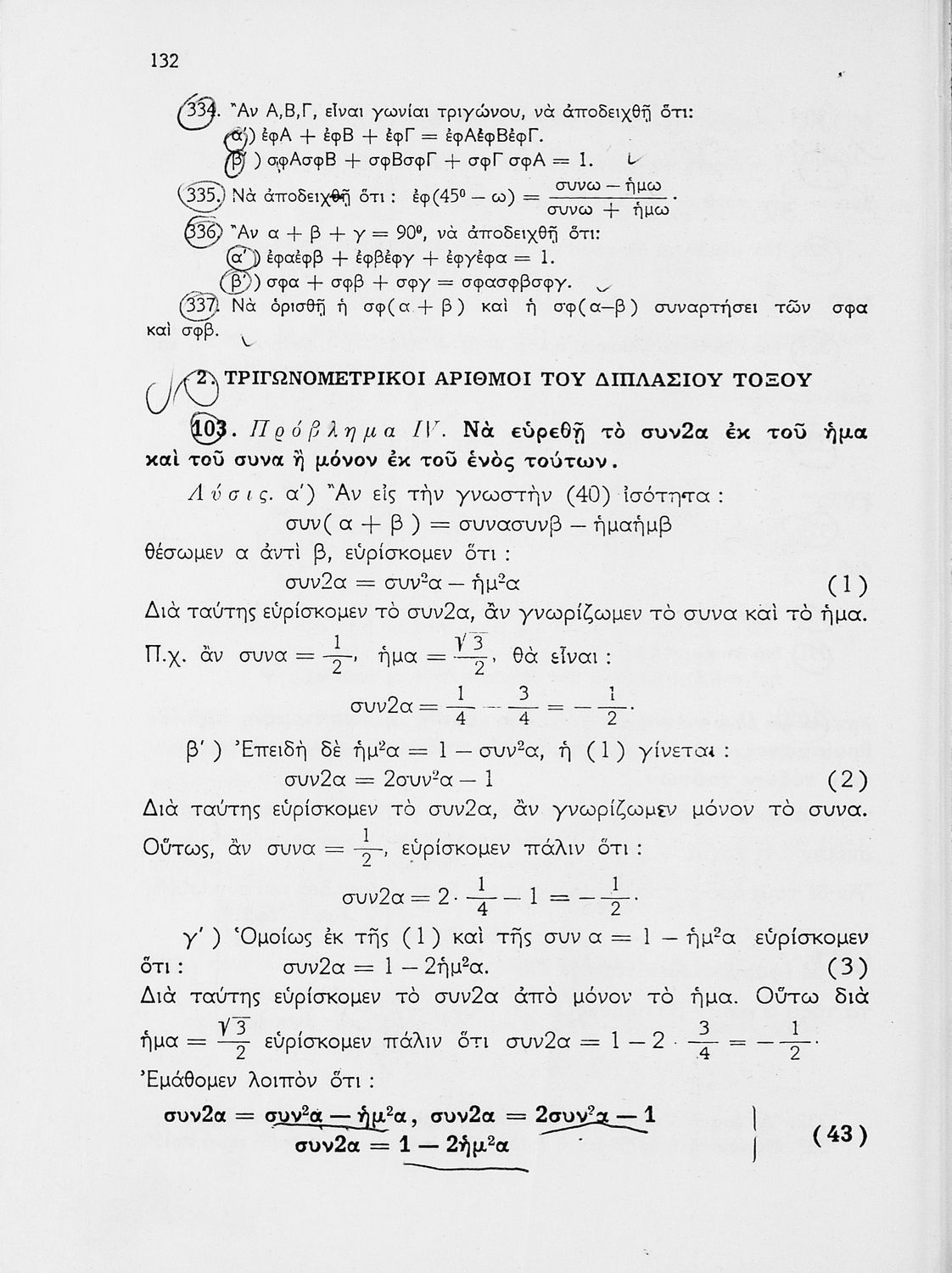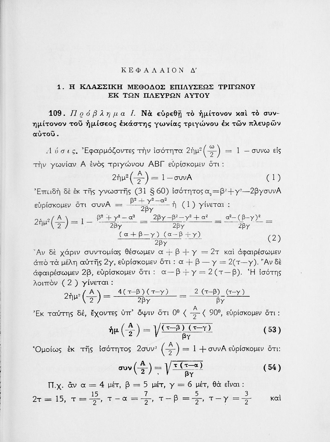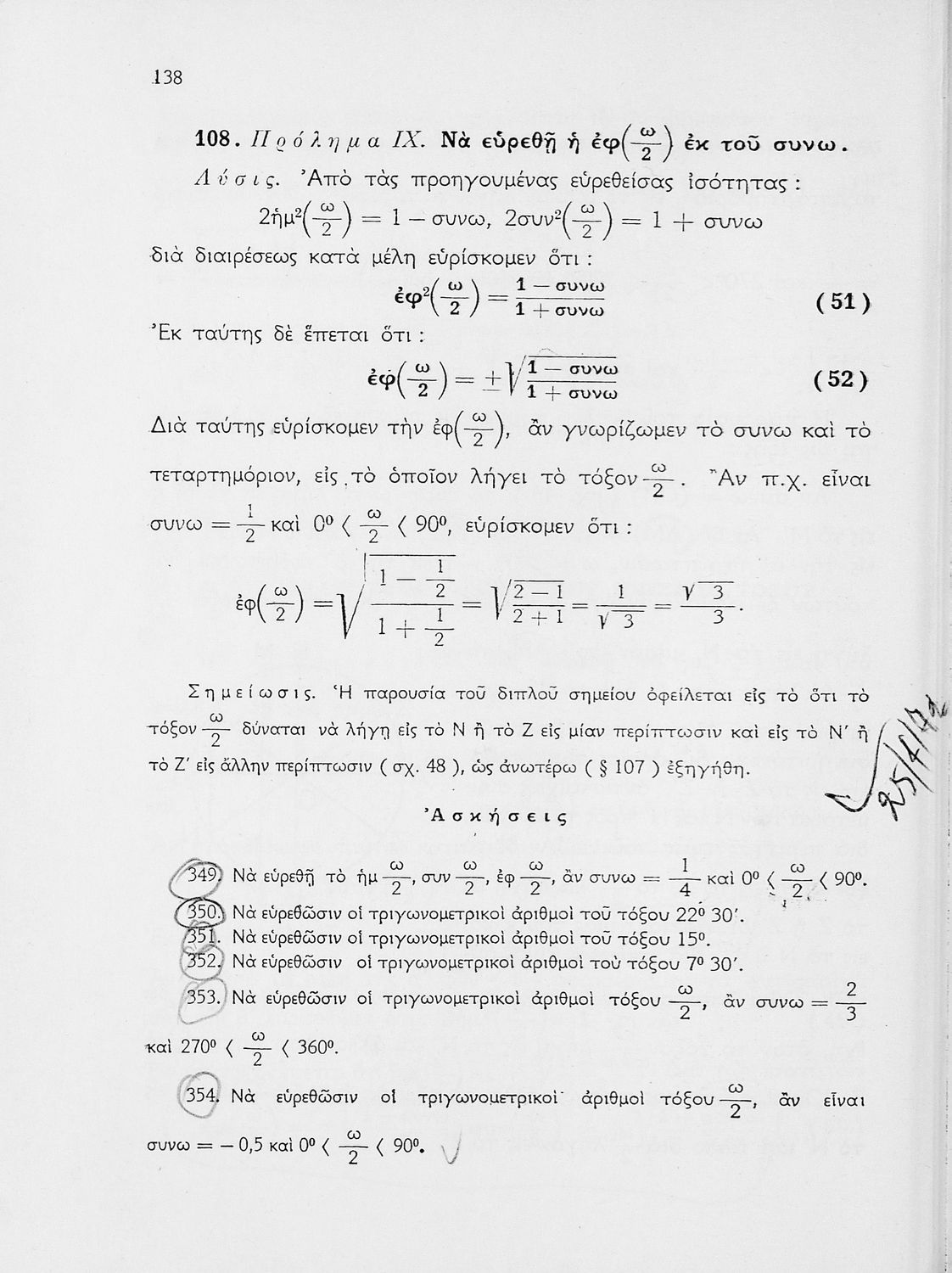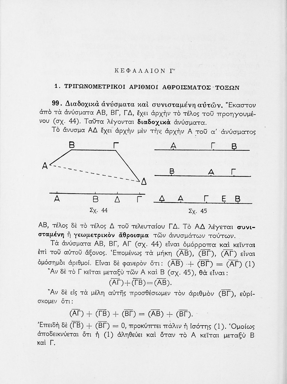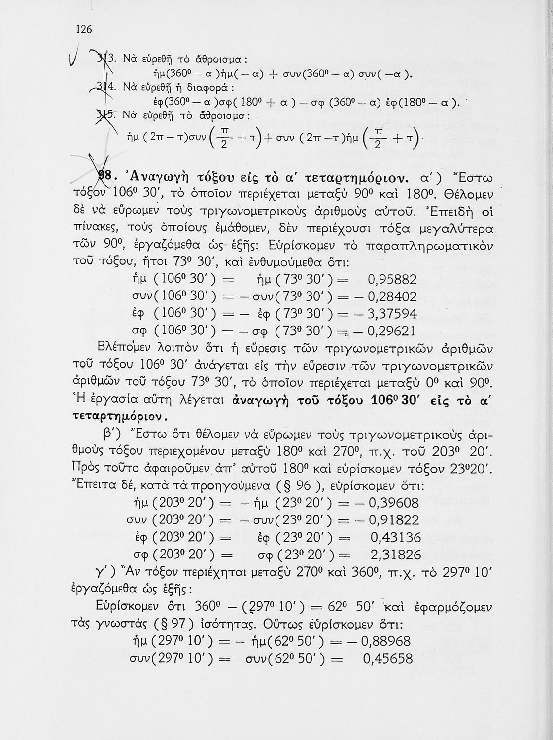 Σχολικό εγχειρίδιο Τριγωνομετρίας για τις Δ΄, Ε΄ και ΣΤ΄ Γυμνασίου που περιλαμβάνει θεωρία και ασκήσεις. Φέρει το σύμβολο της δικτατορίας.