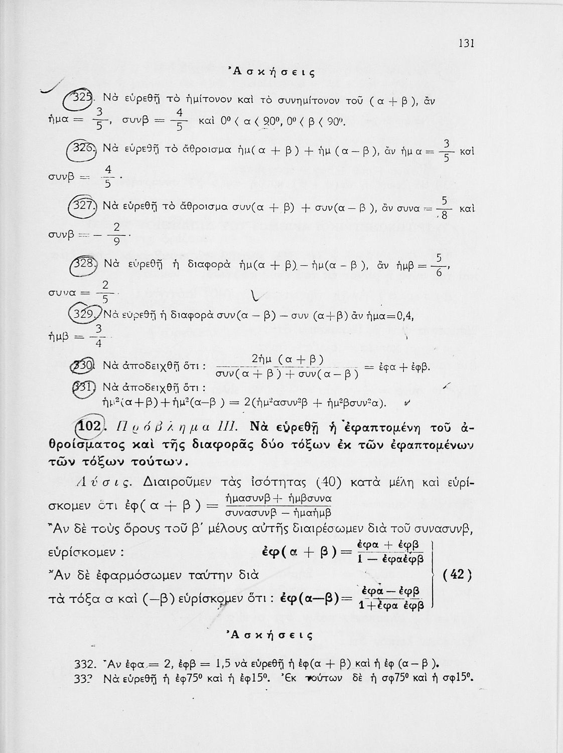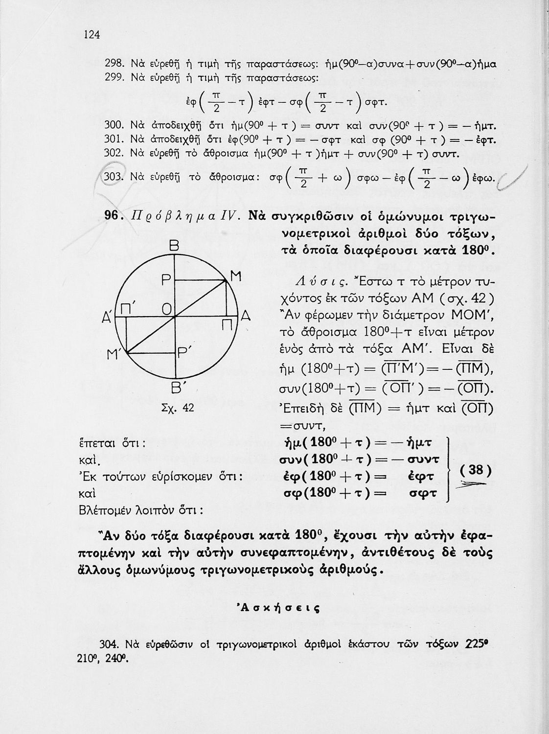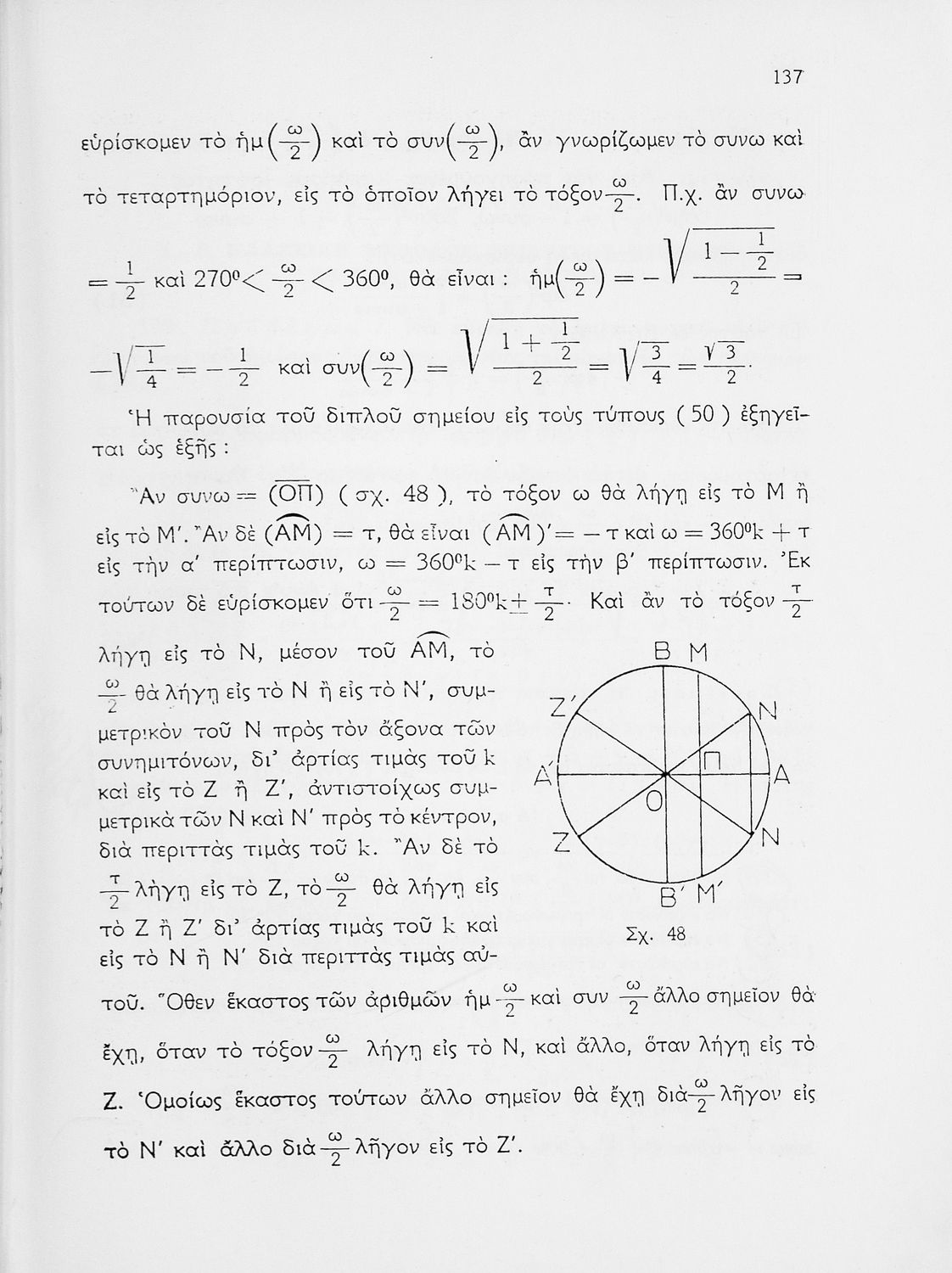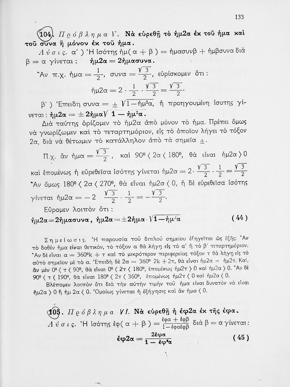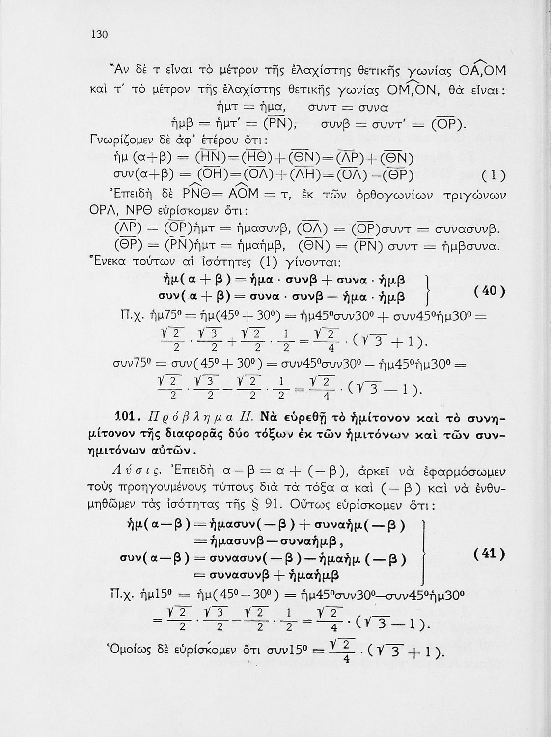 Σχολικό εγχειρίδιο Τριγωνομετρίας για τις Δ΄, Ε΄ και ΣΤ΄ Γυμνασίου που περιλαμβάνει θεωρία και ασκήσεις. Φέρει το σύμβολο της δικτατορίας.