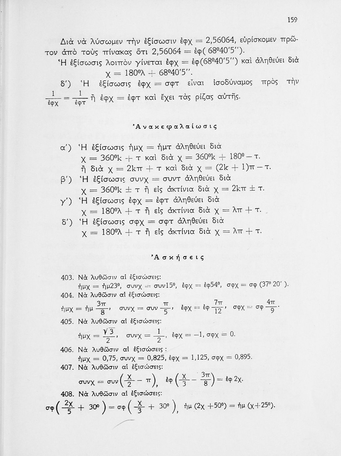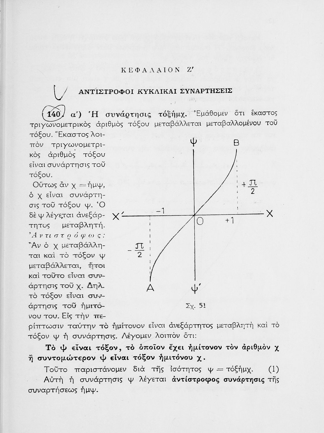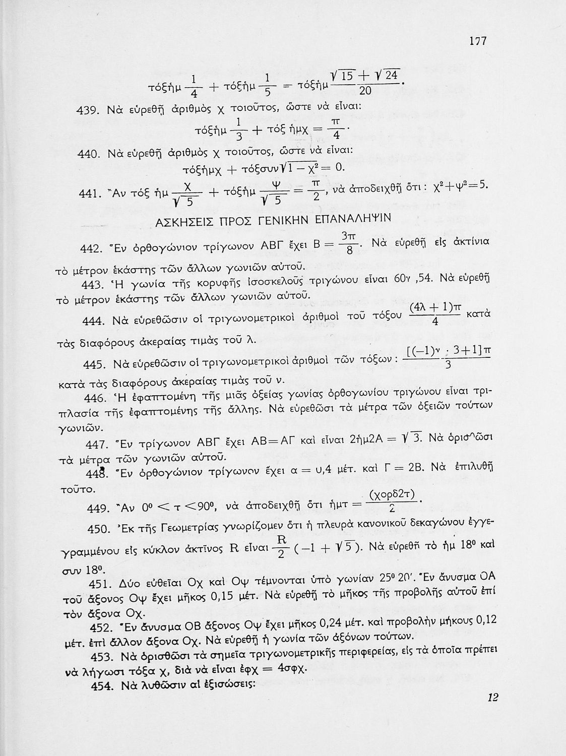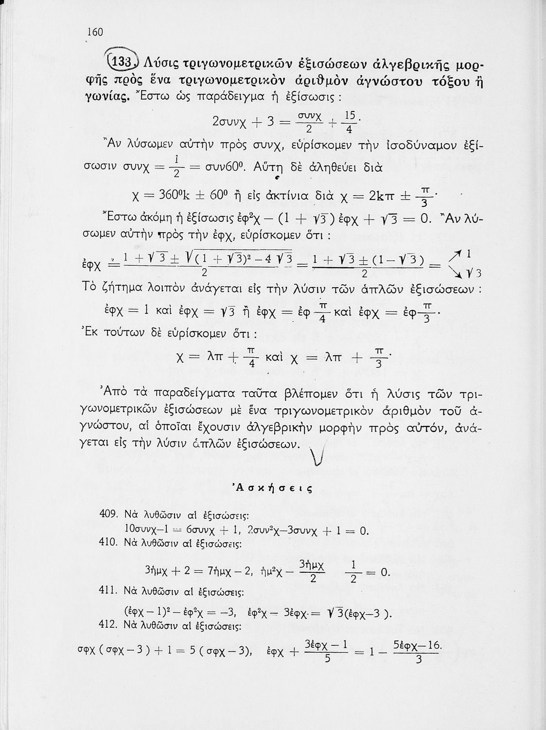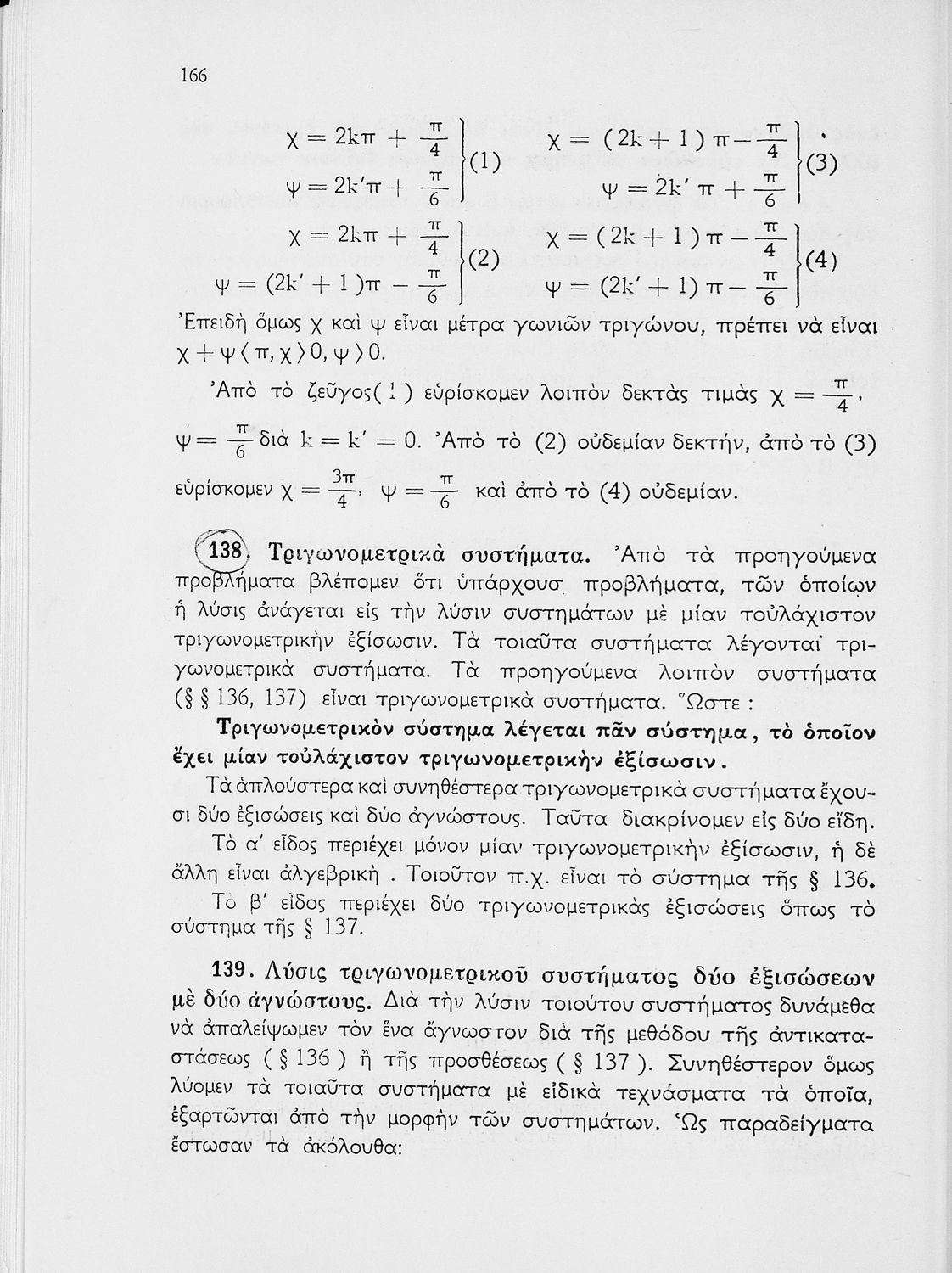 Σχολικό εγχειρίδιο Τριγωνομετρίας για τις Δ΄, Ε΄ και ΣΤ΄ Γυμνασίου που περιλαμβάνει θεωρία και ασκήσεις. Φέρει το σύμβολο της δικτατορίας.