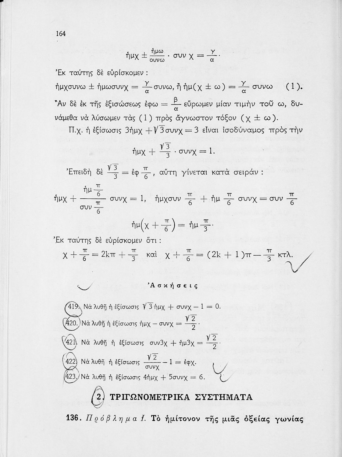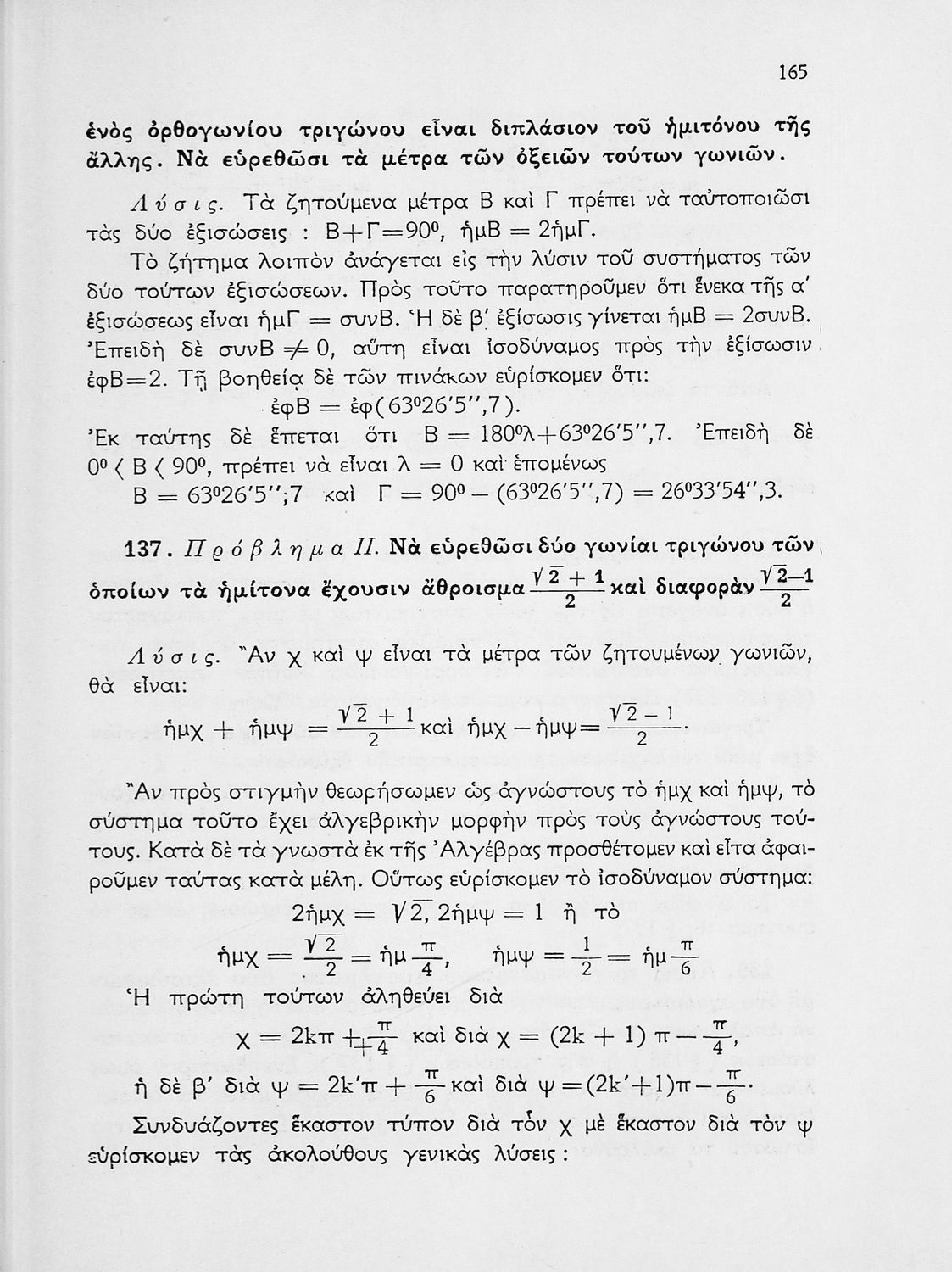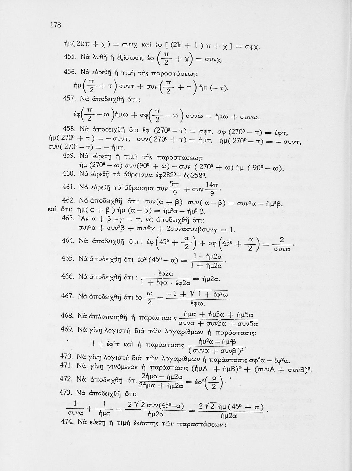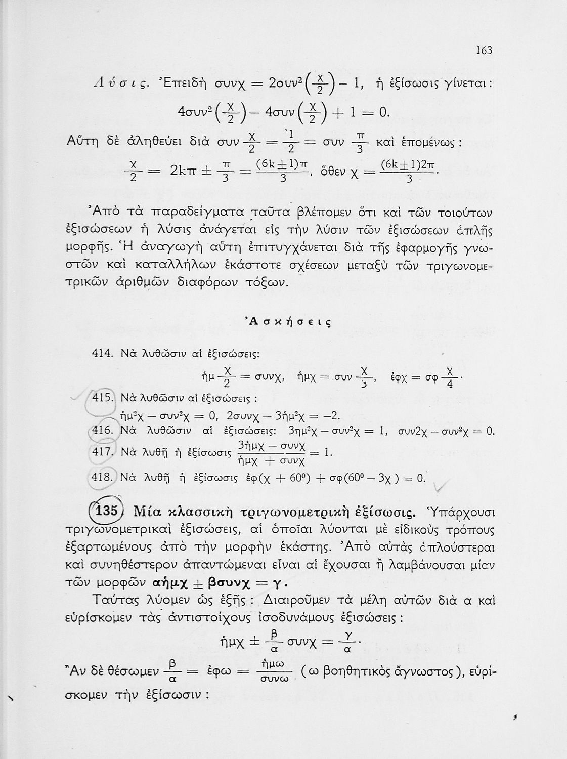 Σχολικό εγχειρίδιο Τριγωνομετρίας για τις Δ΄, Ε΄ και ΣΤ΄ Γυμνασίου που περιλαμβάνει θεωρία και ασκήσεις. Φέρει το σύμβολο της δικτατορίας.