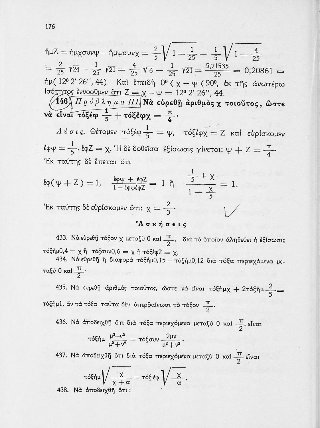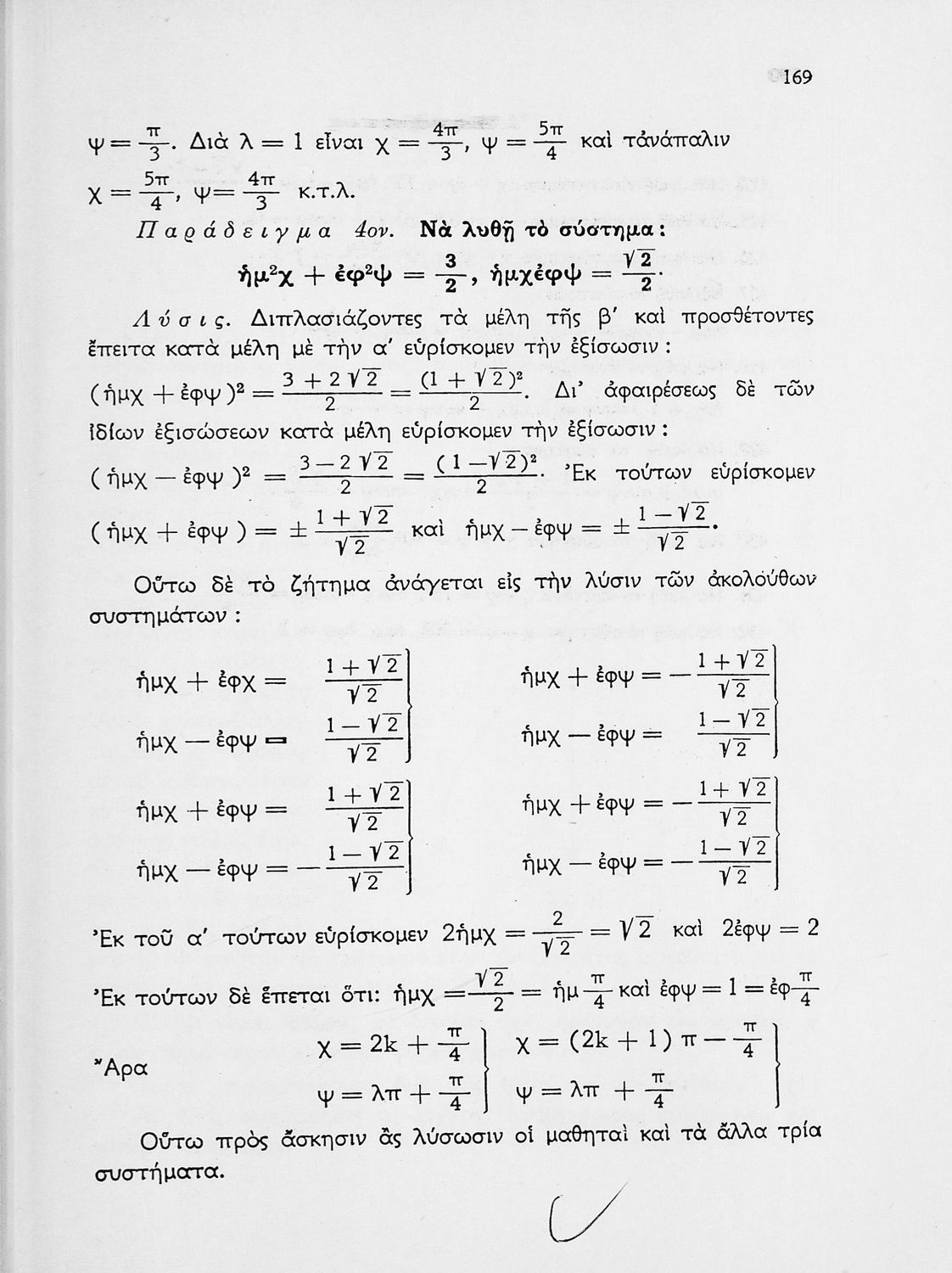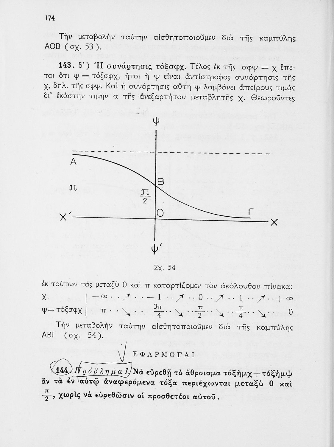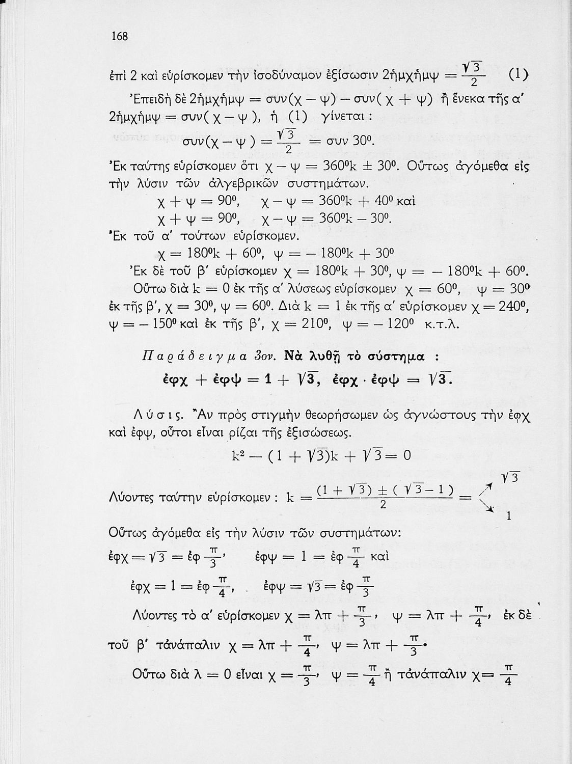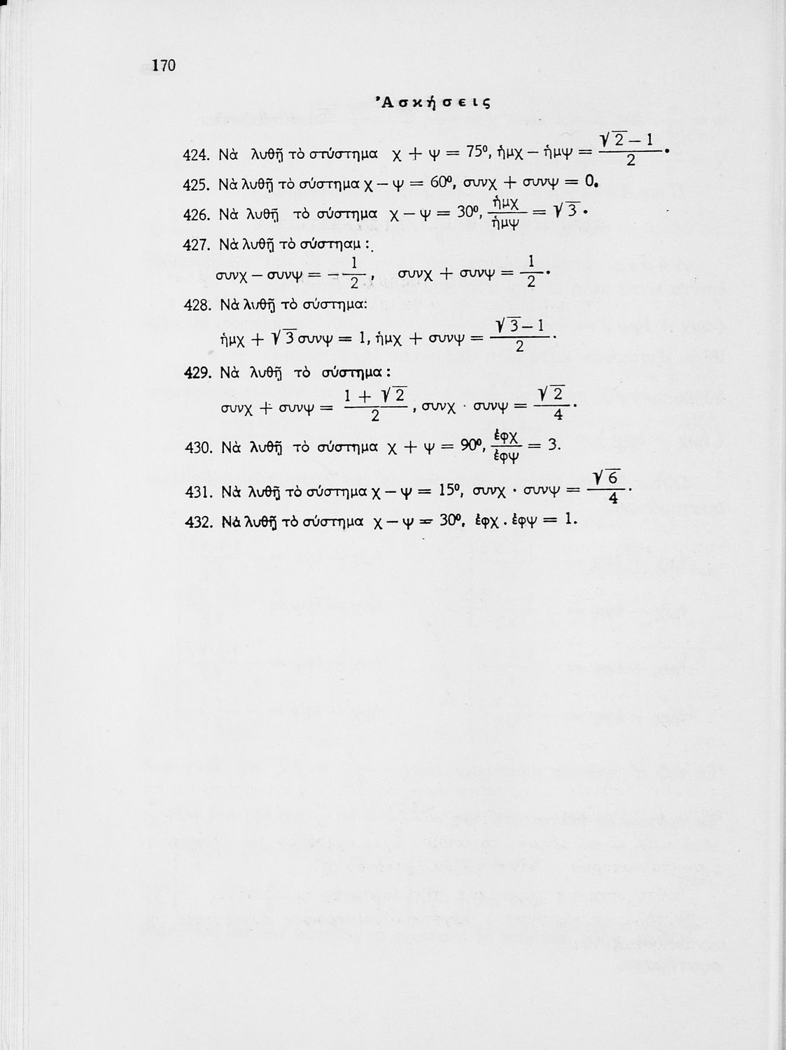 Σχολικό εγχειρίδιο Τριγωνομετρίας για τις Δ΄, Ε΄ και ΣΤ΄ Γυμνασίου που περιλαμβάνει θεωρία και ασκήσεις. Φέρει το σύμβολο της δικτατορίας.