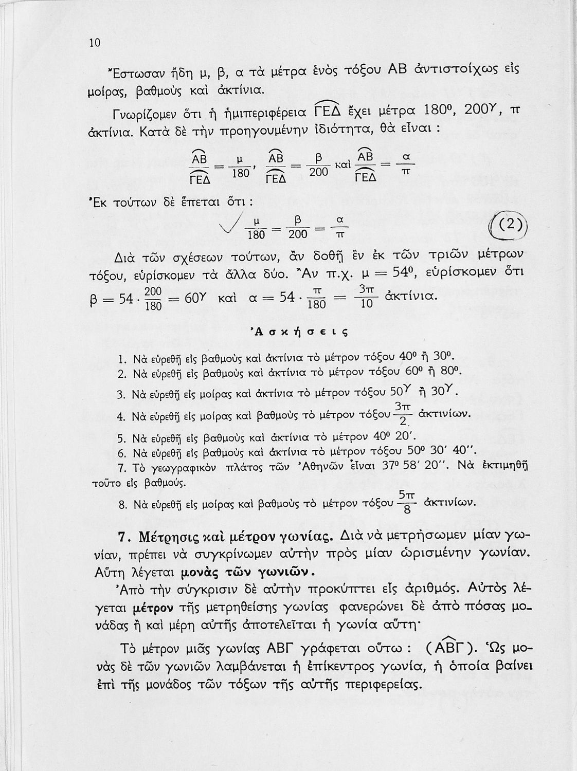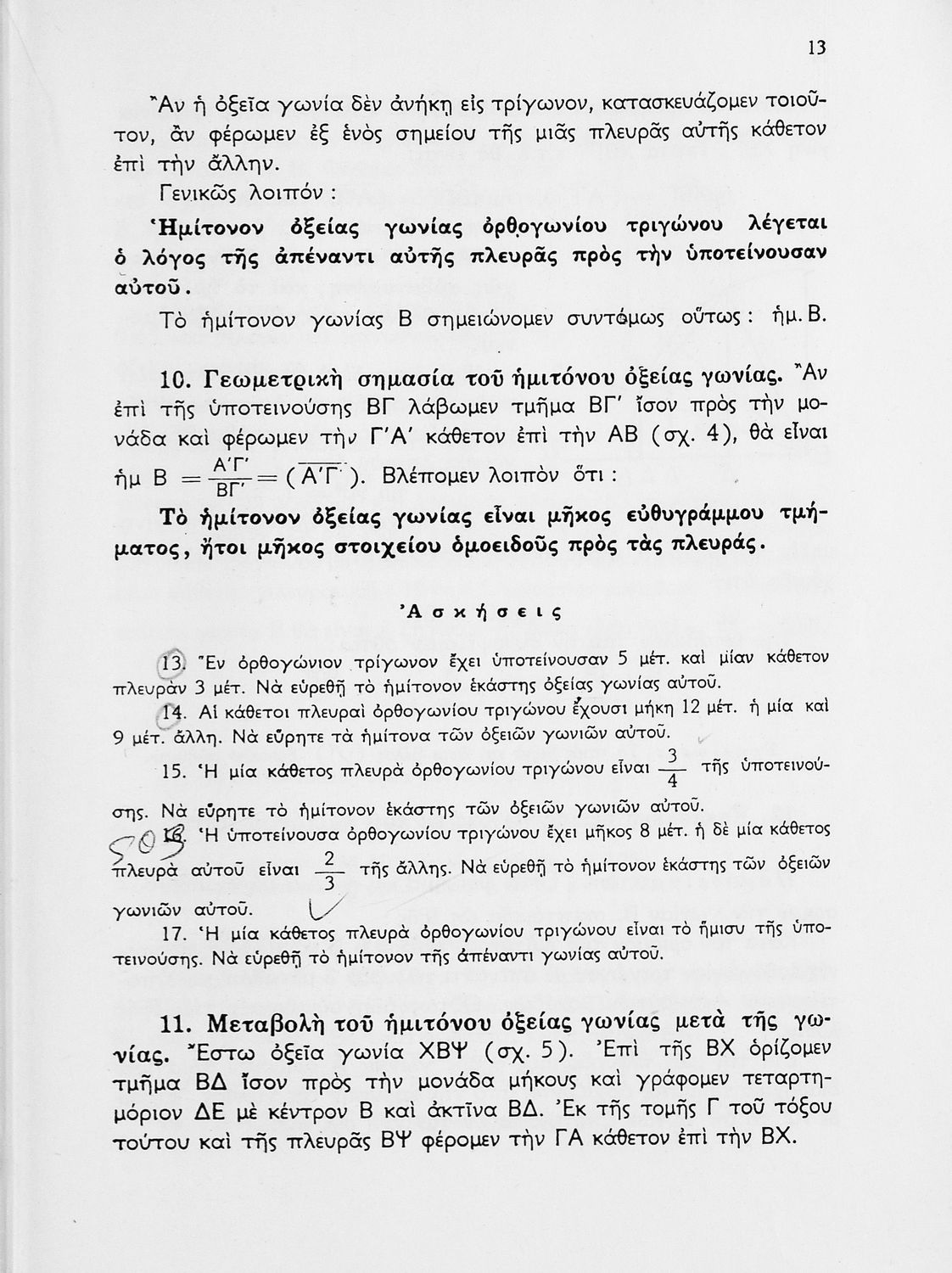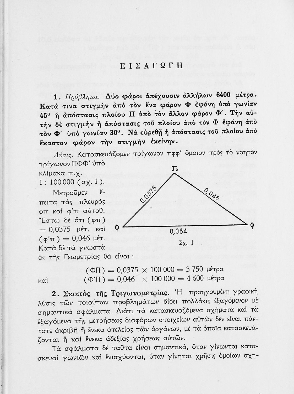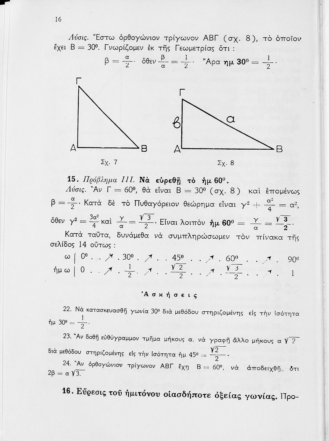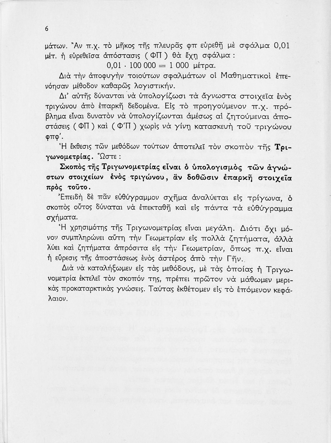 Σχολικό εγχειρίδιο Τριγωνομετρίας για τις Δ΄, Ε΄ και ΣΤ΄ Γυμνασίου που περιλαμβάνει θεωρία και ασκήσεις. Φέρει το σύμβολο της δικτατορίας.