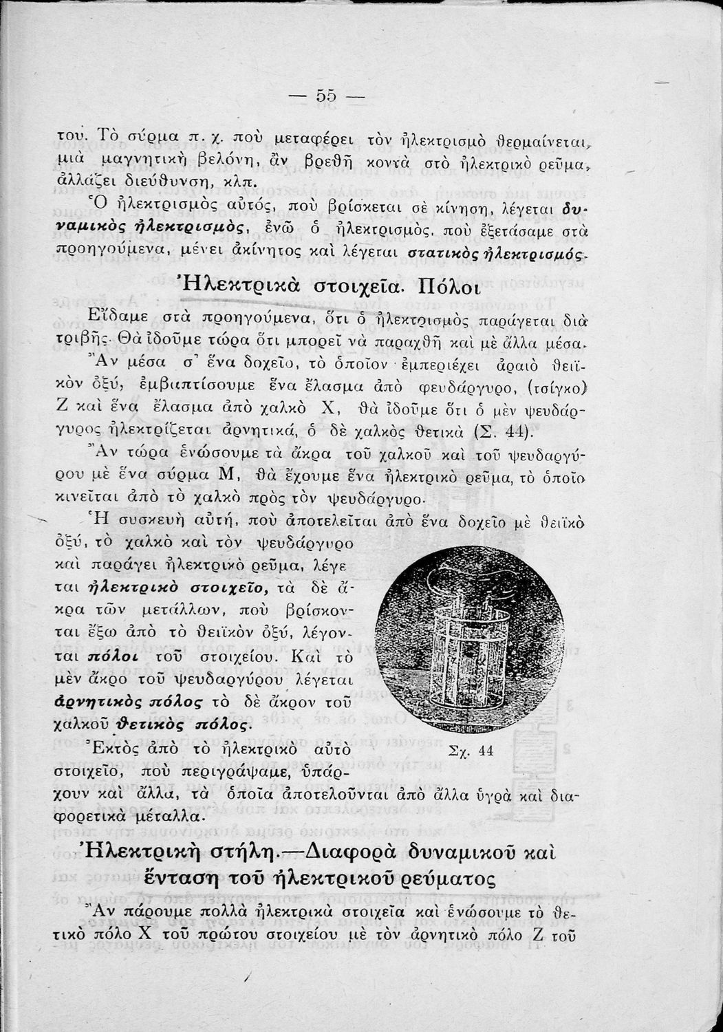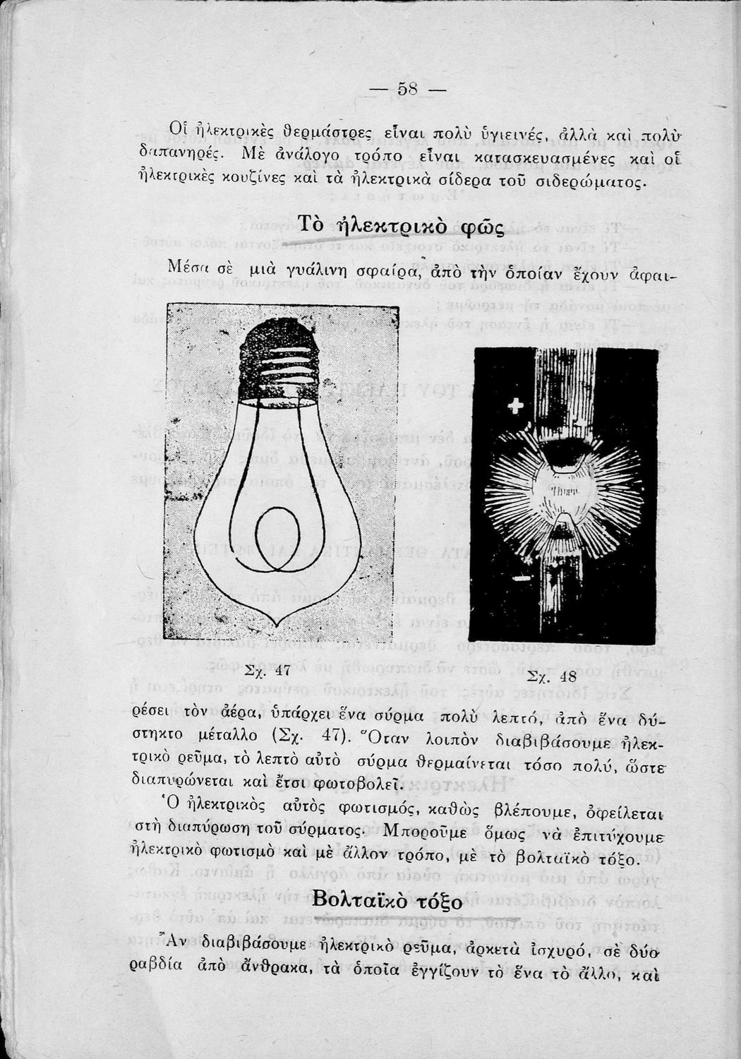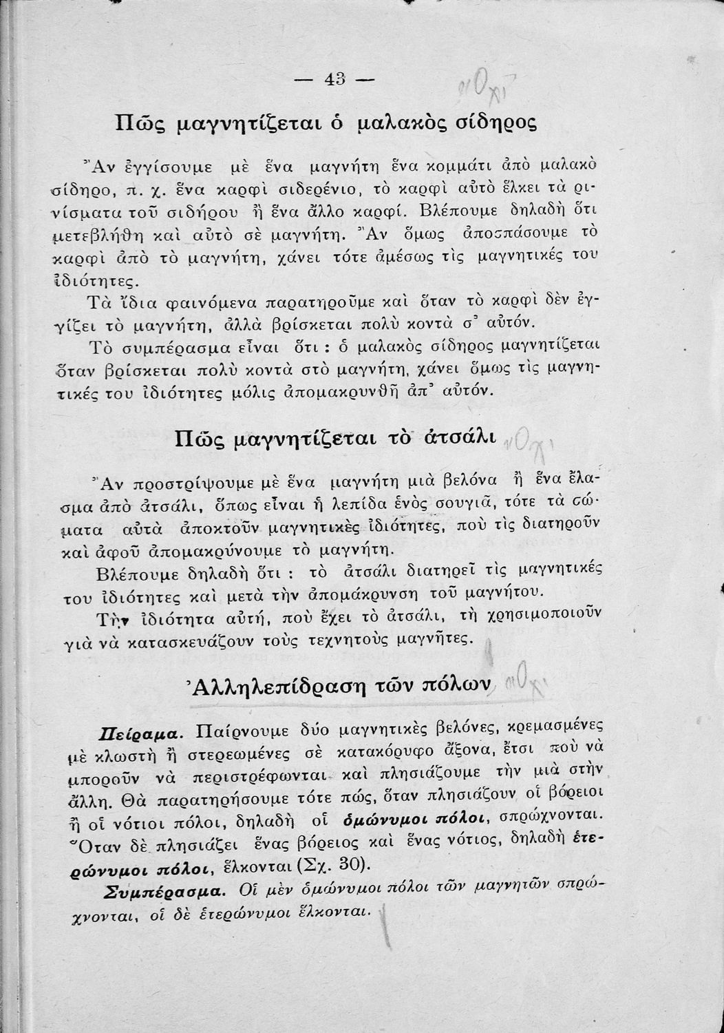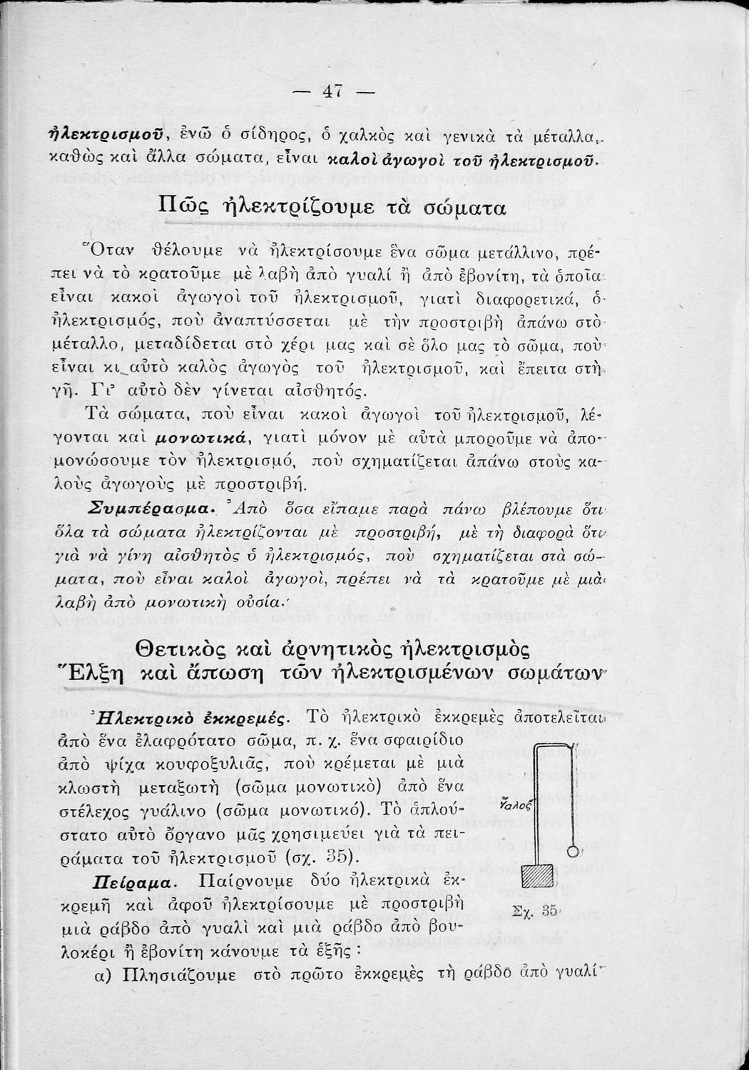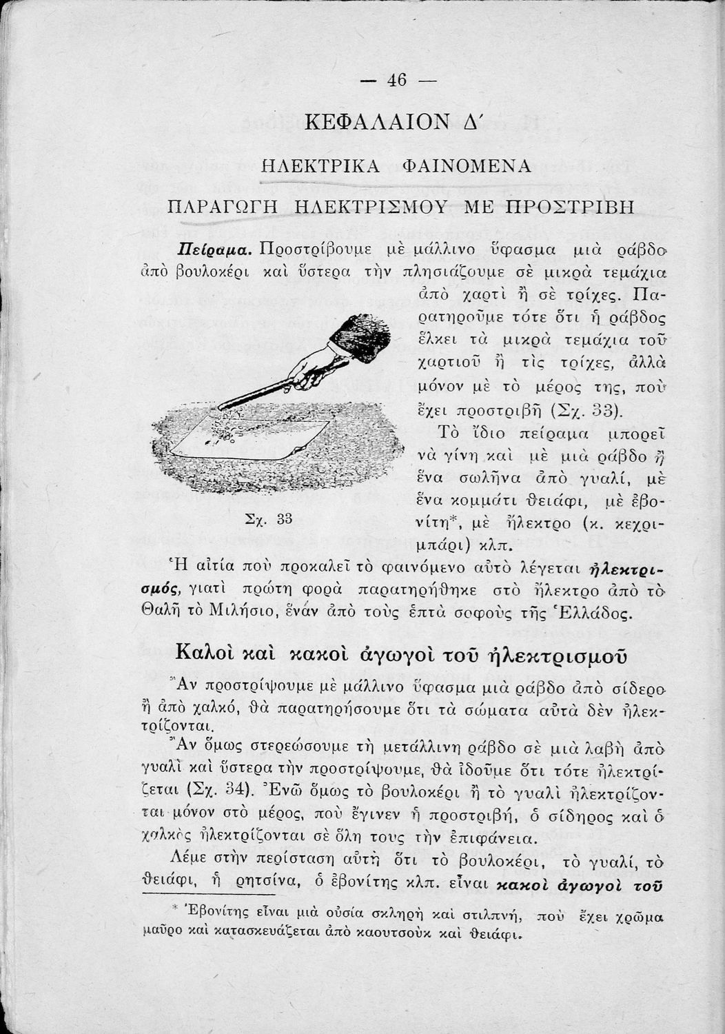 Σχολικό εγχειρίδιο της ΣΤ΄ και Ε΄ Δημοτικού για το μάθημα της Φυσικής στο Δημοτικό. Παρέχει βασικές γνώσεις της φυσικής επιστήμης και της χημείας. Αναλύει τις ιδιότητες των σωμάτων, καθώς και της θερμότητας, του ηλεκτρισμού και του μαγνητισμού, την υδροστατική, την βαρύτητα και την αεροστατική. Από τη χημεία αναφέρει τις ιδιότητες των στοιχείων, των μετάλλων, τις βάσεις, τα οξέα και τα άλατα, καθώς και τις χημικές αντιδράσεις. Περιέχει εικόνες και σχεδιαγράμματα τα οποία βοηθούν τη διδασκαλία.