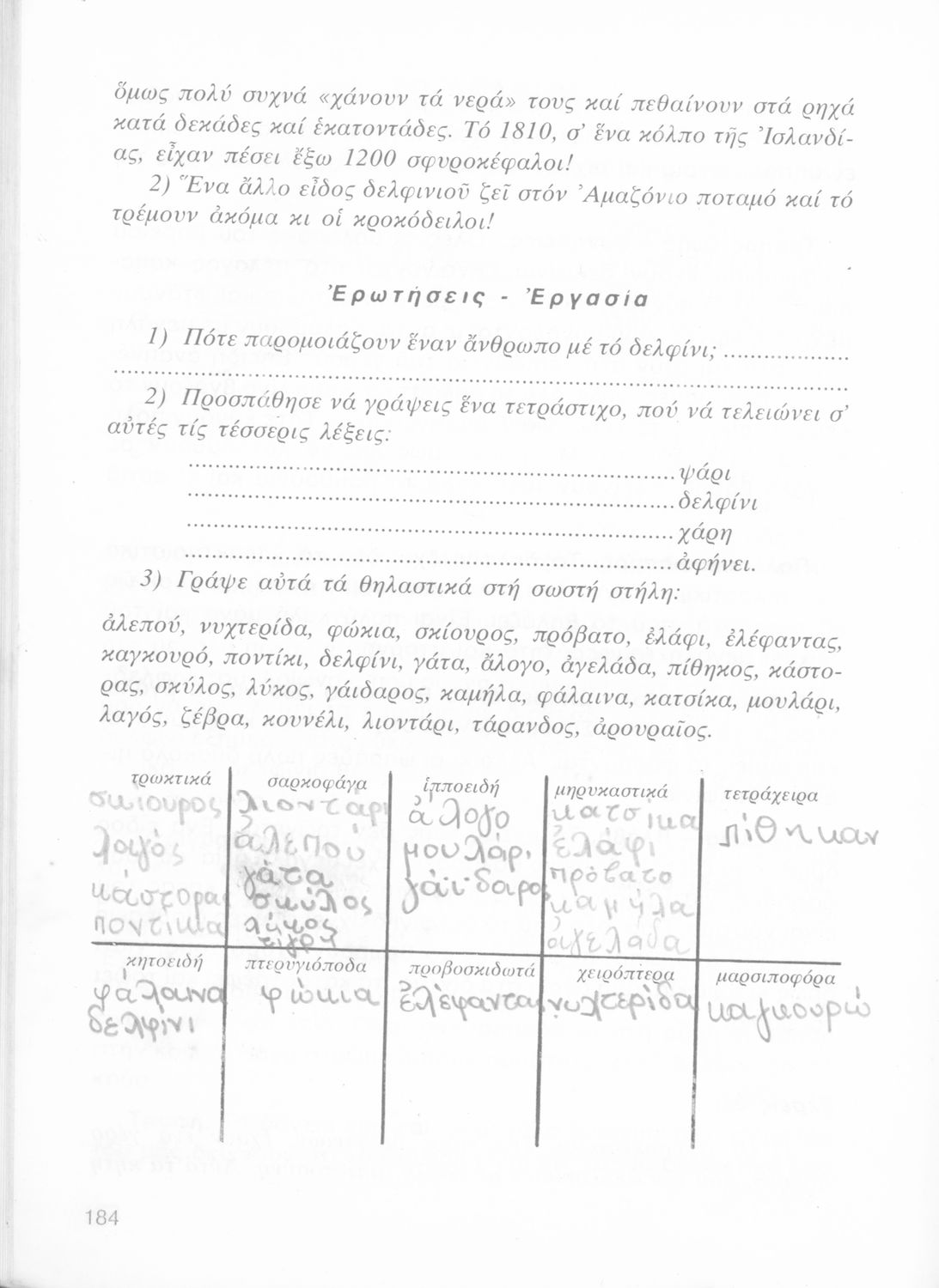Φυτά και ζώα της πατρίδας μας Δ΄ Δημοτικού