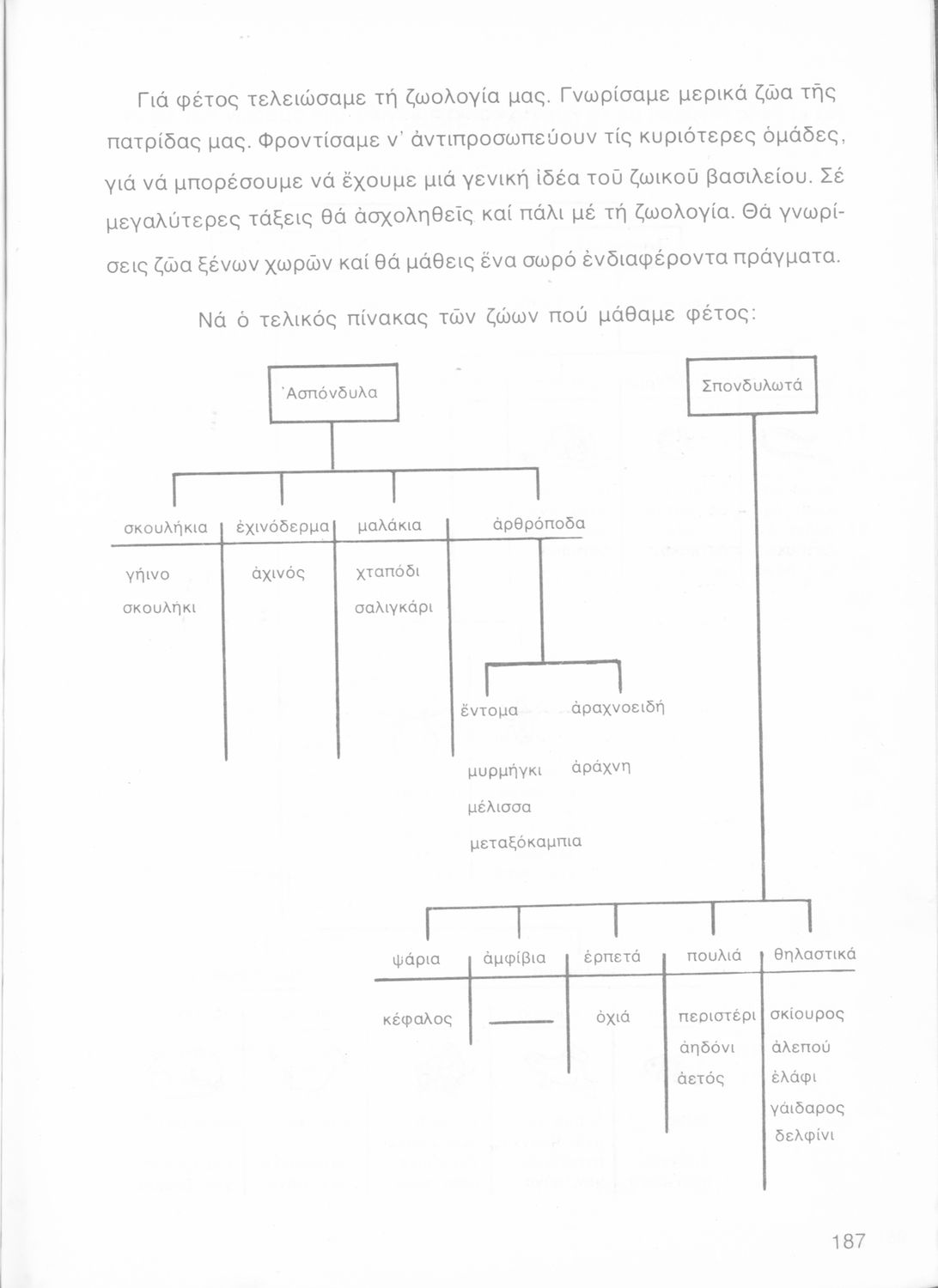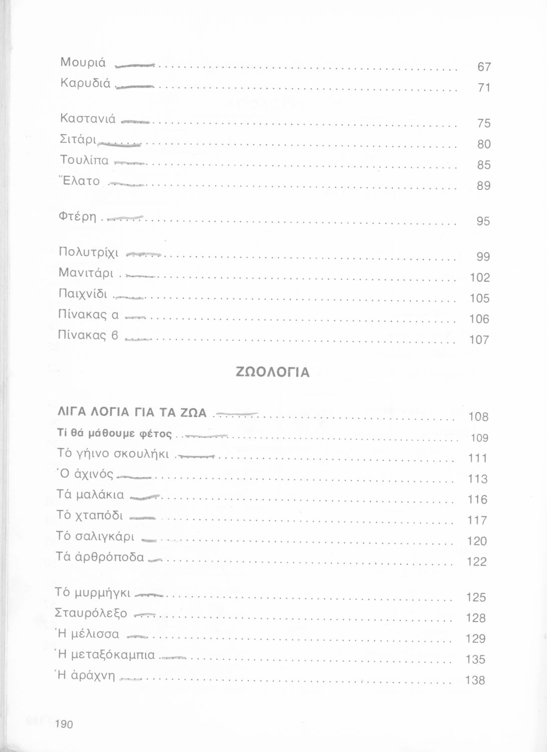 Σχολικό εγχειρίδιο Φυτολογίας και Ζωολογίας για τη Δ΄ Δημοτικού που γράφτηκε στη σειρά εκδόσεων της Σχολή Μωραΐτη. Παρουσιάζει πλήθος φυτών και ζώων και εστιάζει στην αναπαραγωγή, τους εχθρούς, τις διατροφικές