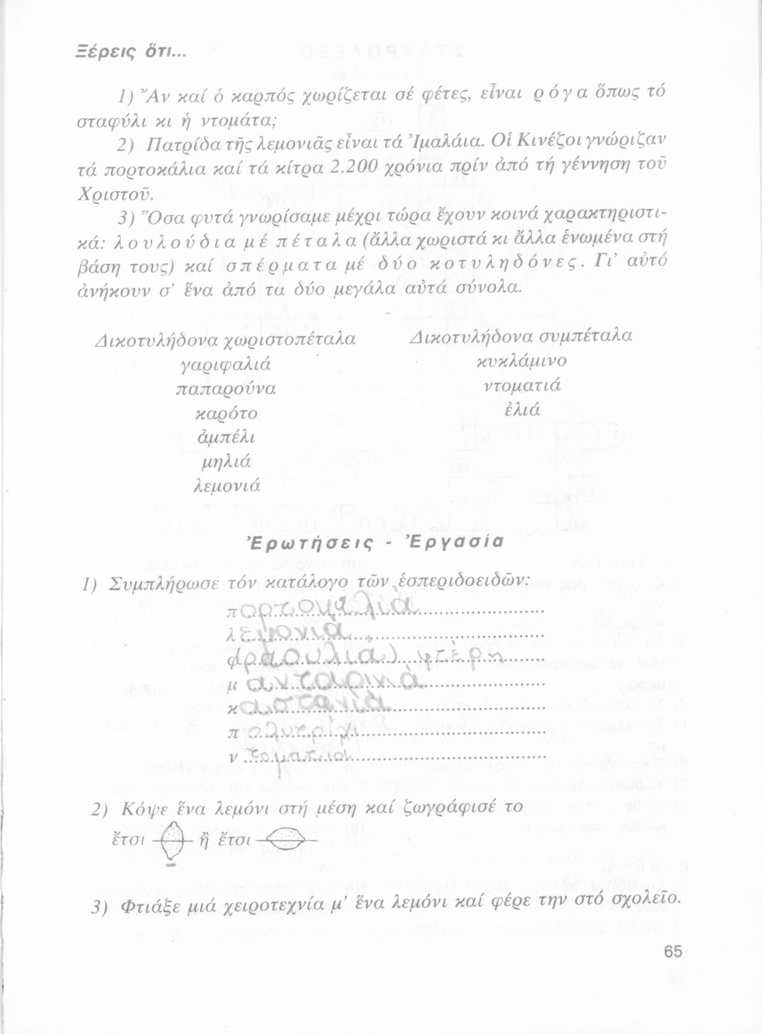 Φυτά και ζώα της πατρίδας μας Δ΄ Δημοτικού
