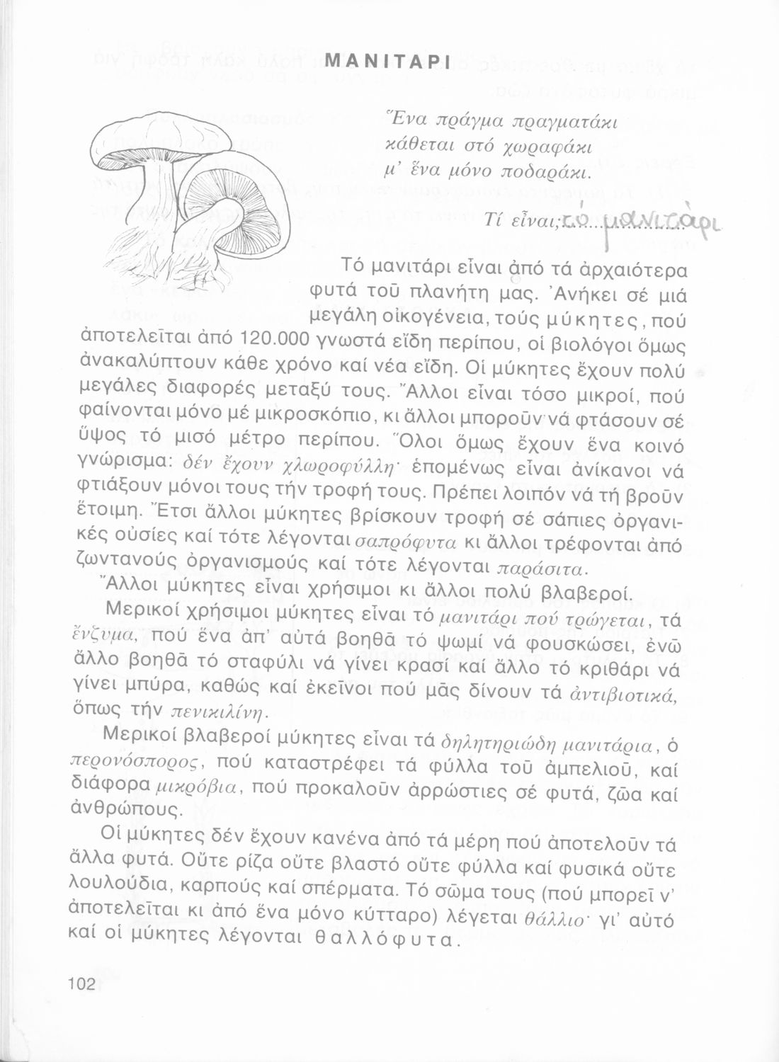 Σχολικό εγχειρίδιο Φυτολογίας και Ζωολογίας για τη Δ΄ Δημοτικού που γράφτηκε στη σειρά εκδόσεων της Σχολή Μωραΐτη. Παρουσιάζει πλήθος φυτών και ζώων και εστιάζει στην αναπαραγωγή, τους εχθρούς, τις διατροφικές