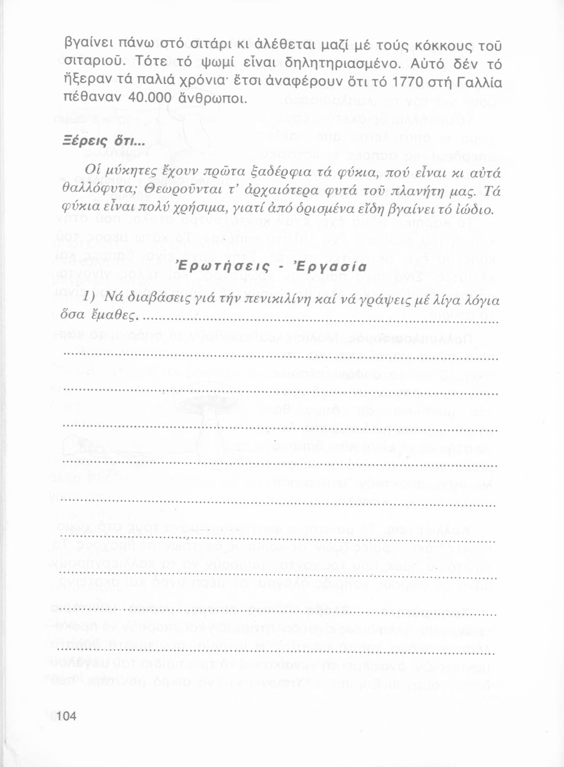 Μαθητικό βοήθημα της Δ΄ Δημοτικού για το μάθημα της Φυσικής Ιστορίας. Περιέχει πληροφορίες για τη φυτολογία και τη ζωολογία. Το βιβλίο έχει εικόνες, καθώς και δίστιχα ή παροιμίες, οι πρακτικές αυτές ...