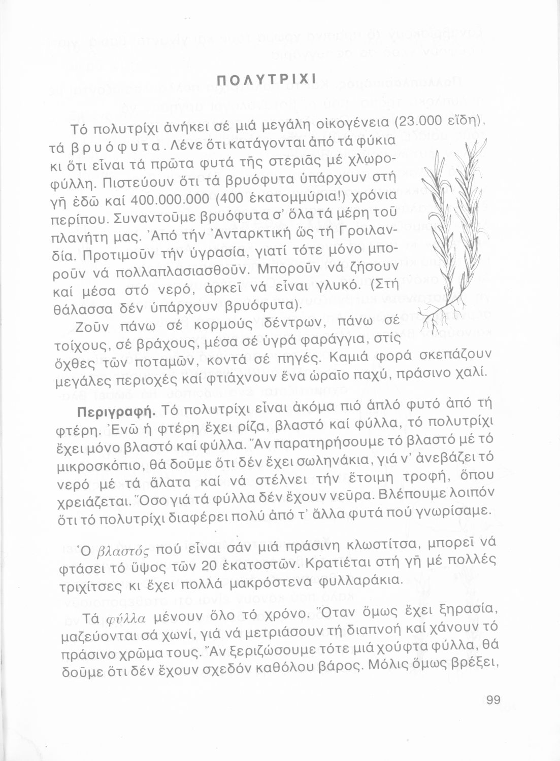 Σχολικό εγχειρίδιο Φυτολογίας για τη Δ' Δημοτικού. Πληροφορεί τους μαθητές για τον τρόπο παρατήρησης του περιβάλλοντος και δίνει στοιχεία για φυτά και ζώα που υπάρχουν στο ελληνικό φυσικό περιβάλλον. Κάθε ...