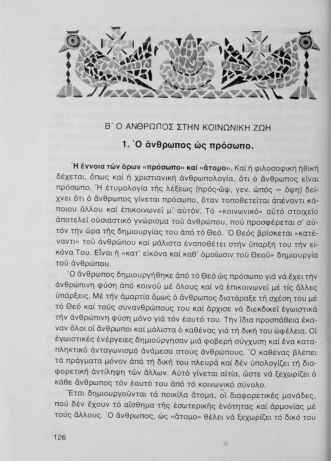 Σχολικό εγχειρίδιο Θρησκευτικών Γ΄ Λυκείου που πραγματεύεται ζητήματα Χριστιανικής ηθικής από φιλοσοφική σκοπιά.