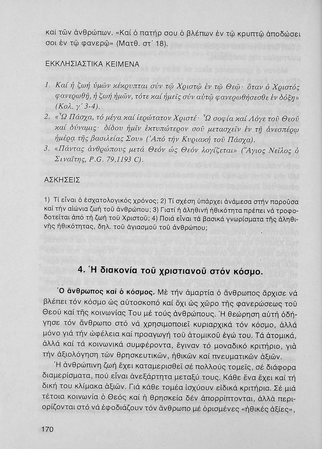 Σχολικό εγχειρίδιο Θρησκευτικών Α΄, Β΄ και Γ΄ Λυκείου που, μέσα από τα κείμενα των Πατέρων της Εκκλησίας, πραγματεύεται ζητήματα αρετής, ηθικής αμαρτίας, λύτρωσης, δικαιοσύνης και αγάπης. Επίσης αναφέρεται ...