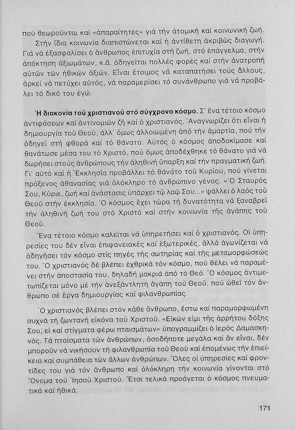 Σχολικό εγχειρίδιο Θρησκευτικών Γ΄ Λυκείου που πραγματεύεται ζητήματα Χριστιανικής ηθικής από φιλοσοφική σκοπιά.