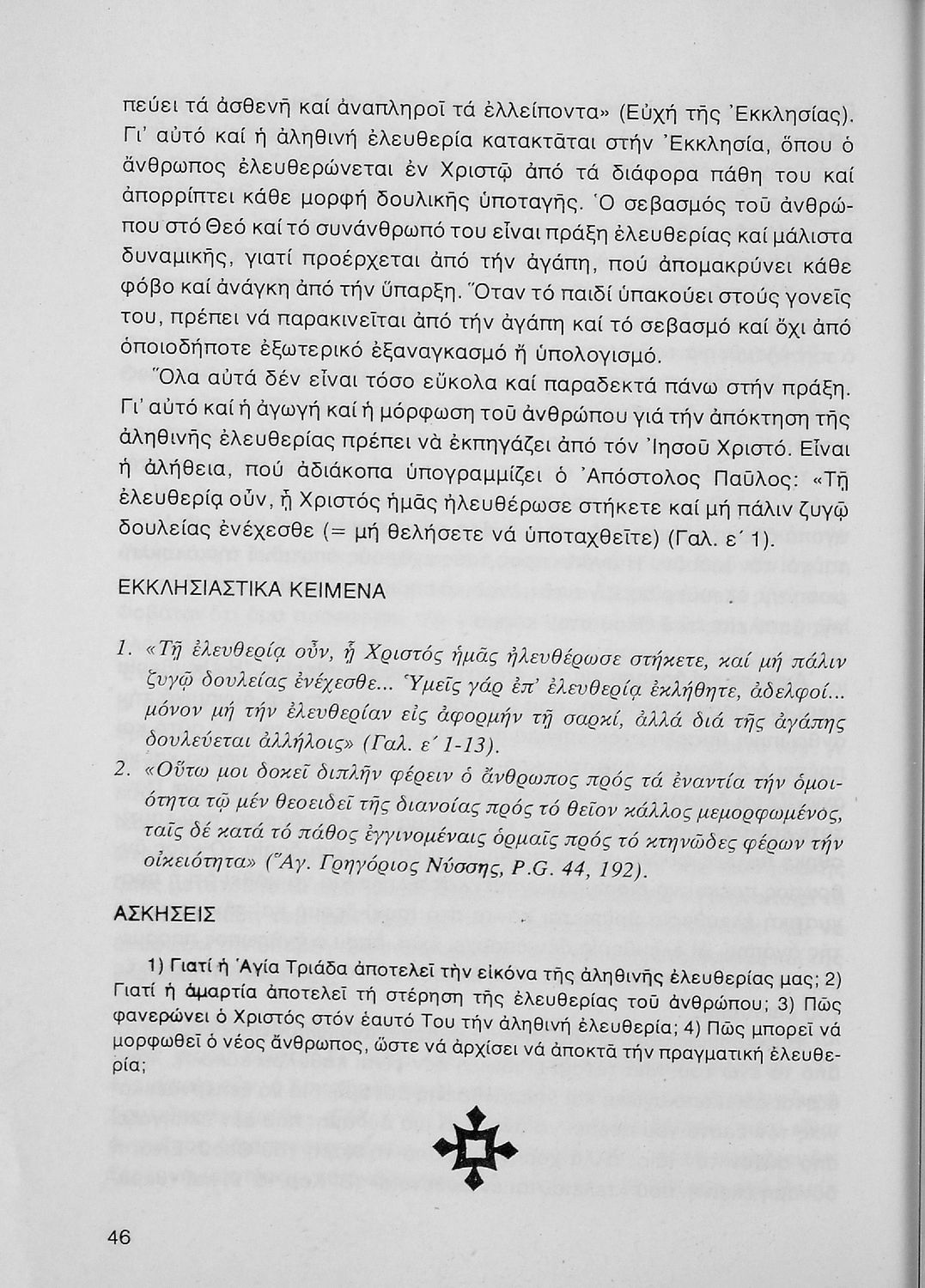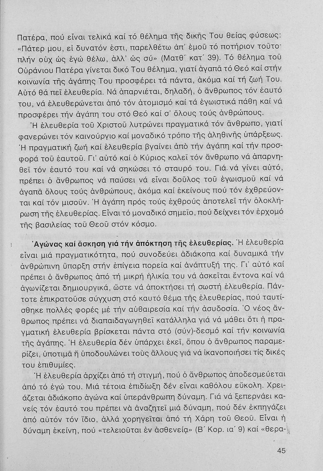 Σχολικό εγχειρίδιο Θρησκευτικών Α΄, Β΄ και Γ΄ Λυκείου που, μέσα από τα κείμενα των Πατέρων της Εκκλησίας, πραγματεύεται ζητήματα αρετής, ηθικής αμαρτίας, λύτρωσης, δικαιοσύνης και αγάπης. Επίσης αναφέρεται ...