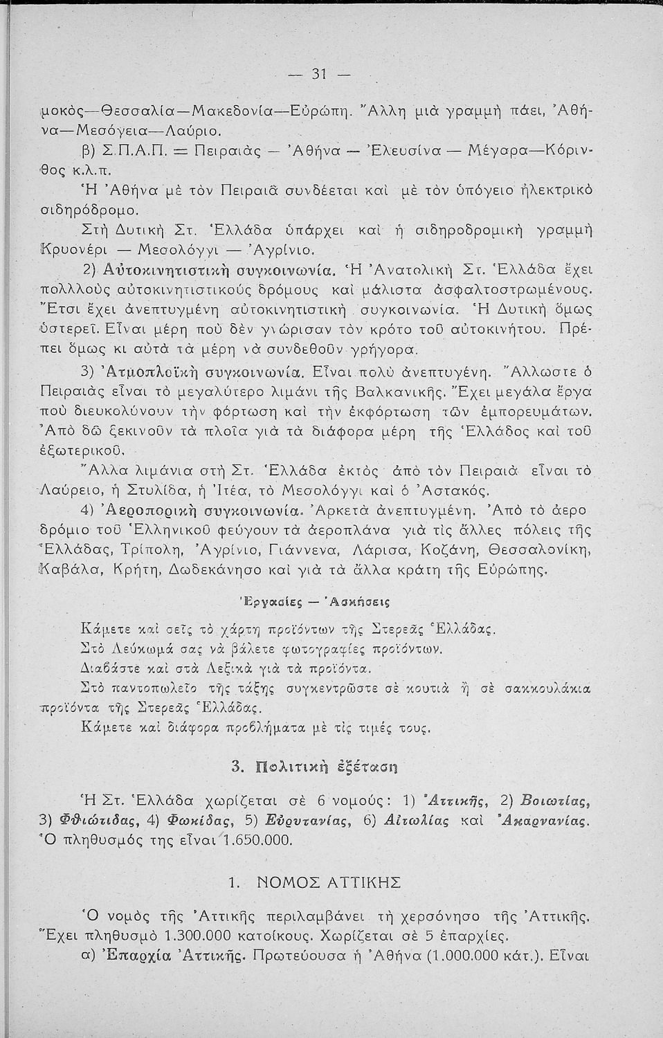Μαθητικό βοήθημα Γεωγραφίας για την Γ΄ και Δ΄ Δημοτικού που περιέχει χάρτες περιοχών της Ελλάδας τις οποίες εξετάζει από γεωφυσική, πολιτική και οικονομική άποψη.
