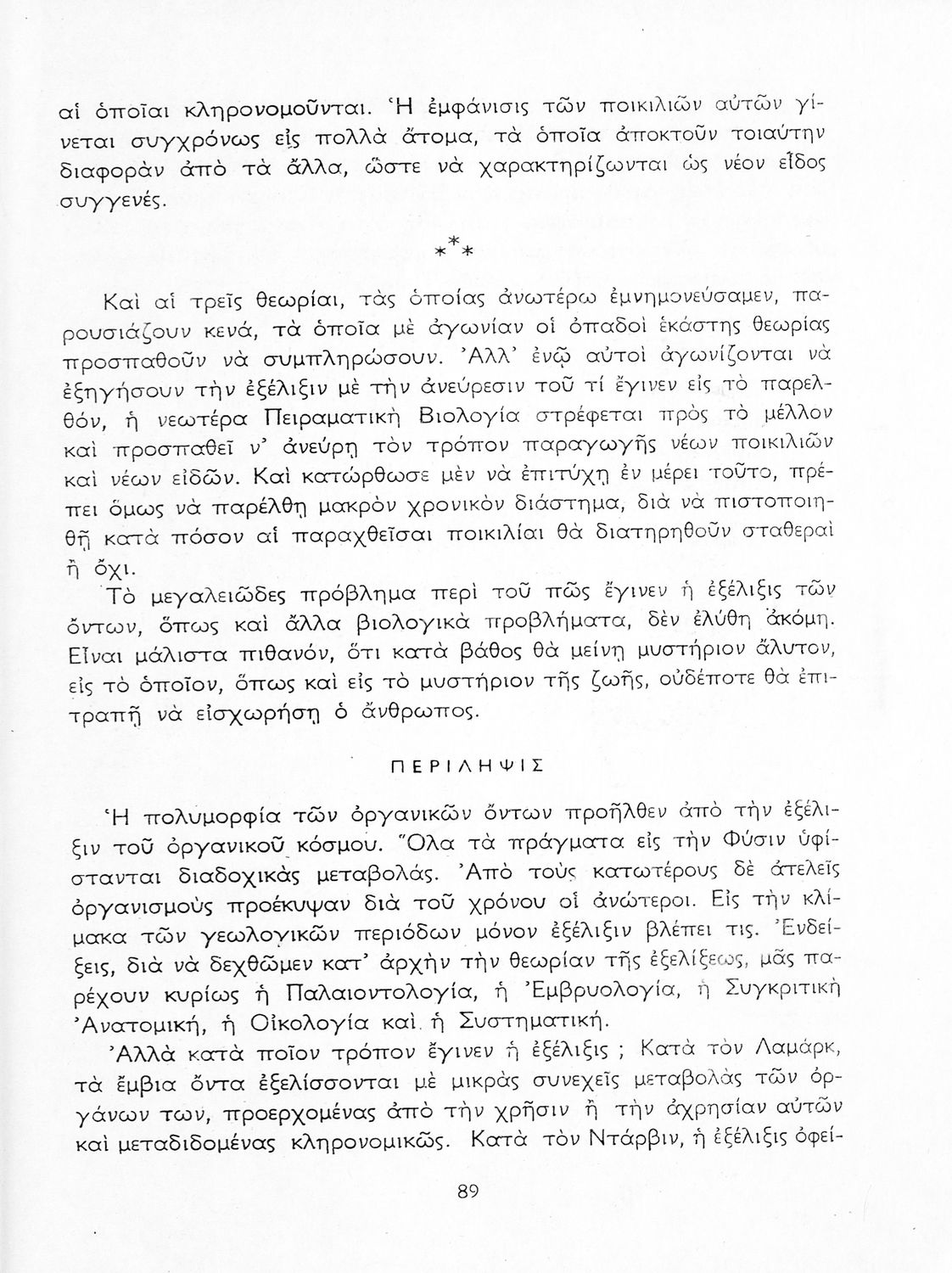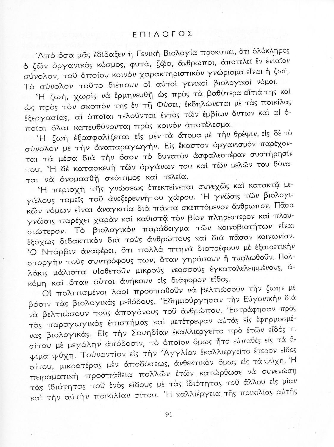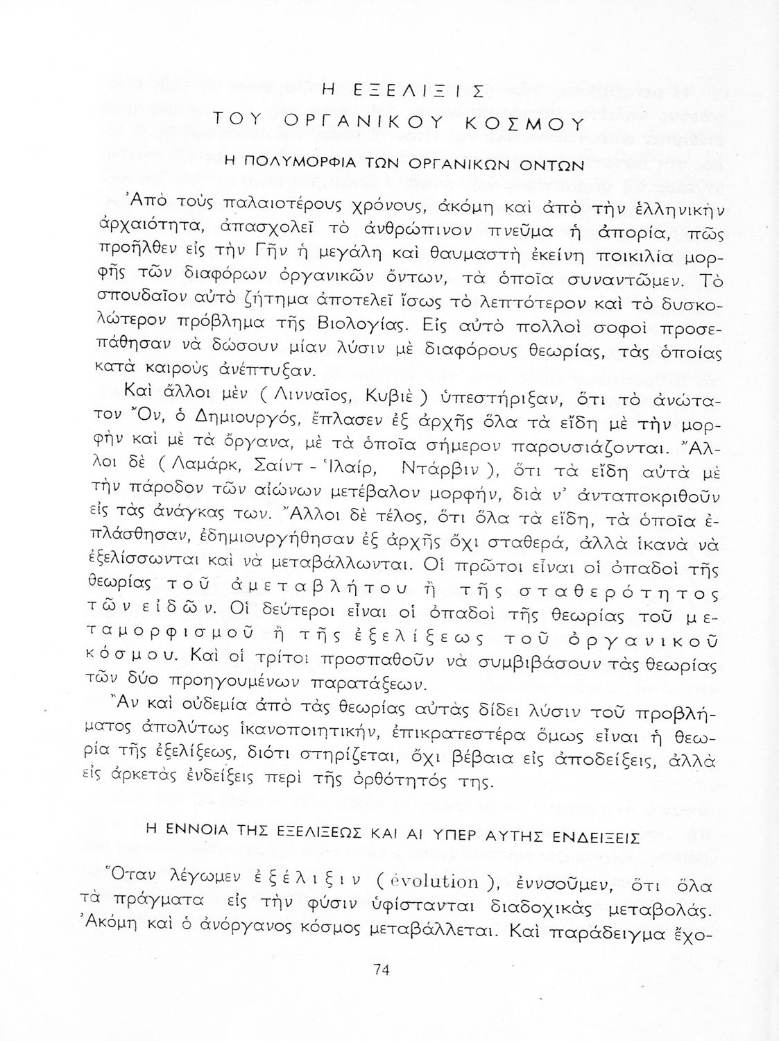 Σχολικό εγχειρίδιο Βιολογίας Δ΄ Γυμνασίου που εστιάζει στις συνθήκες γέννησης, μεταβολής και θανάτου των έμβιων οργανισμών. Ο συγγραφέας ήταν καθηγητής της γενικής Βιολογίας στο Πανεπιστήμιο Αθηνών.