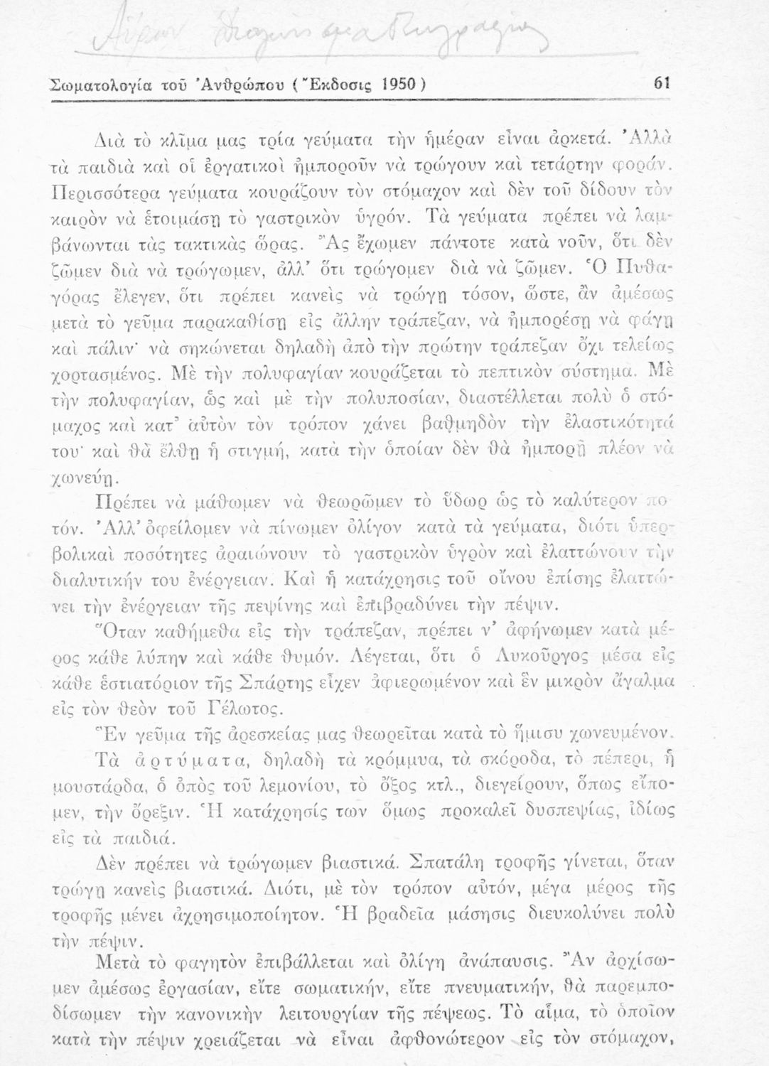 Τίτλος: Σωματολογία του ανθρώπου μετά στοιχείων υγιεινής δια την Ε΄ Τάξιν των Εξαταξίων Γυμνασίων