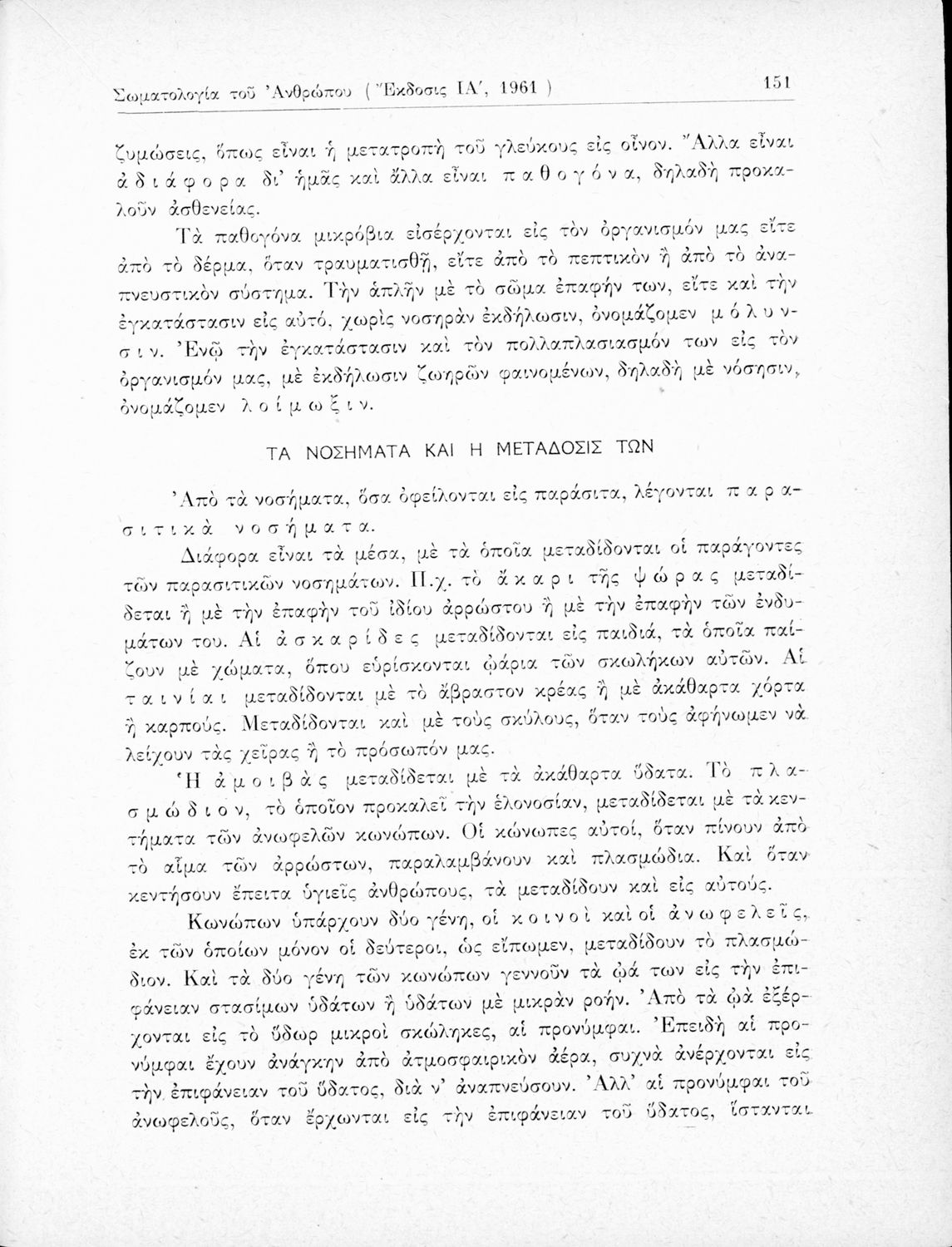 Τίτλος: Σωματολογία του ανθρώπου μετά στοιχείων υγιεινής δια την Ε΄ Τάξιν των Εξαταξίων Γυμνασίων
