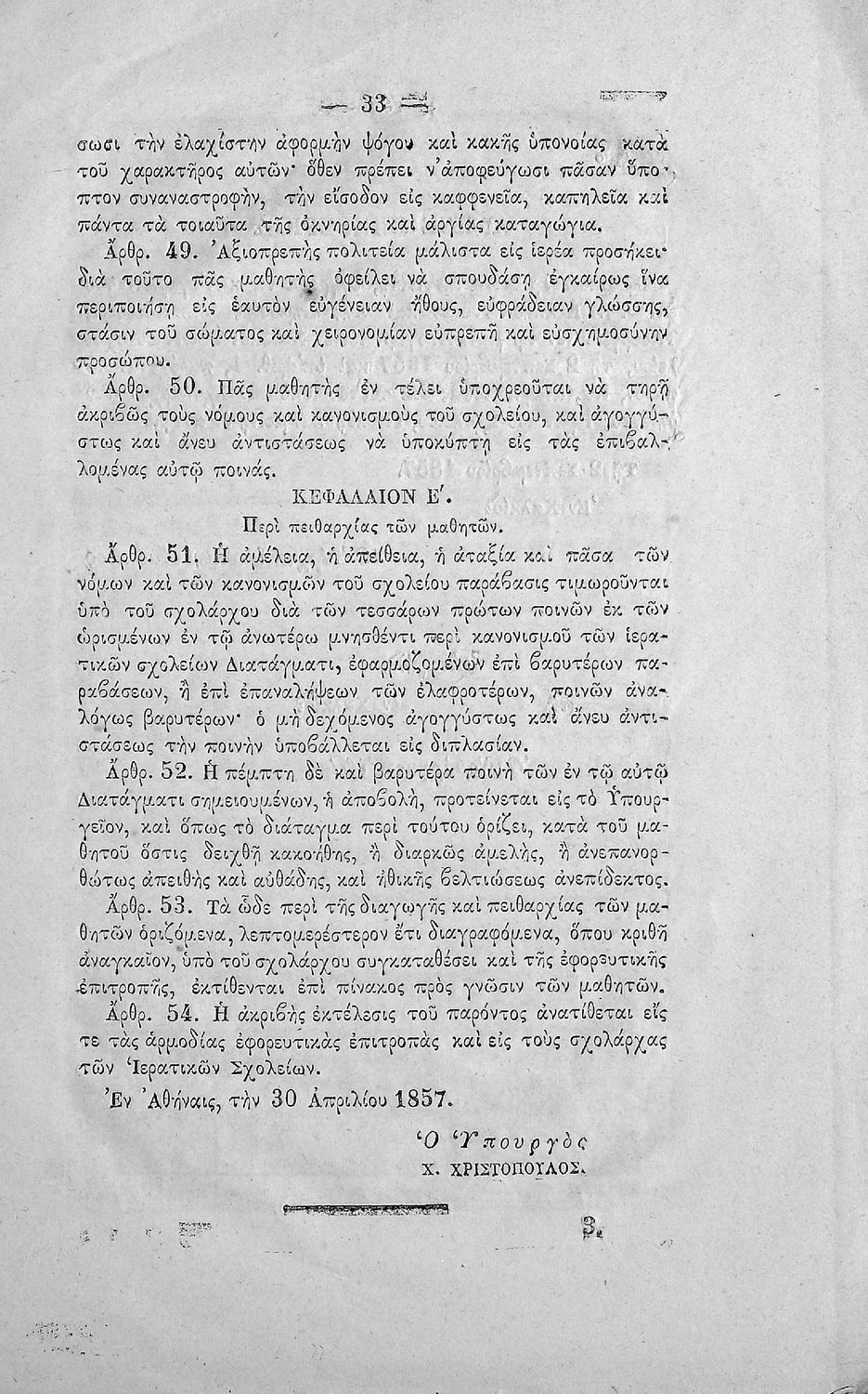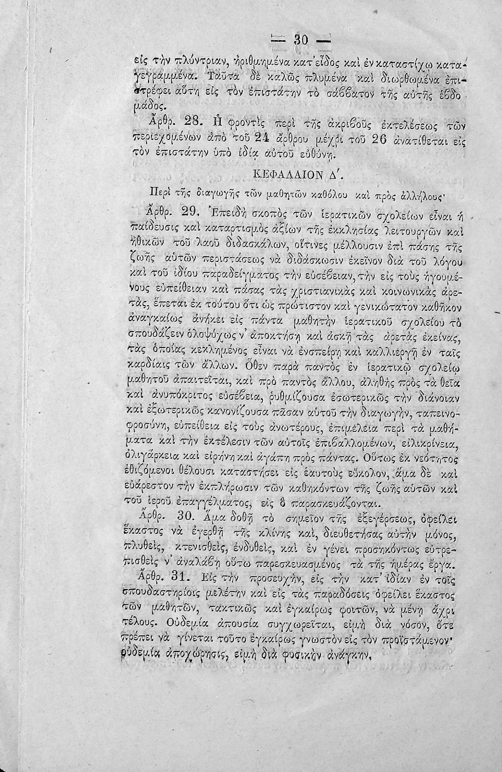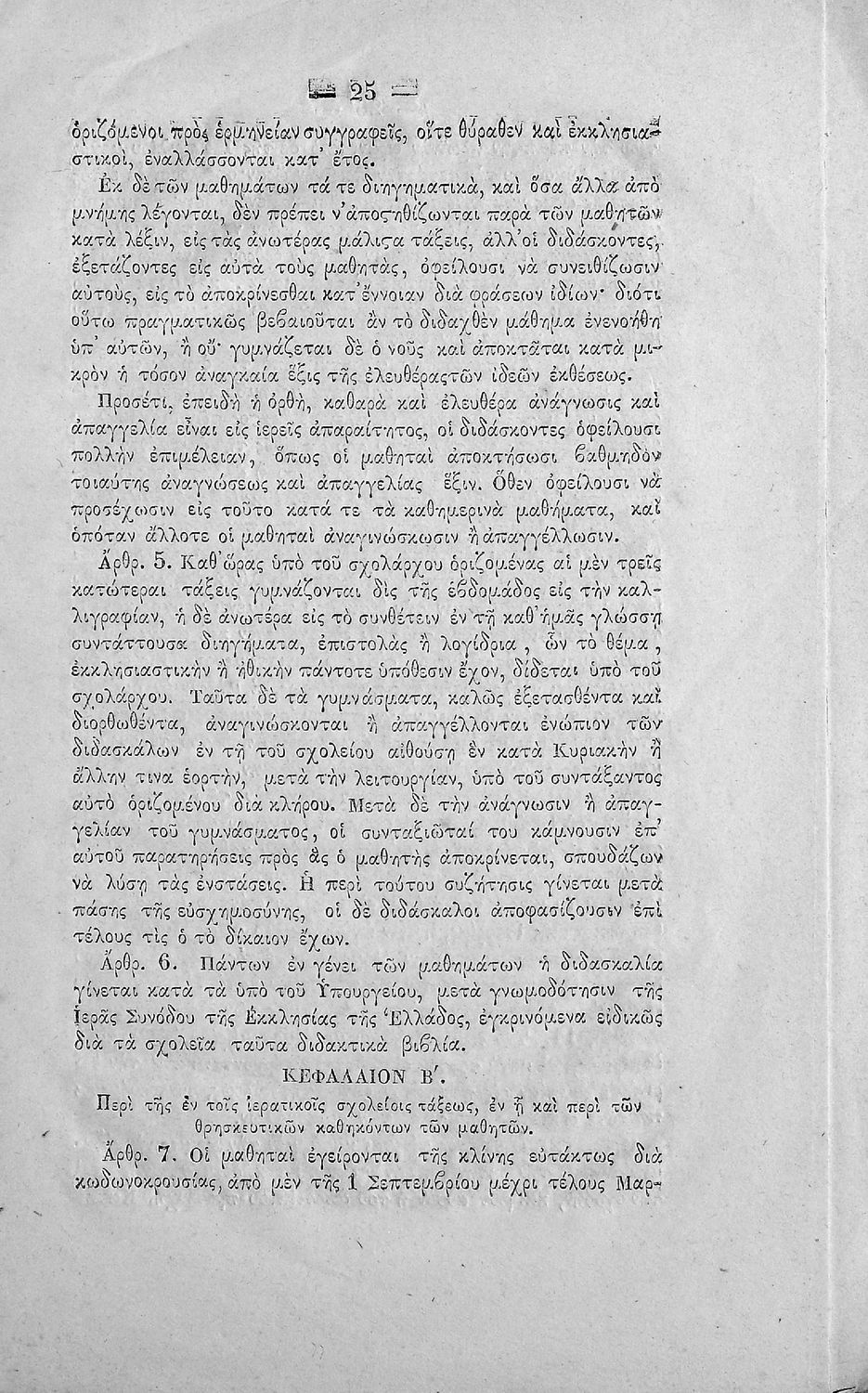 Περιέχει την αιτιολογική έκθεση και το νόμο ΤΞΖ΄ "περί ιερατικών σχολών" και σειρά σχετικών βασιλικών διαταγμάτων και κανονισμών.