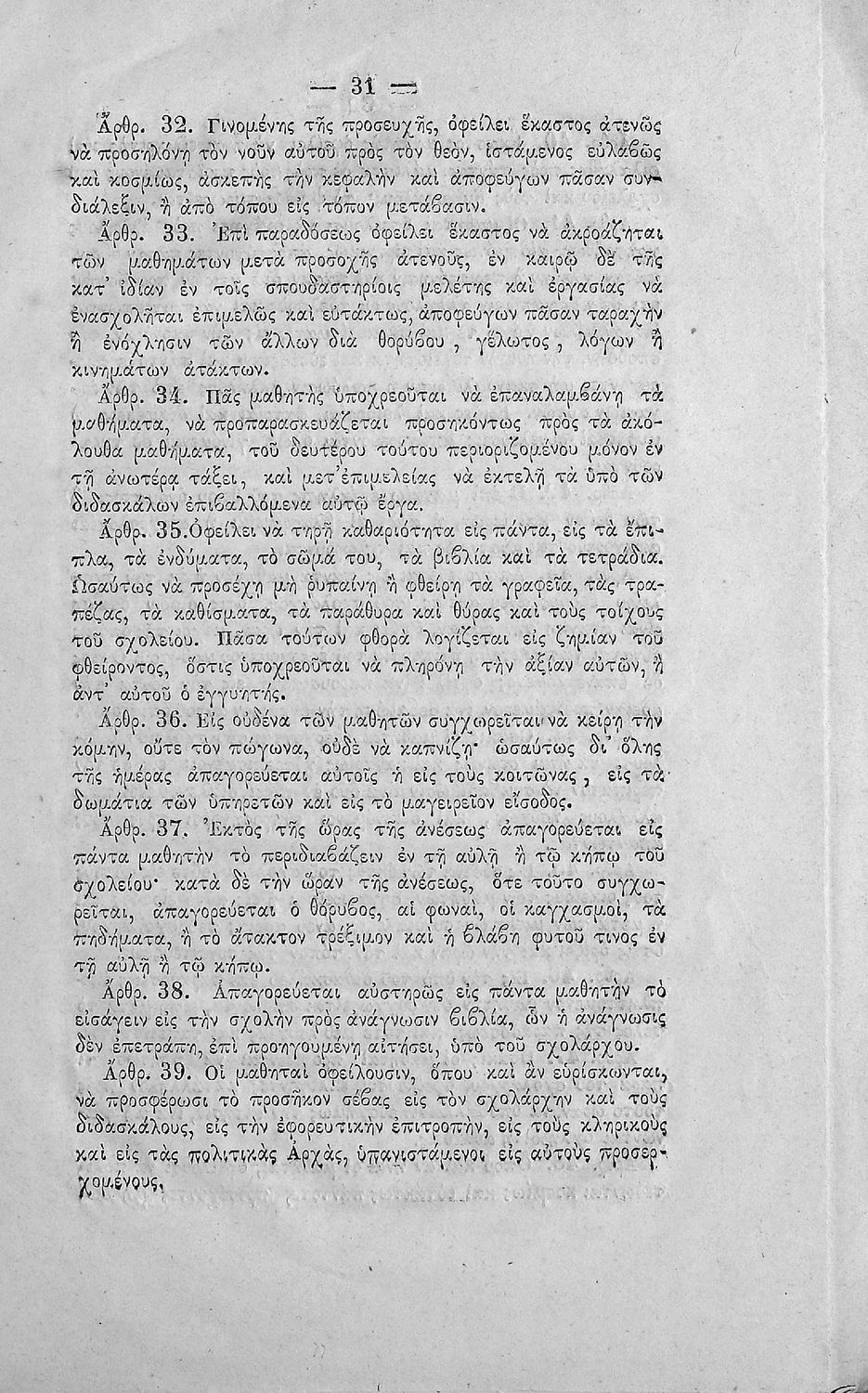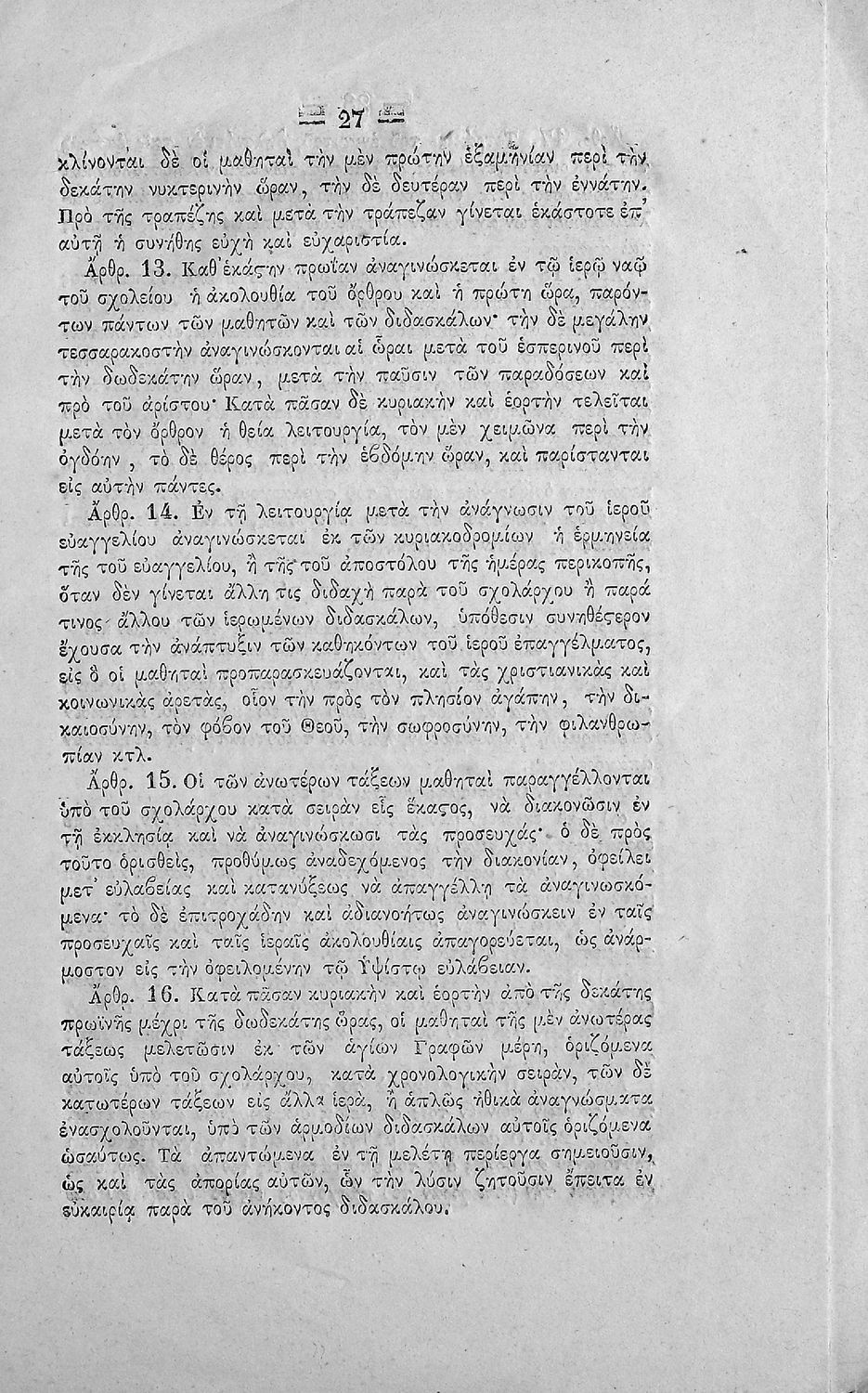 Σχολικό εγχειρίδιο Αρχαίων Ελληνικών για τα Ιερατικά Σχολεία. Ο τόμος περιέχει: «Γραμματικάς γυμνάσεις, Μύθους του Αισώπου και Φιλοσόφων ανέκδοτα, εκ των λόγων του θείου Χρυσόστομου τους περί προσευχής και τον