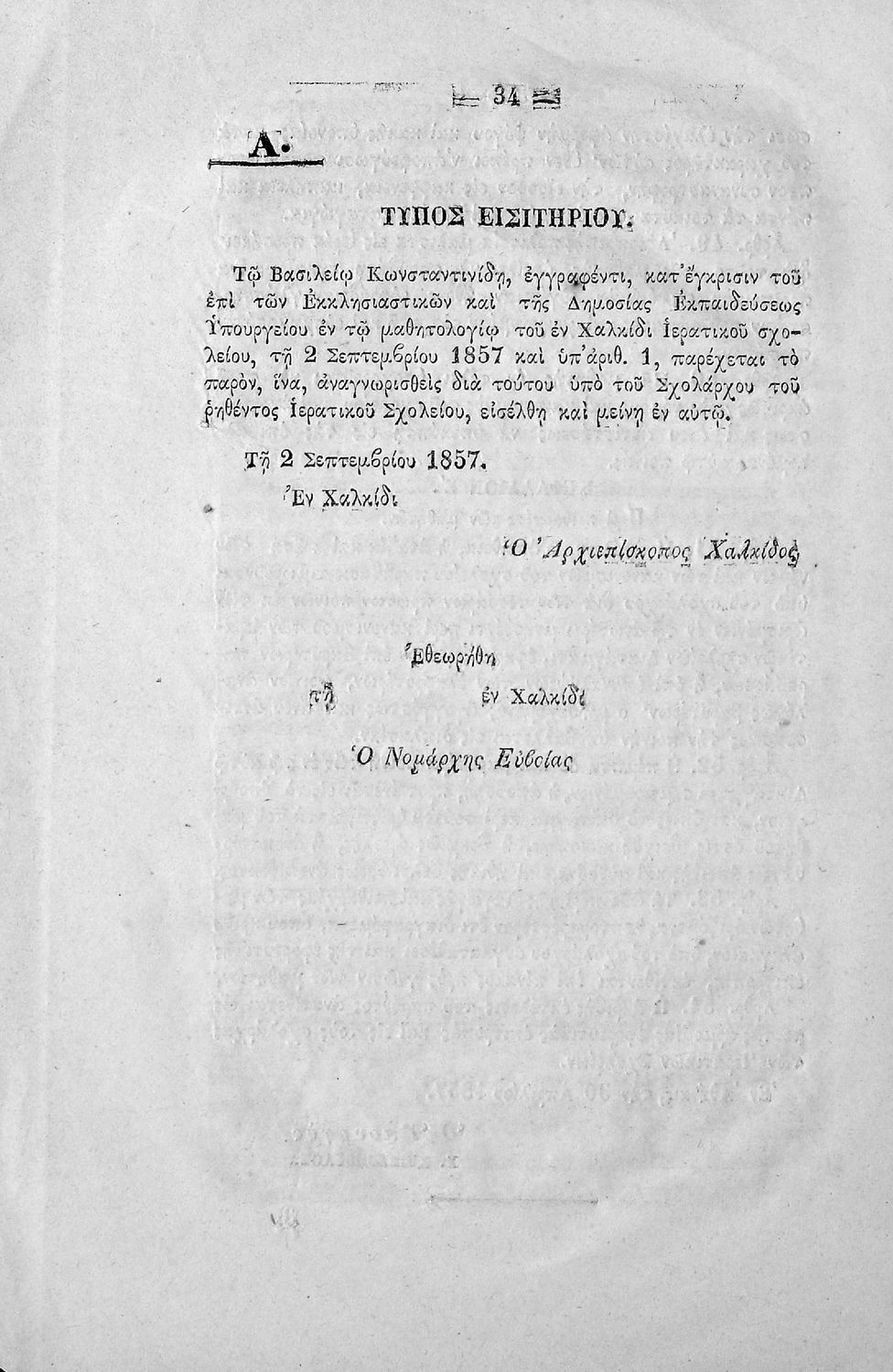 Τίτλος: Ο περί ιερατικών σχολείων νόμος, και τα προς εκτέλεσιν αυτού βασιλικά διατάγματα και κανονισμοί