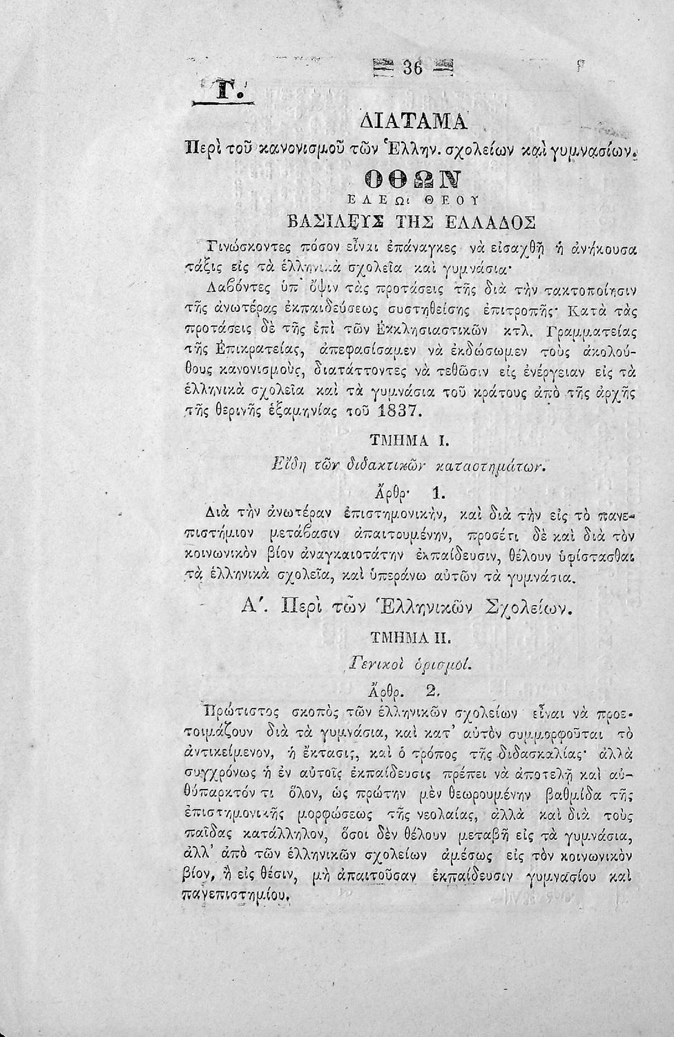 Παρουσίαση περιεχομένου: Περιέχει την αιτιολογική έκθεση και το νόμο ΤΞΖ΄ "περί ιερατικών σχολών" και σειρά σχετικών βασιλικών διαταγμάτων και κανονισμών.
