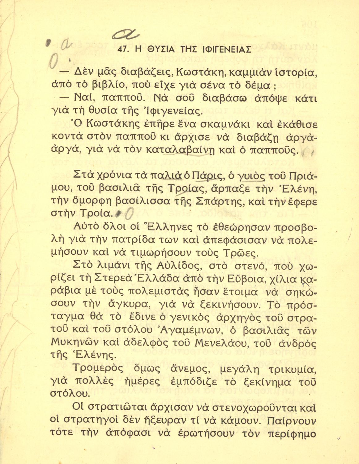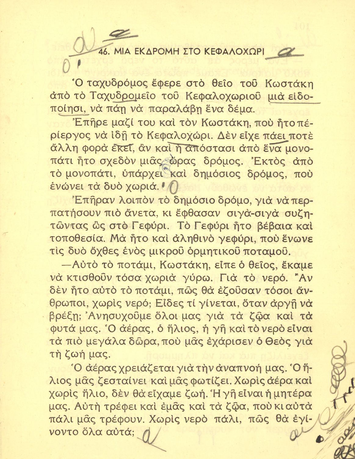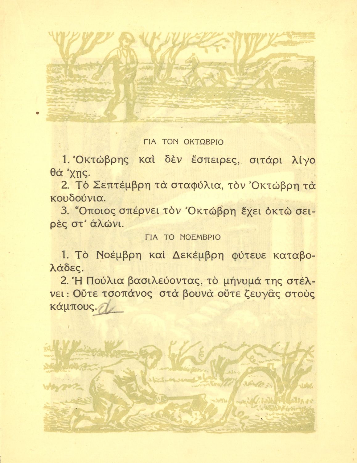 Αναγνωστικό της Γ΄ Δημοτικού που περιλαμβάνει μικρές ιστορίες εθνικιστικού περιεχομένου εμπνευσμένες από την ύπαιθρο, την οικογενειακή και κοινωνική ζωή αλλά και το εθνικό παρελθόν.