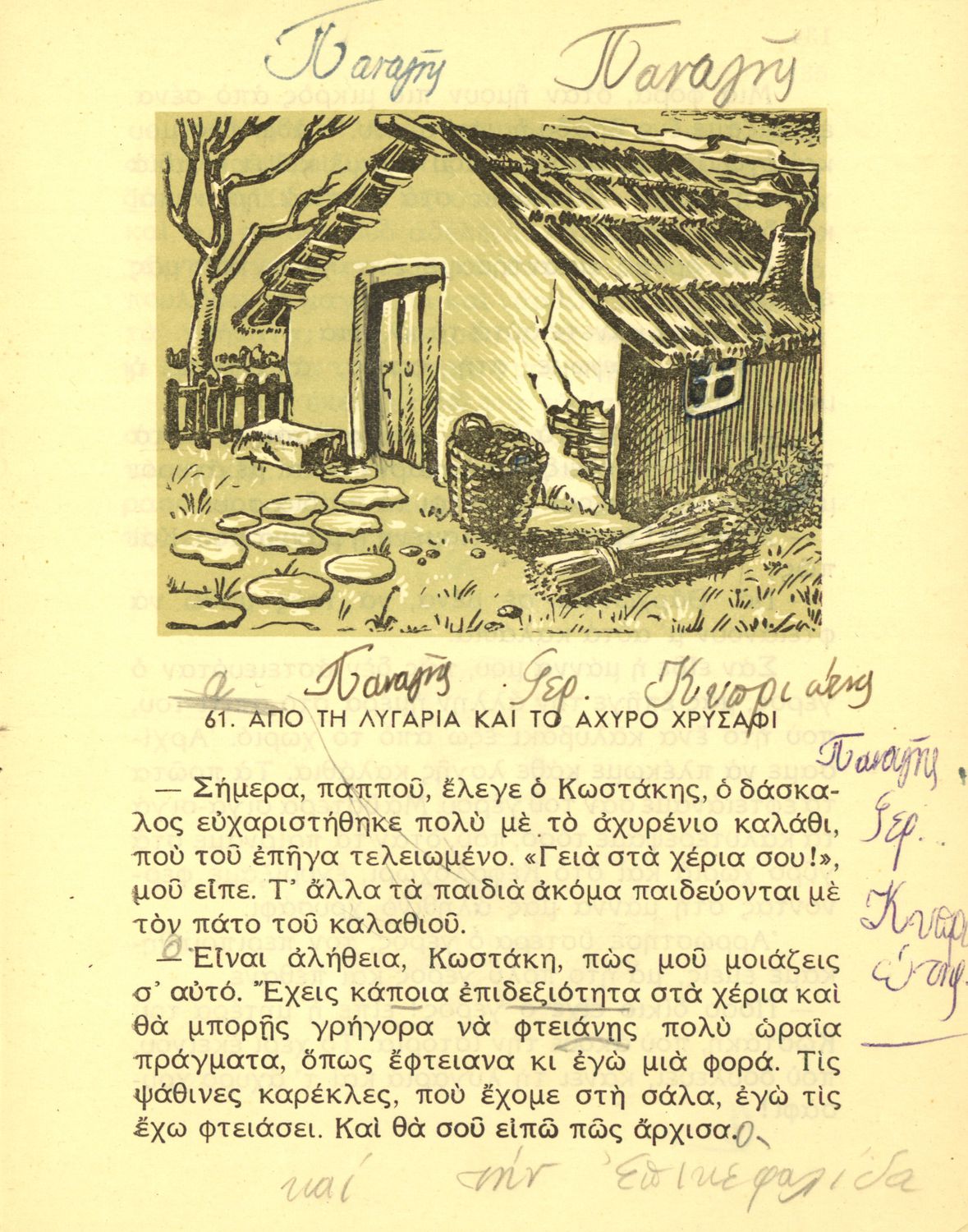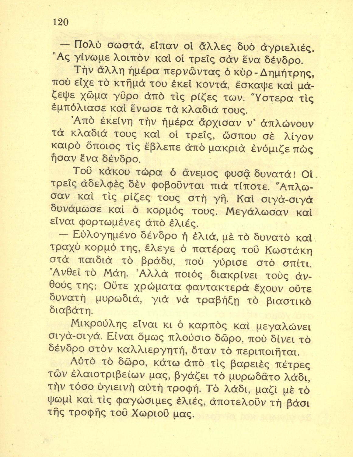 Αναγνωστικό της Γ΄ Δημοτικού που περιλαμβάνει μικρές ιστορίες εθνικιστικού περιεχομένου εμπνευσμένες από την ύπαιθρο, την οικογενειακή και κοινωνική ζωή αλλά και το εθνικό παρελθόν.