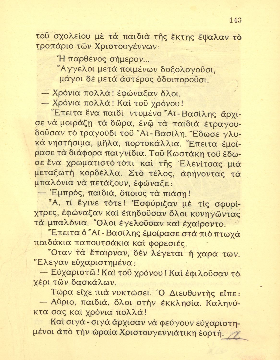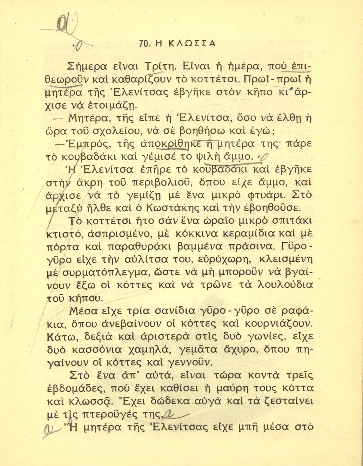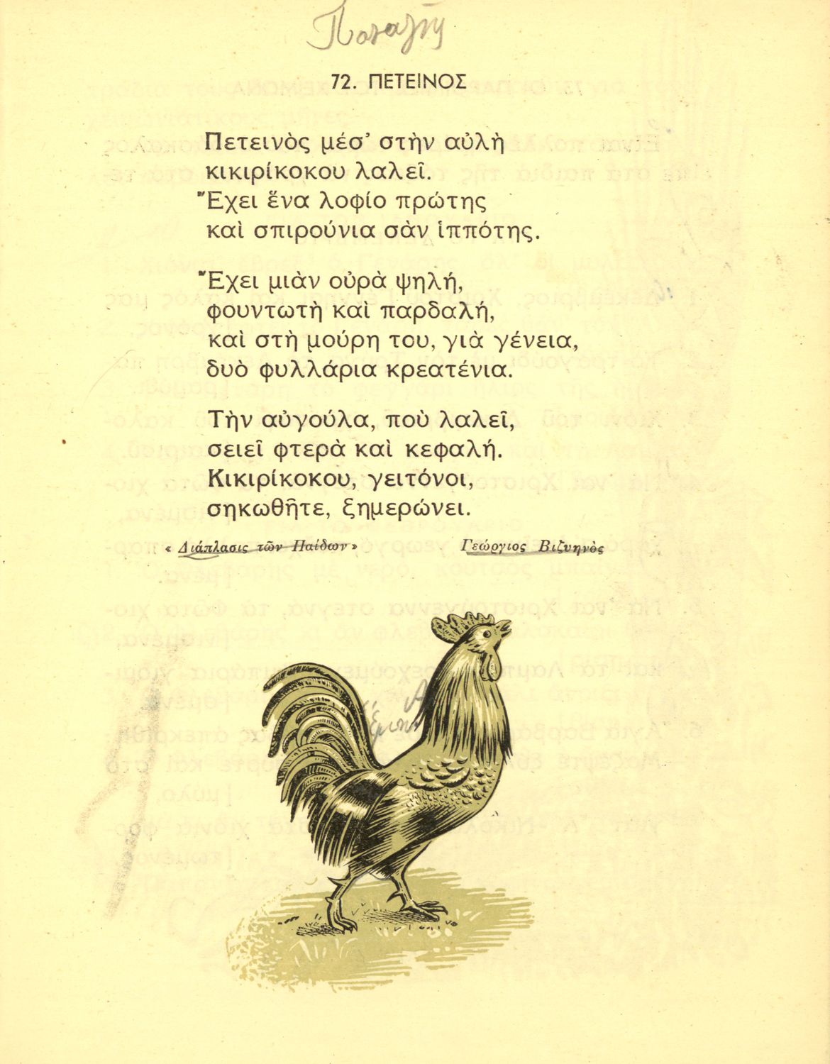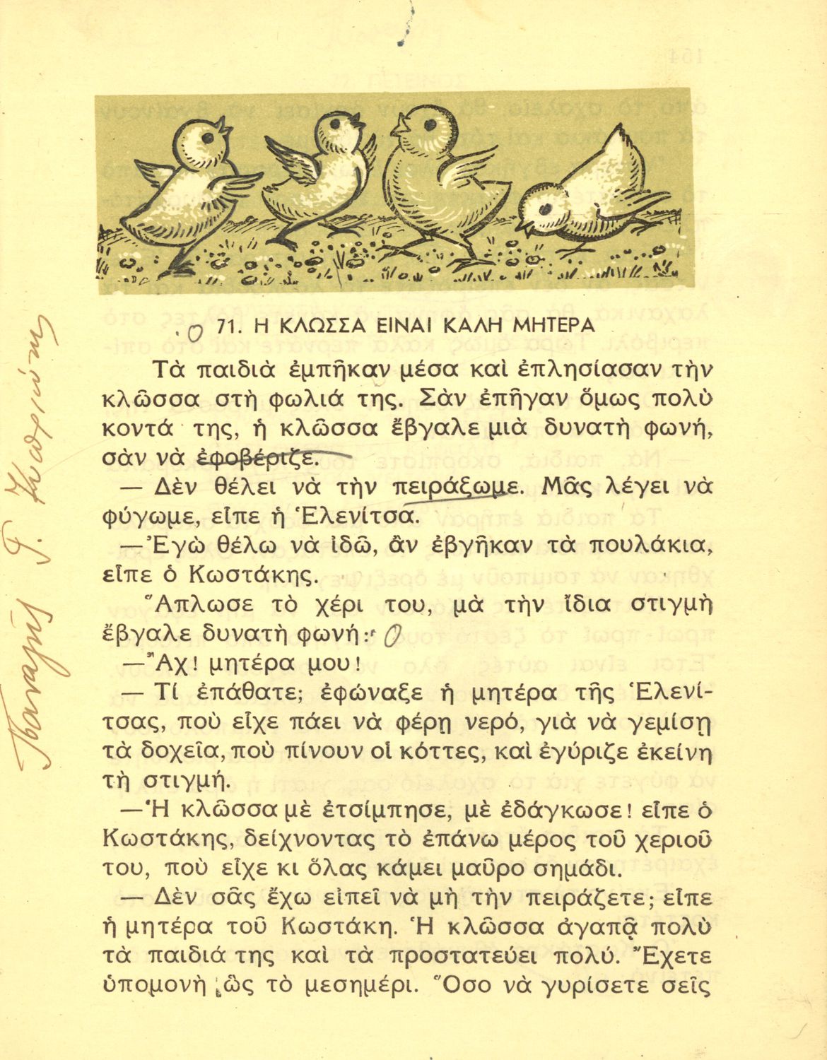 Αναγνωστικό της Γ΄ Δημοτικού που περιλαμβάνει μικρές ιστορίες εθνικιστικού περιεχομένου εμπνευσμένες από την ύπαιθρο, την οικογενειακή και κοινωνική ζωή αλλά και το εθνικό παρελθόν.