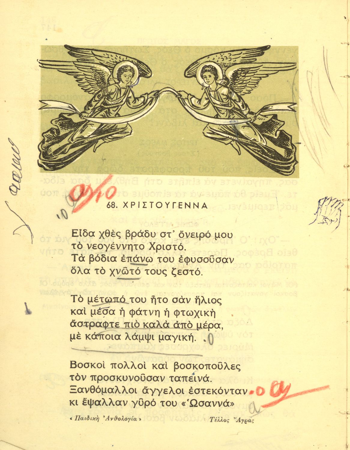 Αναγνωστικό Γ΄ Δημοτικού που περιλαμβάνει ποιήματα και πεζά εμπνευσμένα από την ελληνική φύση, τις ασχολίες των κατοίκων, την σύγχρονη ελληνική ιστορία, την ελληνική μυθολογία και τις θρησκευτικές γιορτές.