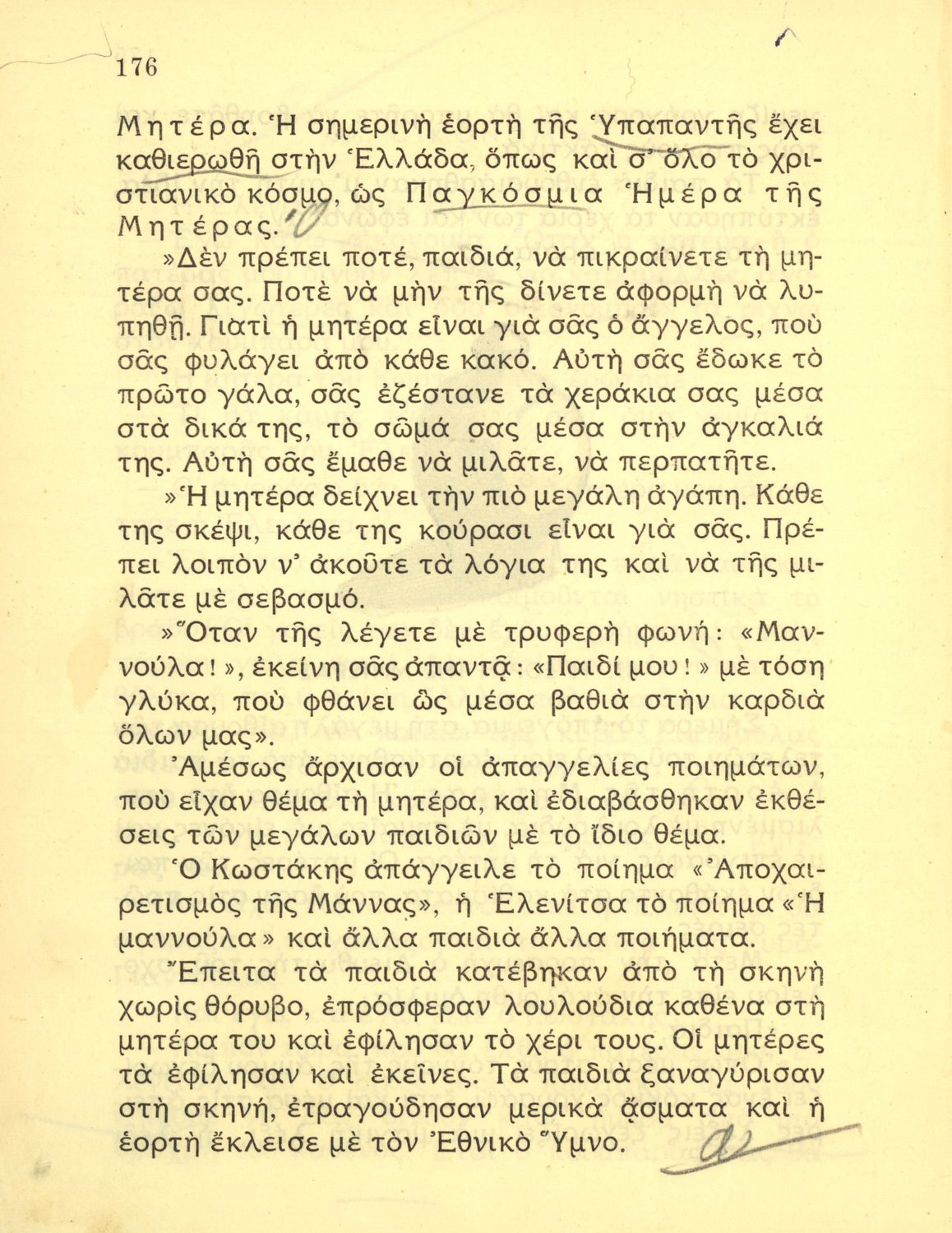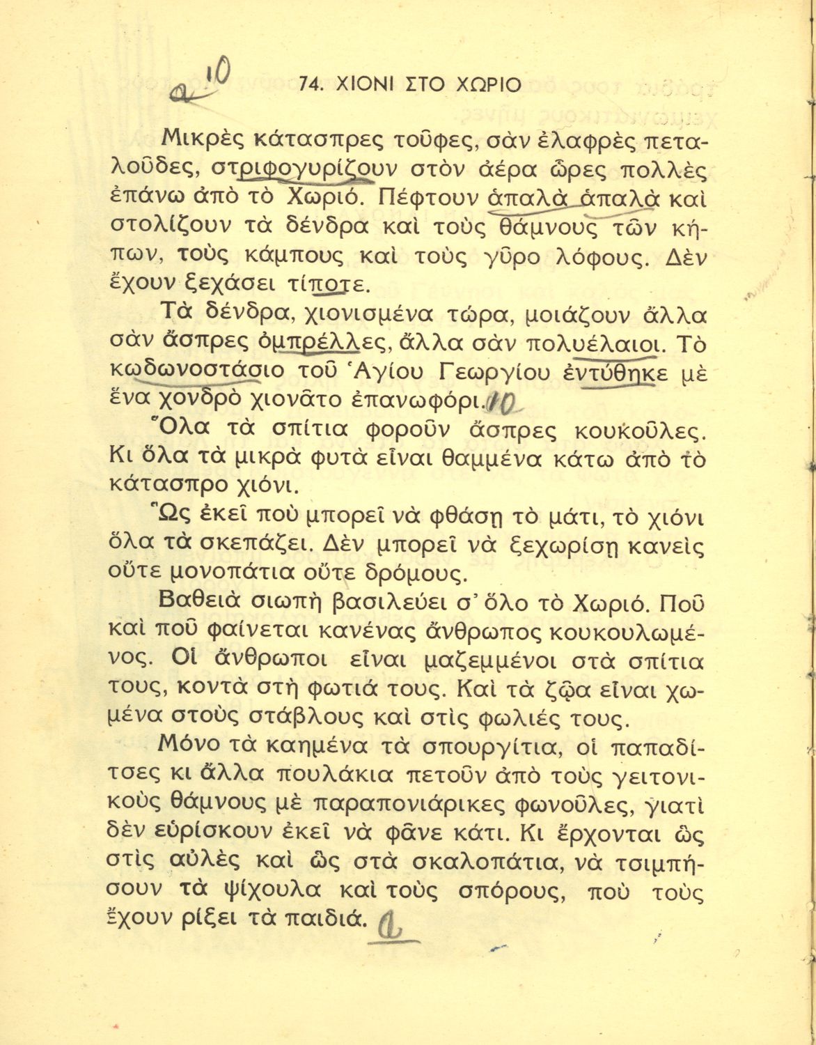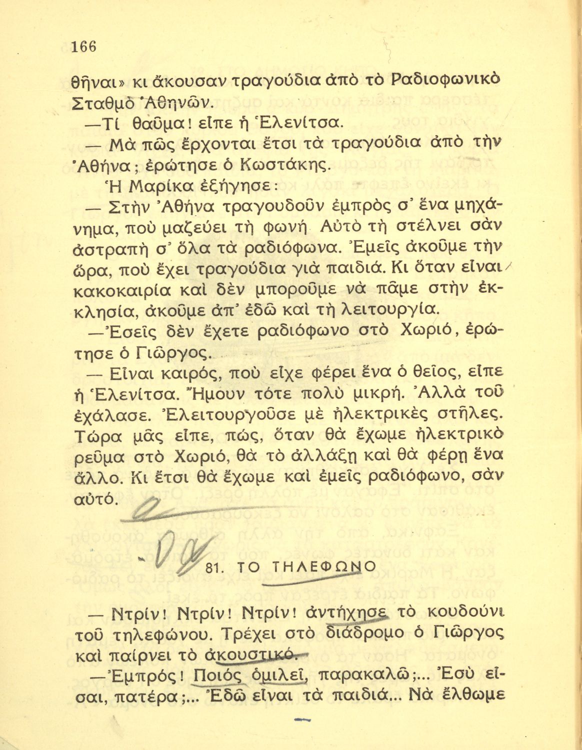 Αναγνωστικό Γ' Δημοτικού που είναι χωρισμένο σύμφωνα με τις εποχές του χρόνου και περιλαμβάνει ποιήματα και πεζά εμπνευσμένα από τη ζωή στην ύπαιθρο, την εθνική, οικογενειακή και κοινωνική ζωή, τη θρησκευτική παράδοση, τις ασχολίες των ανθρώπων, και την ελληνική φύση.