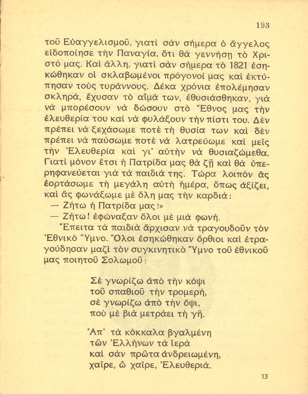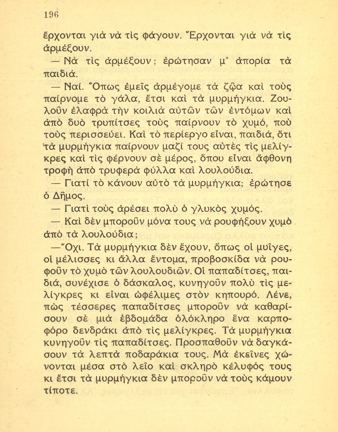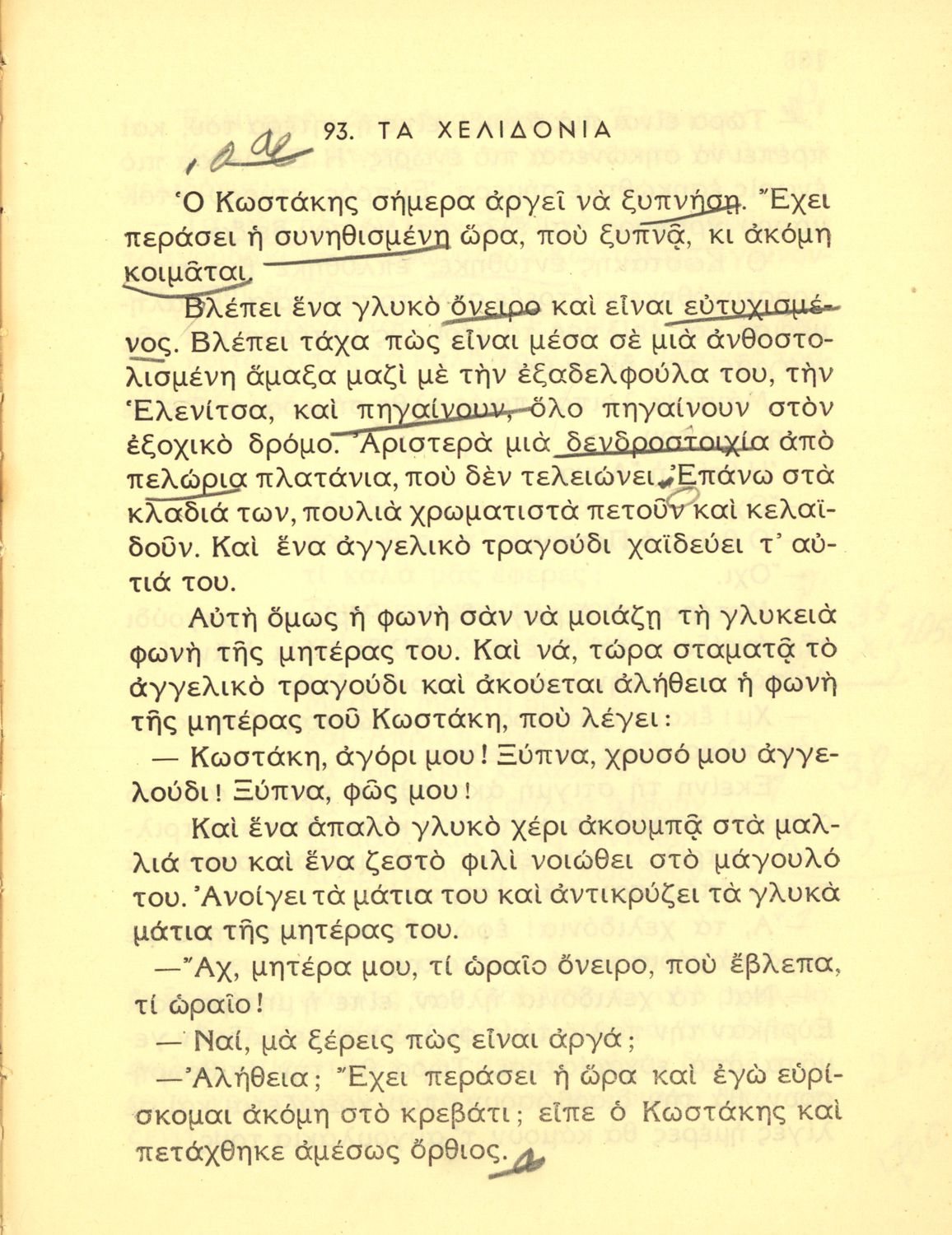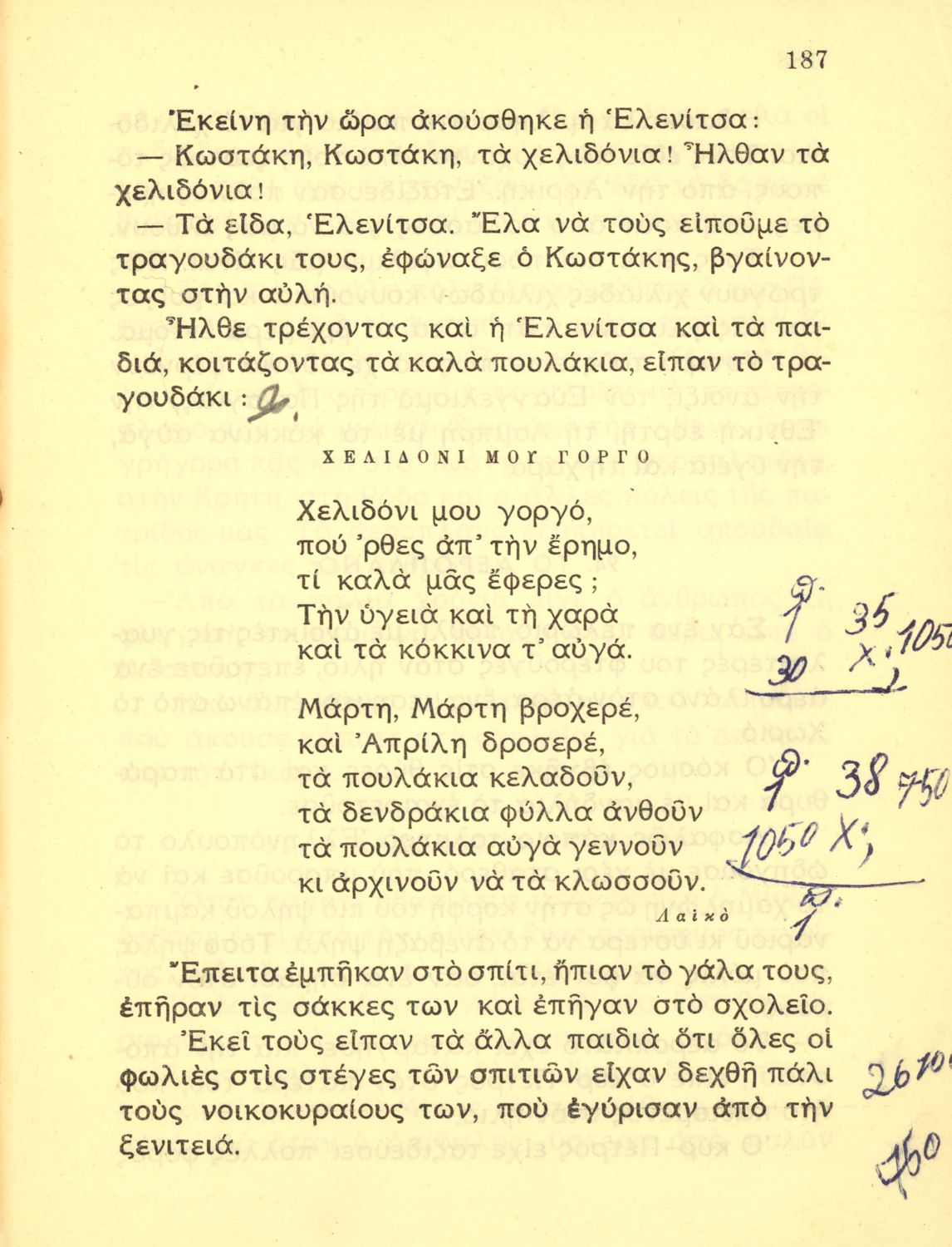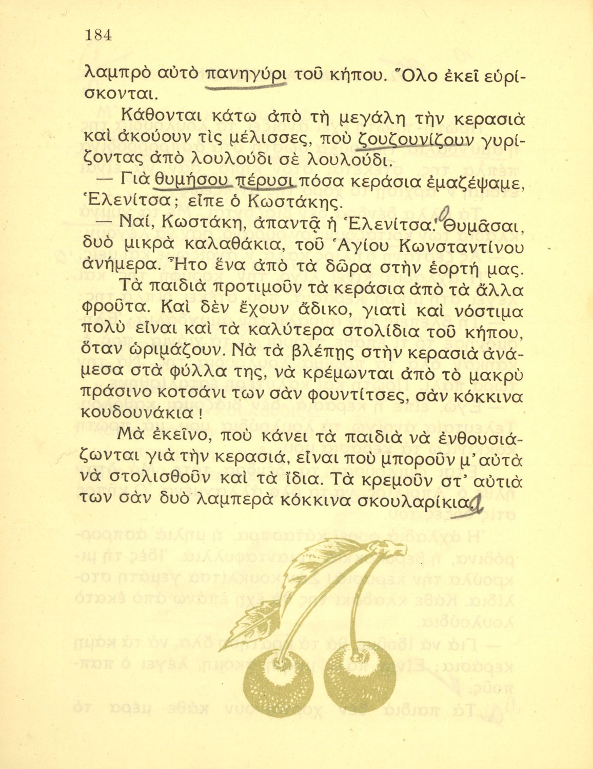 Αναγνωστικό της Γ΄ Δημοτικού που περιλαμβάνει μικρές ιστορίες εθνικιστικού περιεχομένου εμπνευσμένες από την ύπαιθρο, την οικογενειακή και κοινωνική ζωή αλλά και το εθνικό παρελθόν.