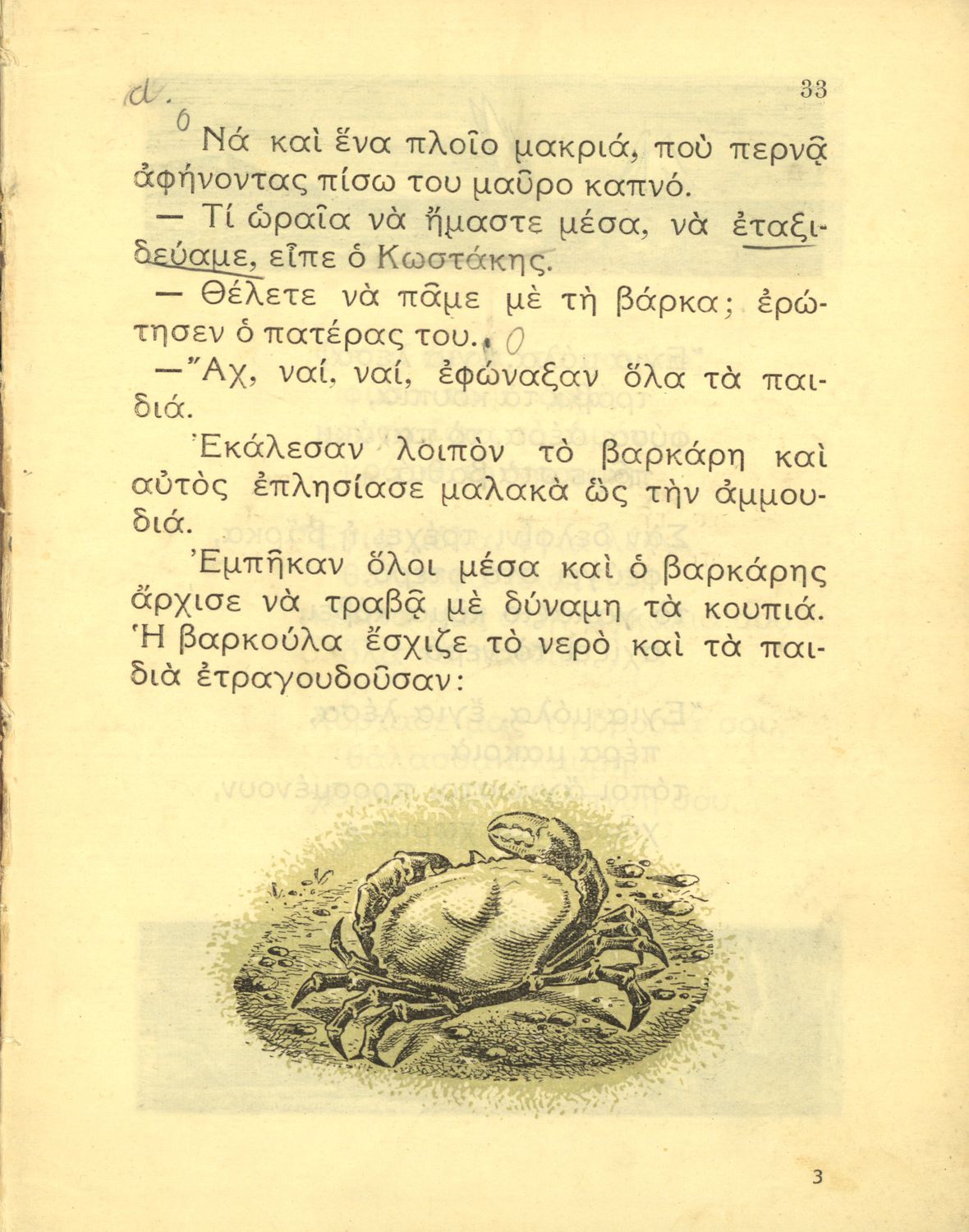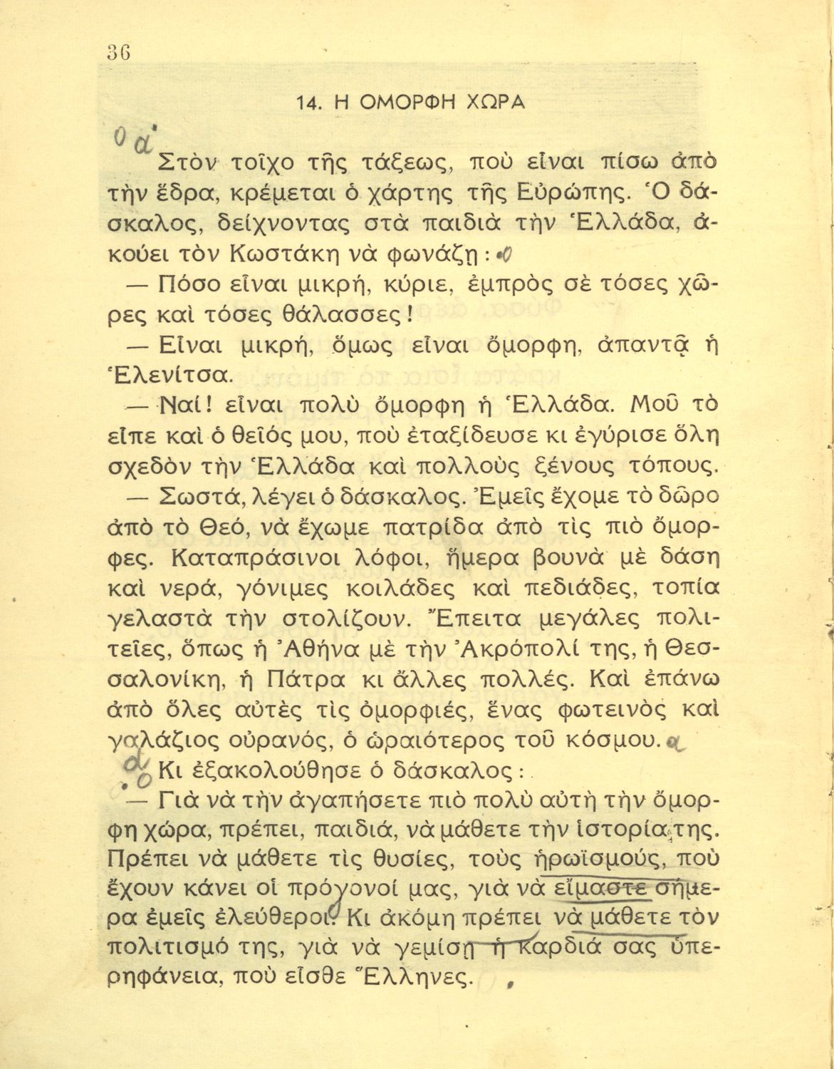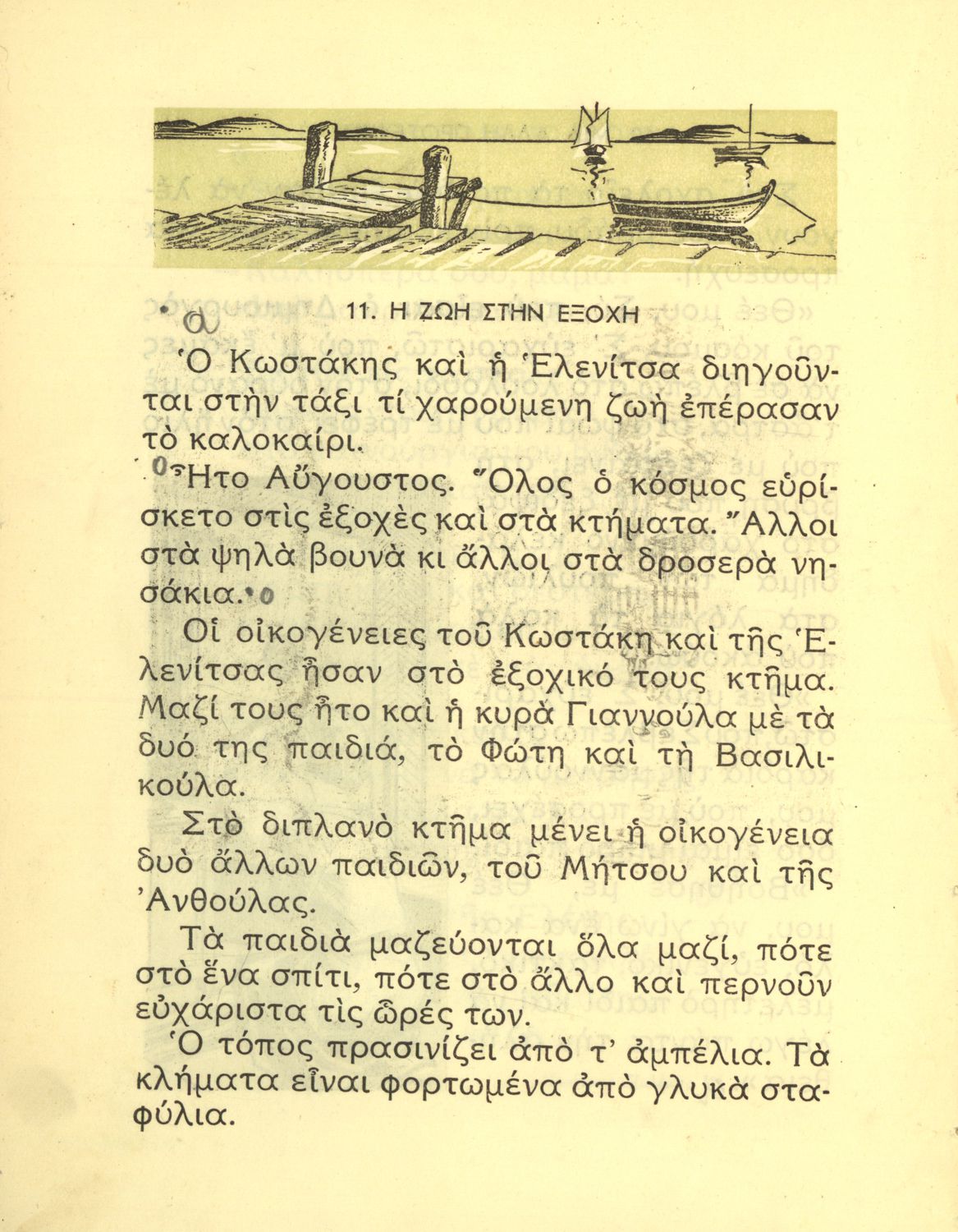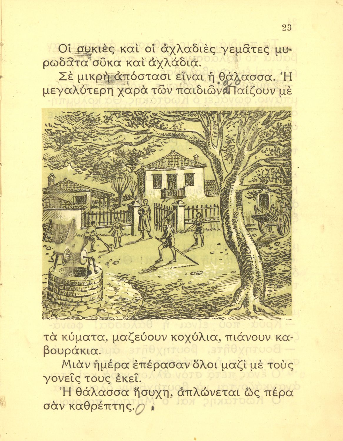 Αναγνωστικό της Γ΄ Δημοτικού που περιλαμβάνει μικρές ιστορίες εθνικιστικού περιεχομένου εμπνευσμένες από την ύπαιθρο, την οικογενειακή και κοινωνική ζωή αλλά και το εθνικό παρελθόν.
