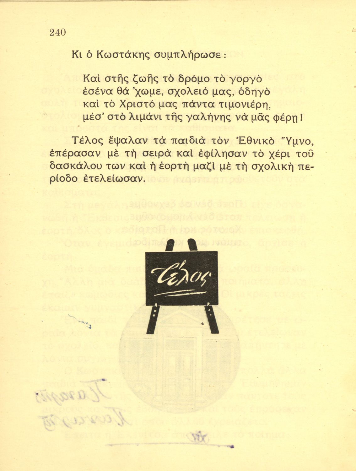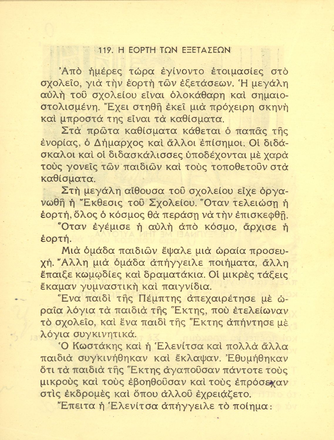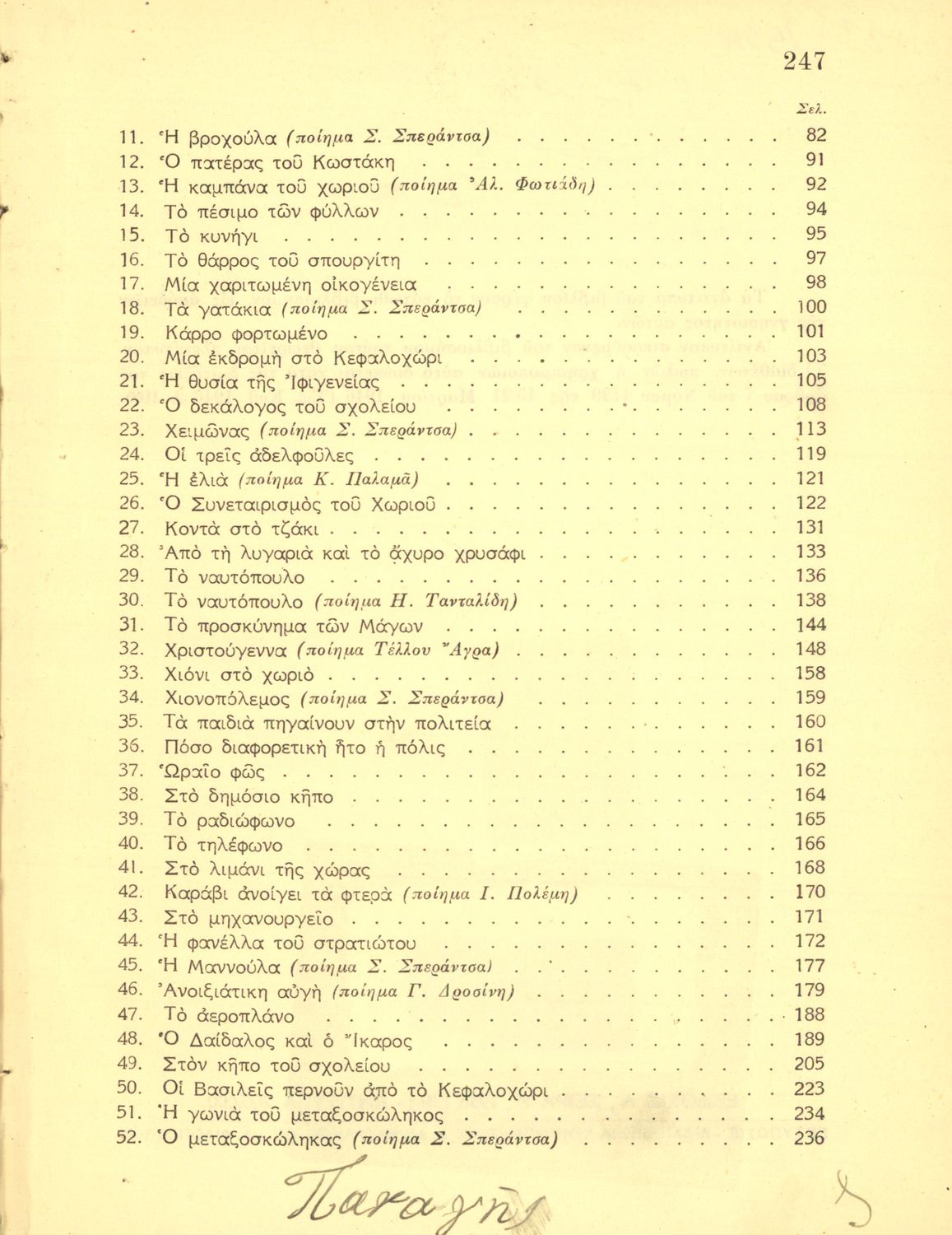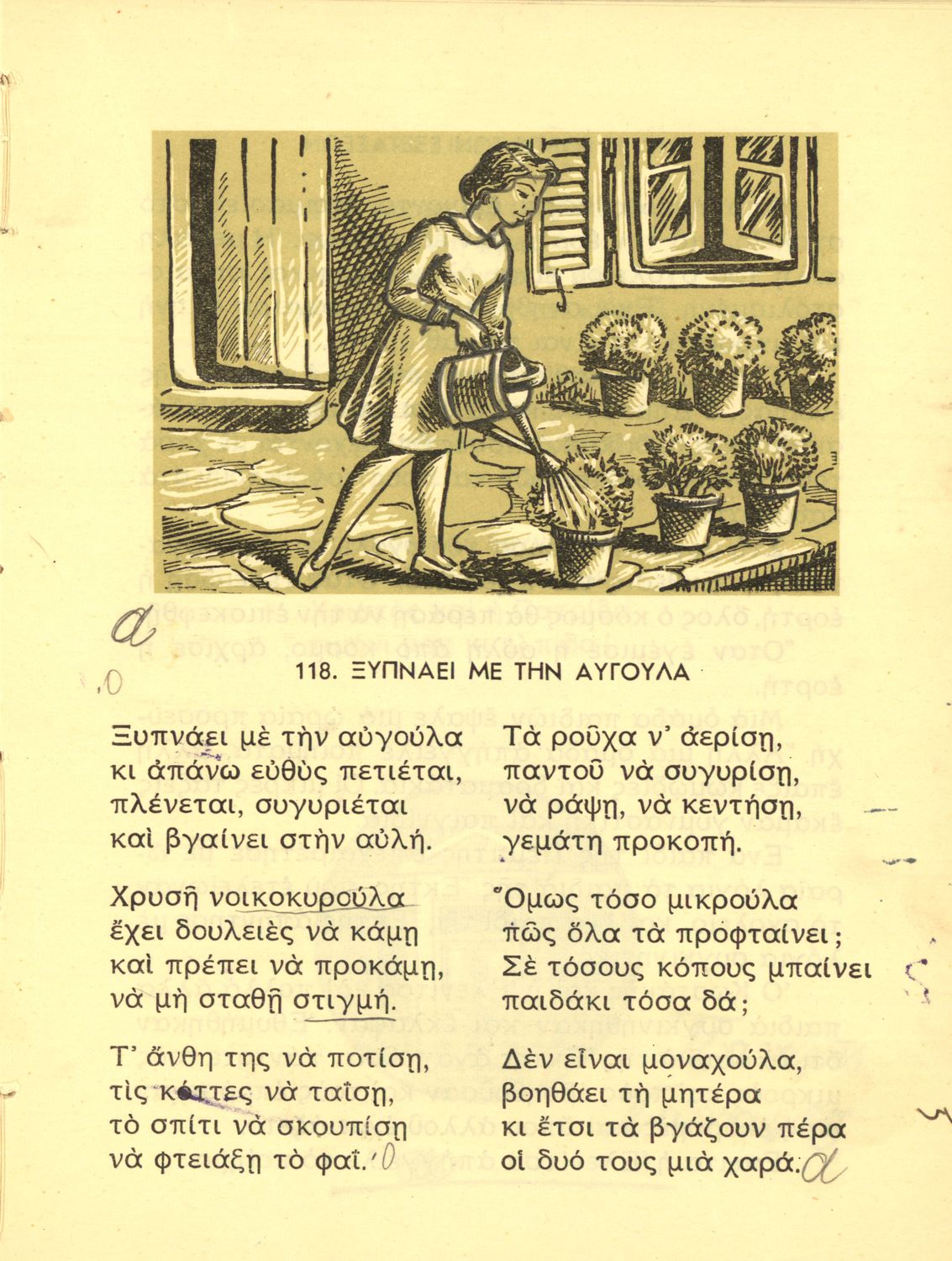 Αναγνωστικό της Γ΄ Δημοτικού που περιλαμβάνει μικρές ιστορίες εθνικιστικού περιεχομένου εμπνευσμένες από την ύπαιθρο, την οικογενειακή και κοινωνική ζωή αλλά και το εθνικό παρελθόν.