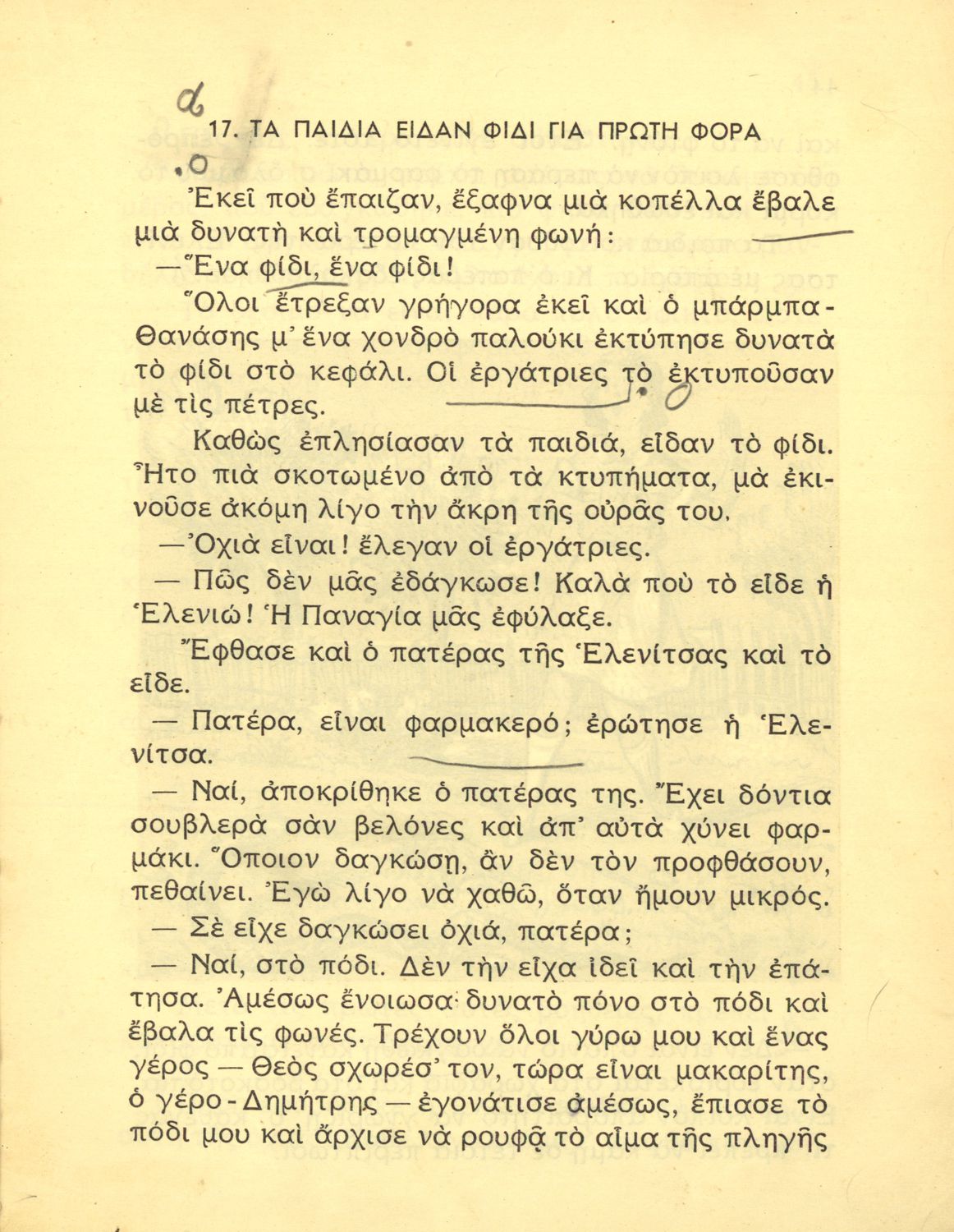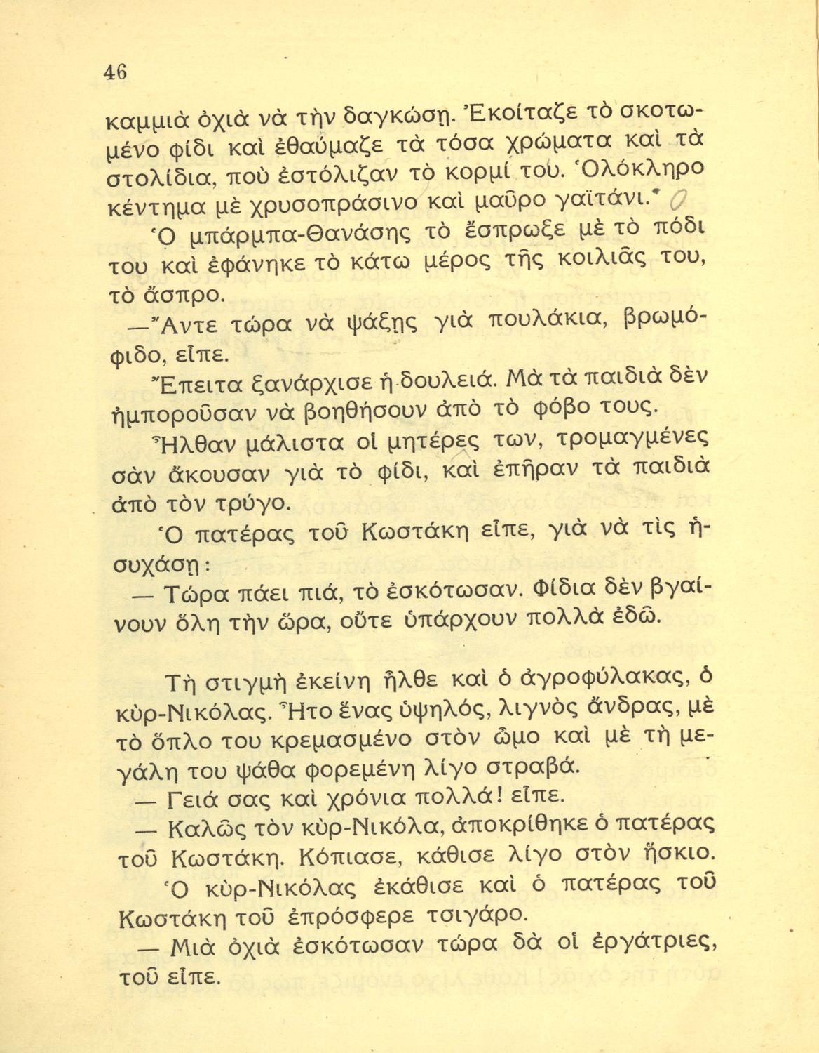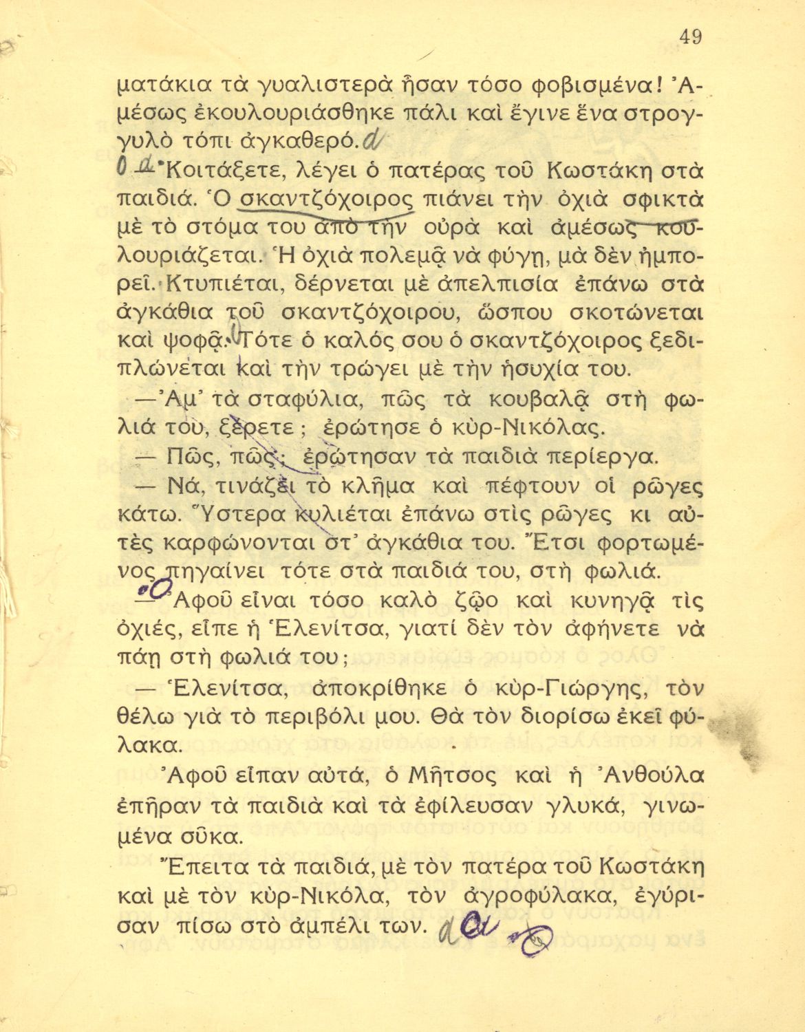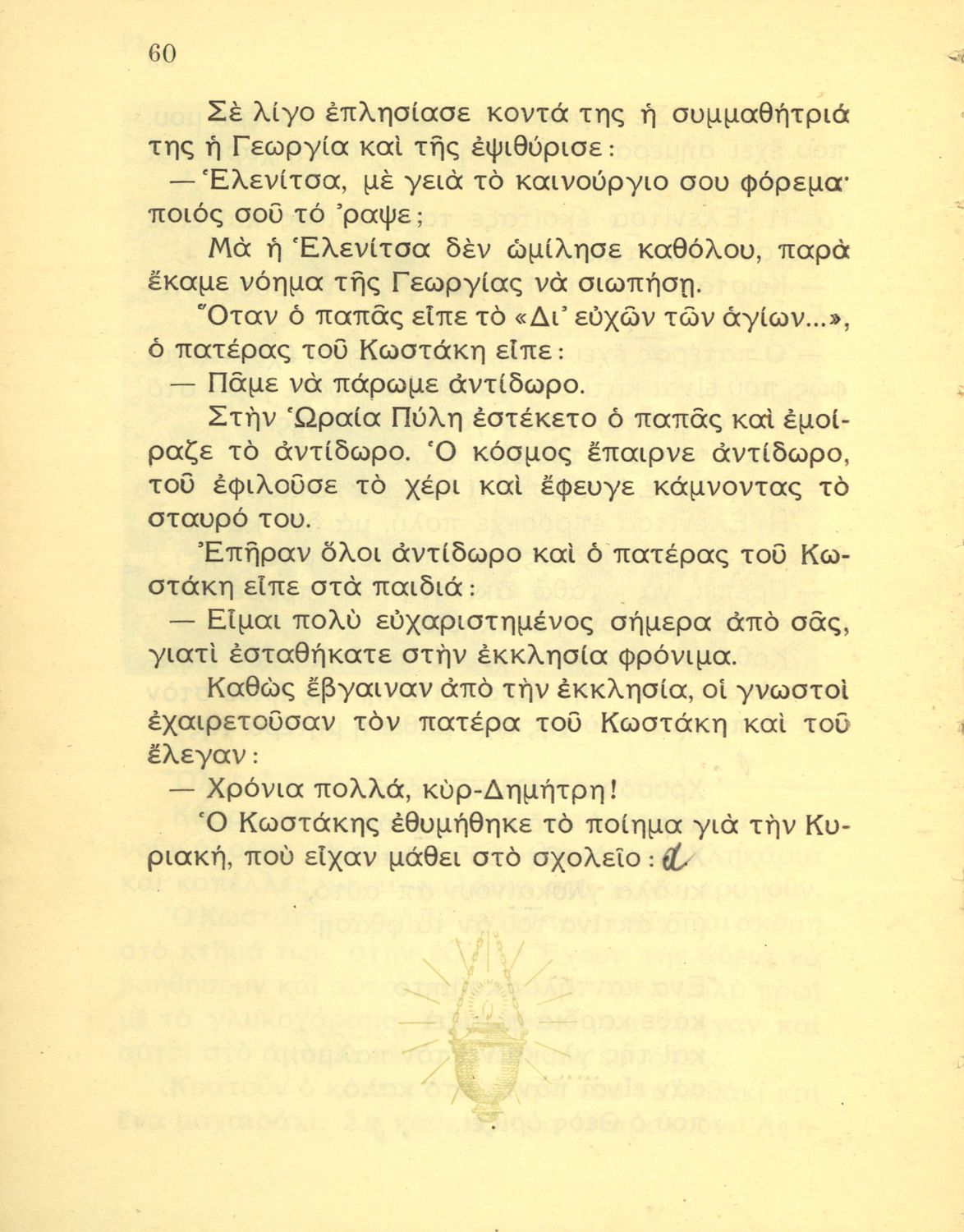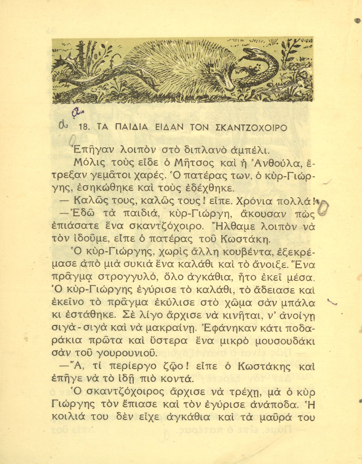 Αναγνωστικό Γ' Δημοτικού που είναι χωρισμένο σύμφωνα με τις εποχές του χρόνου και περιλαμβάνει ποιήματα και πεζά εμπνευσμένα από τη ζωή στην ύπαιθρο, την εθνική, οικογενειακή και κοινωνική ζωή, τη θρησκευτική παράδοση, τις ασχολίες των ανθρώπων, και την ελληνική φύση.