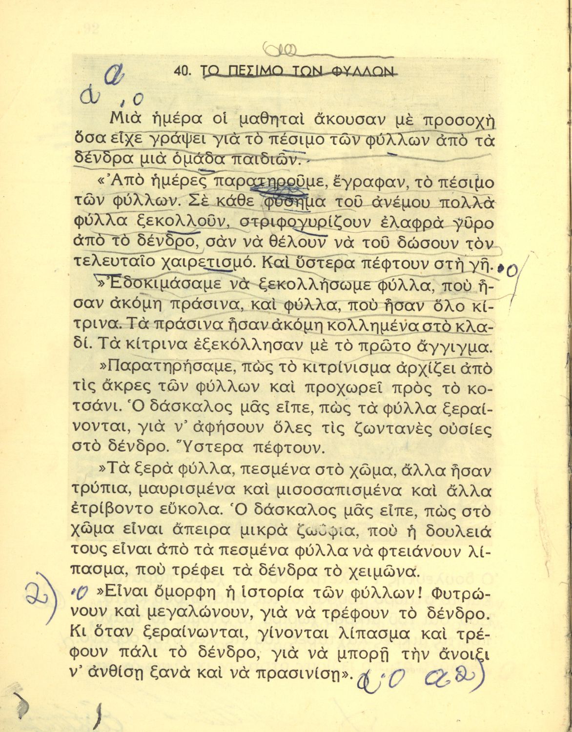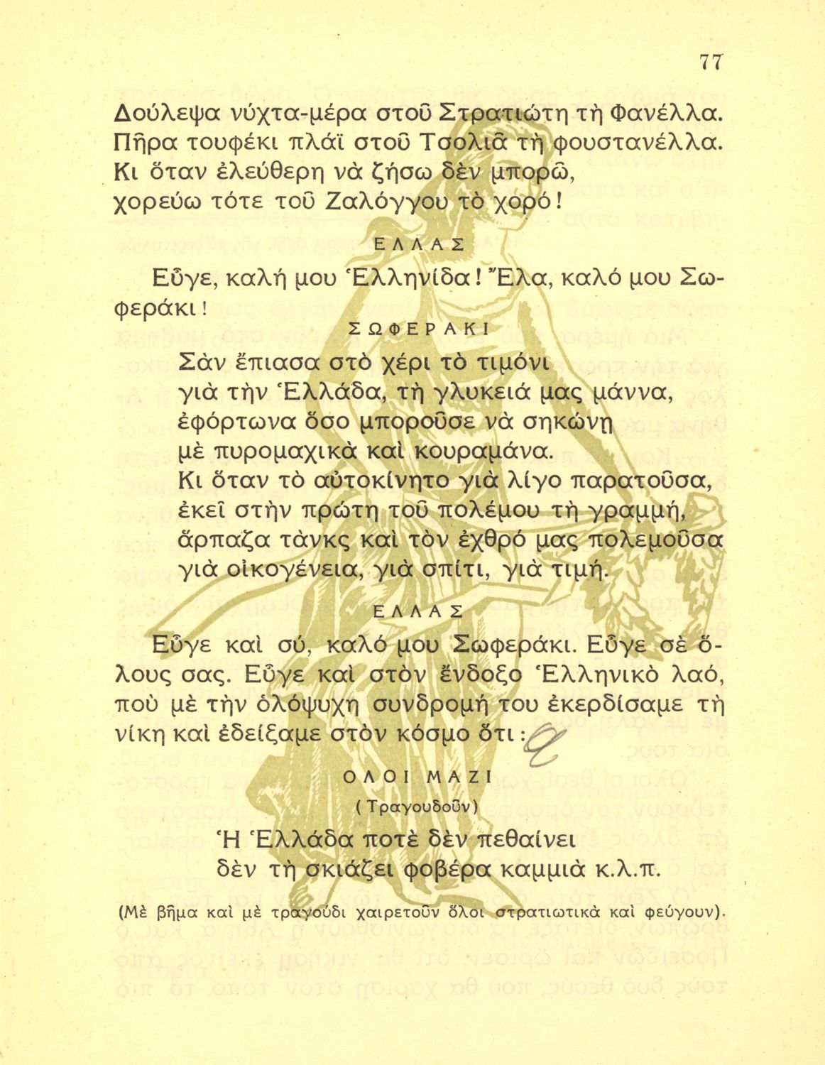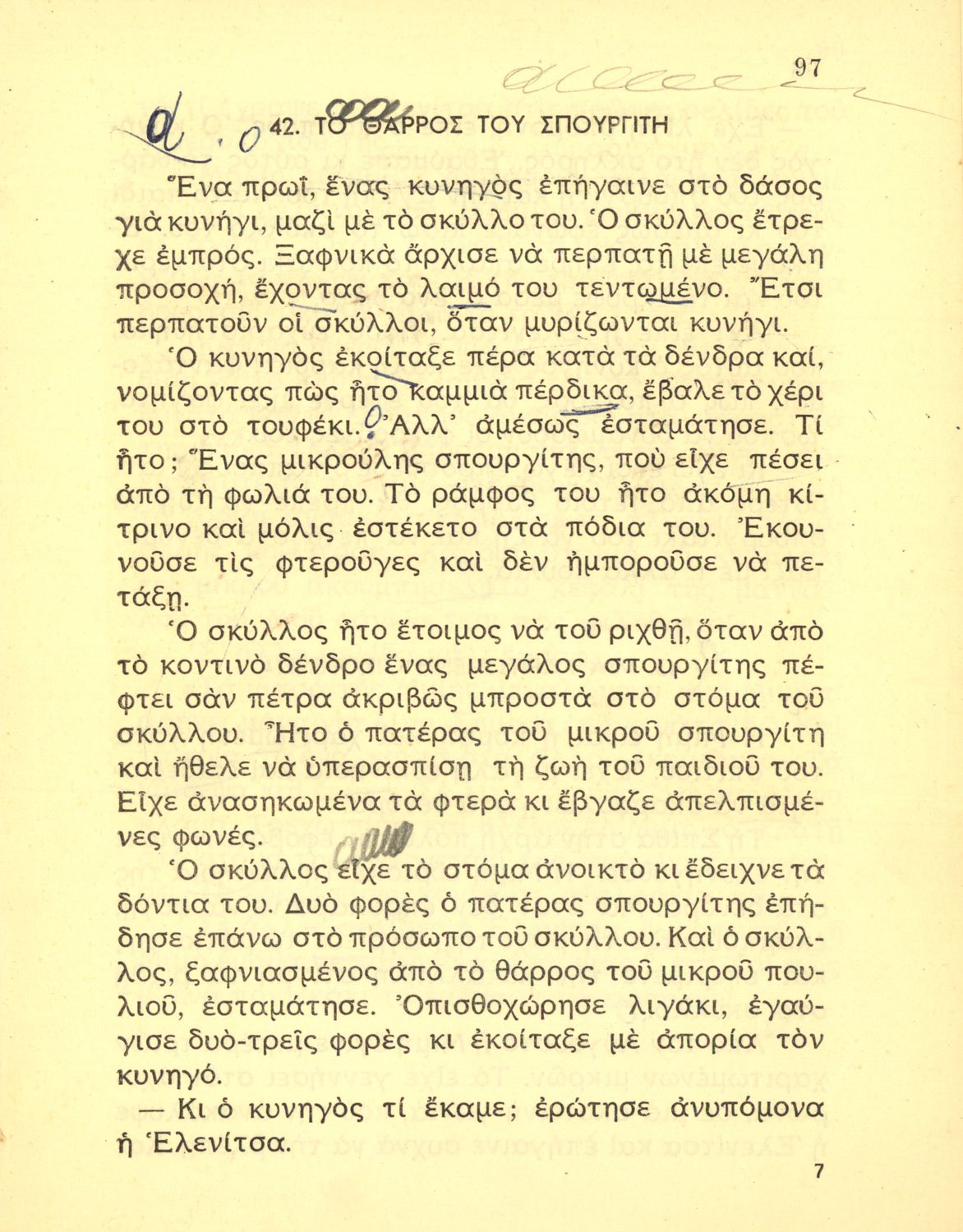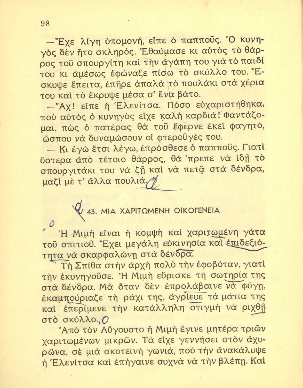 Αναγνωστικό της Γ΄ Δημοτικού που περιλαμβάνει μικρές ιστορίες εθνικιστικού περιεχομένου εμπνευσμένες από την ύπαιθρο, την οικογενειακή και κοινωνική ζωή αλλά και το εθνικό παρελθόν.